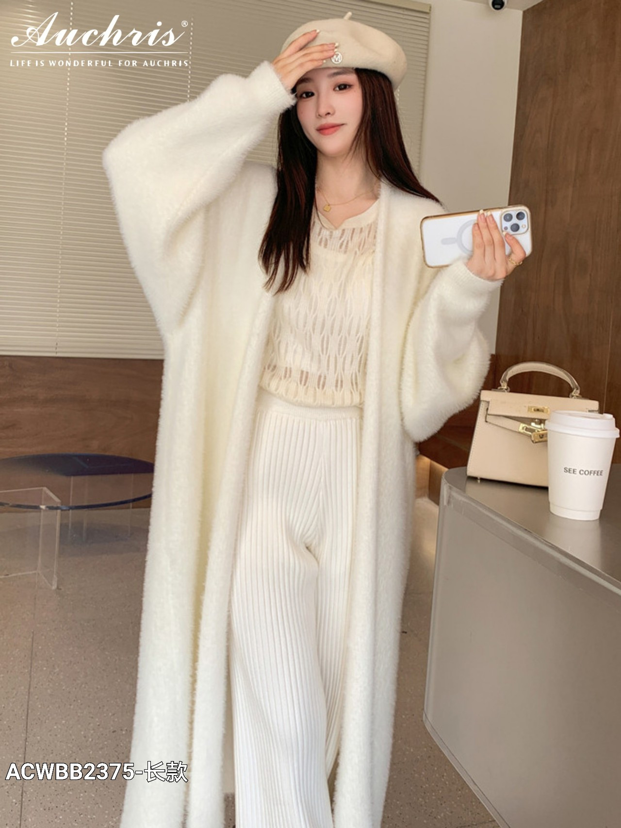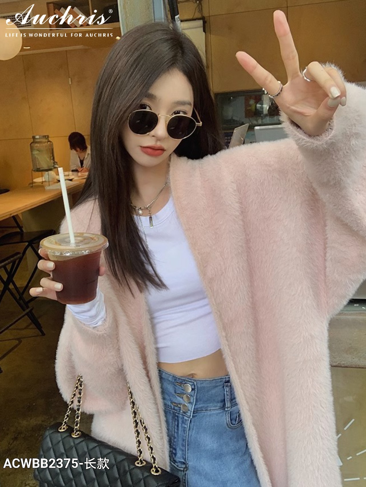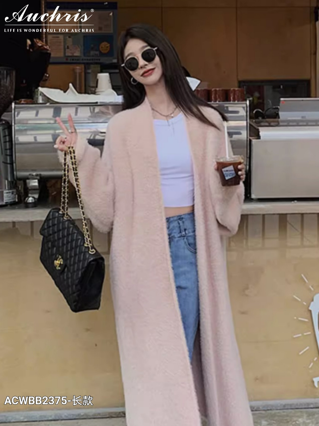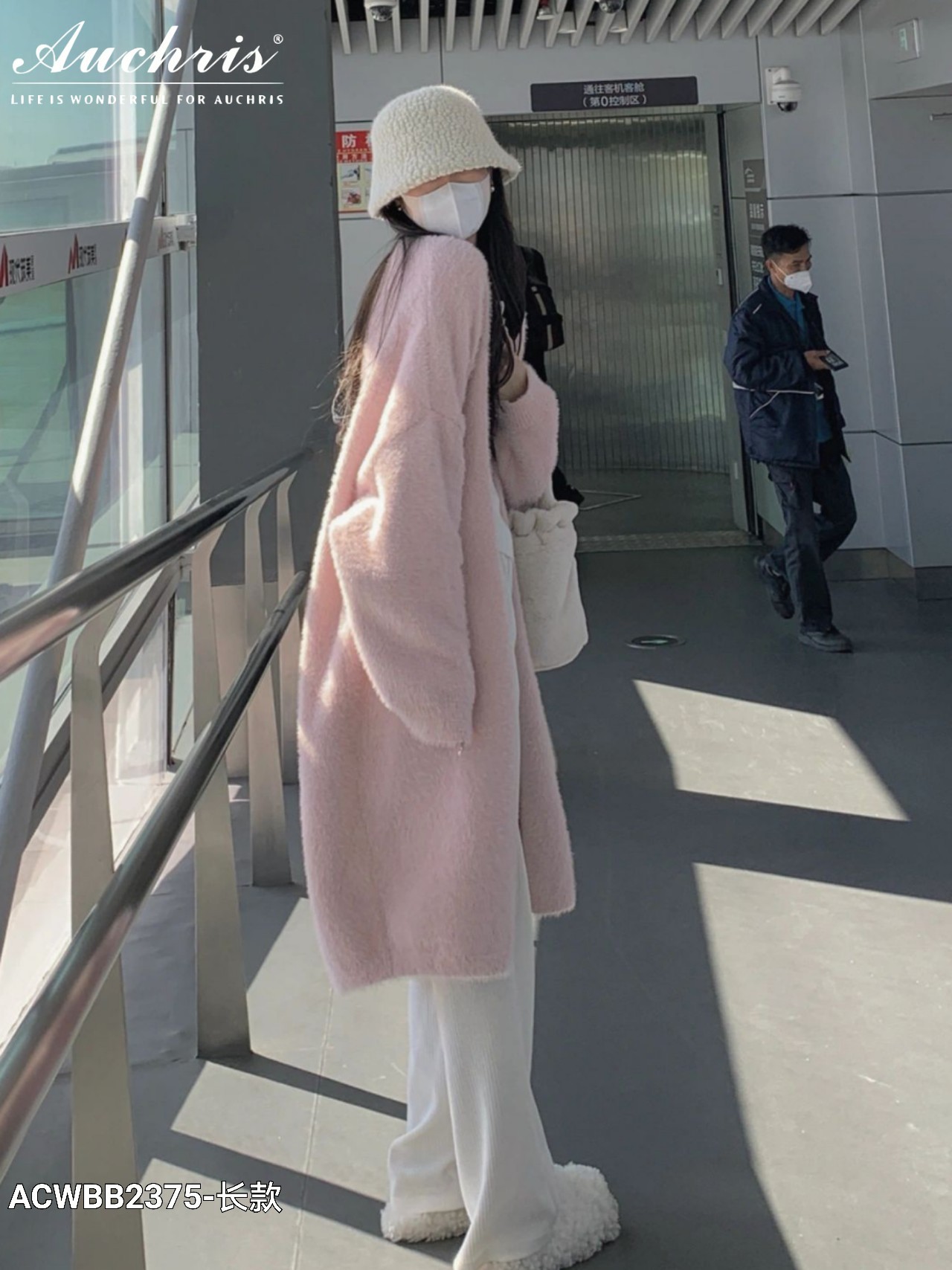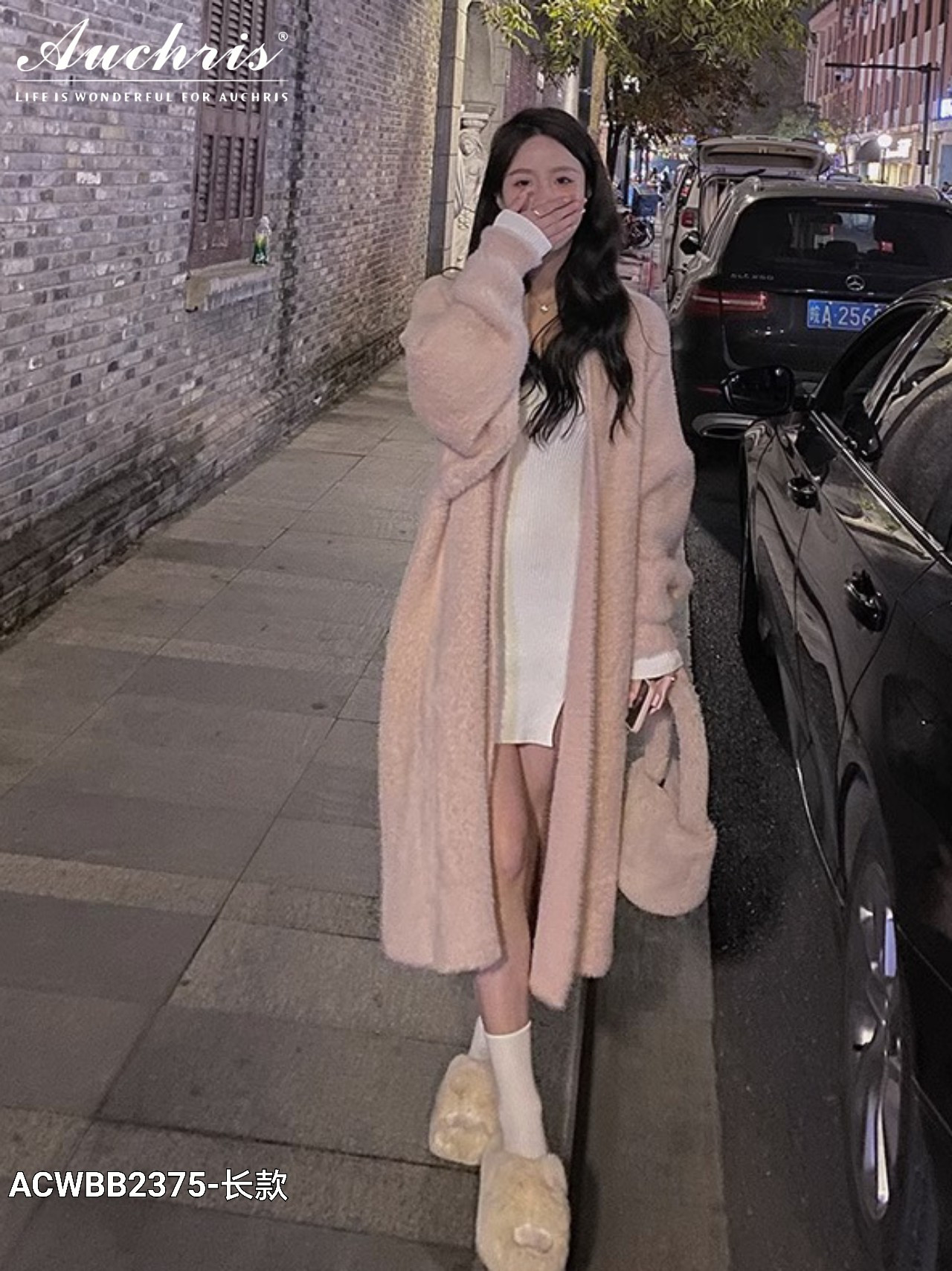 【商品名称】慵懒风中长款过膝仿水貂绒毛衣外套