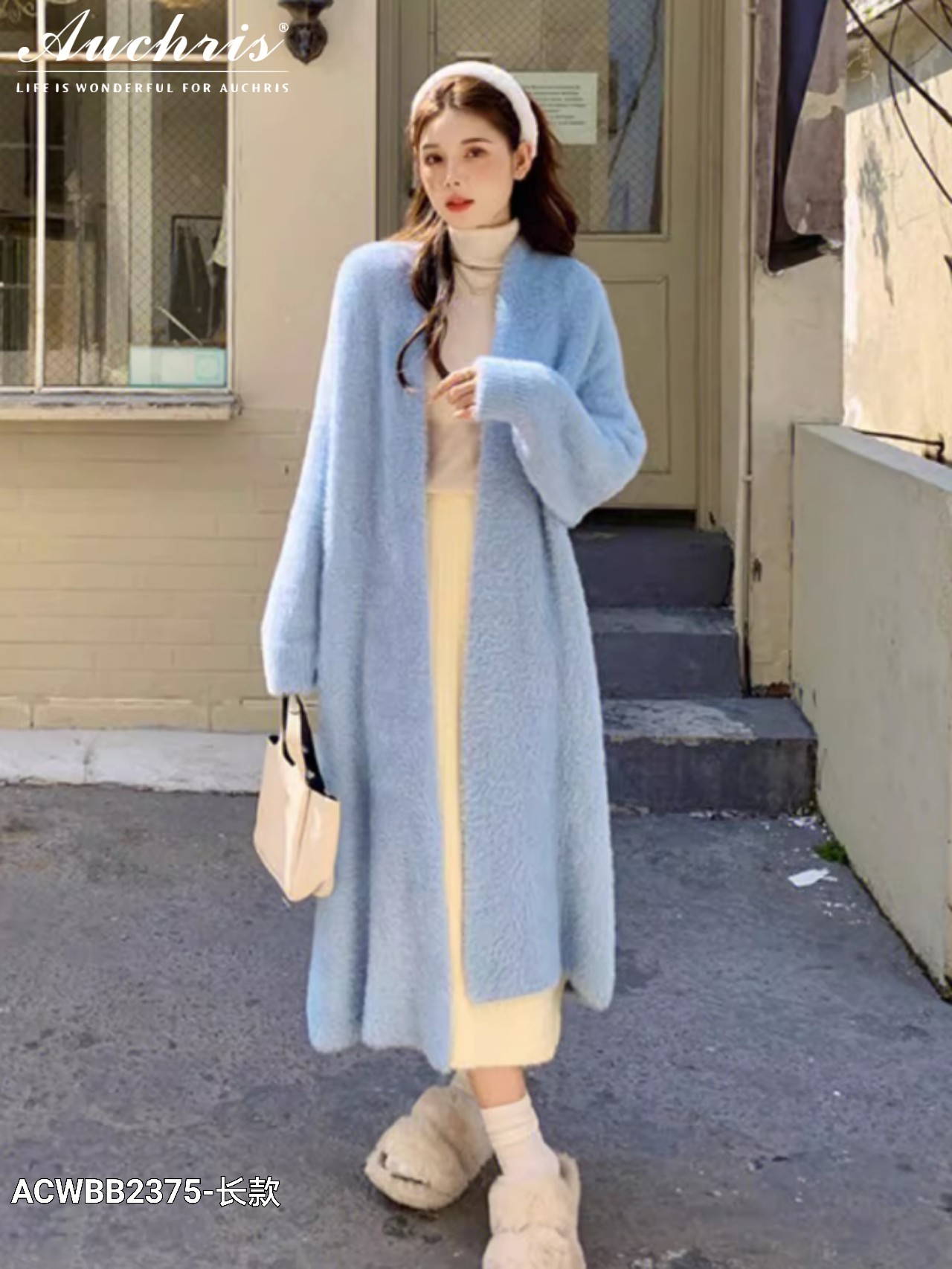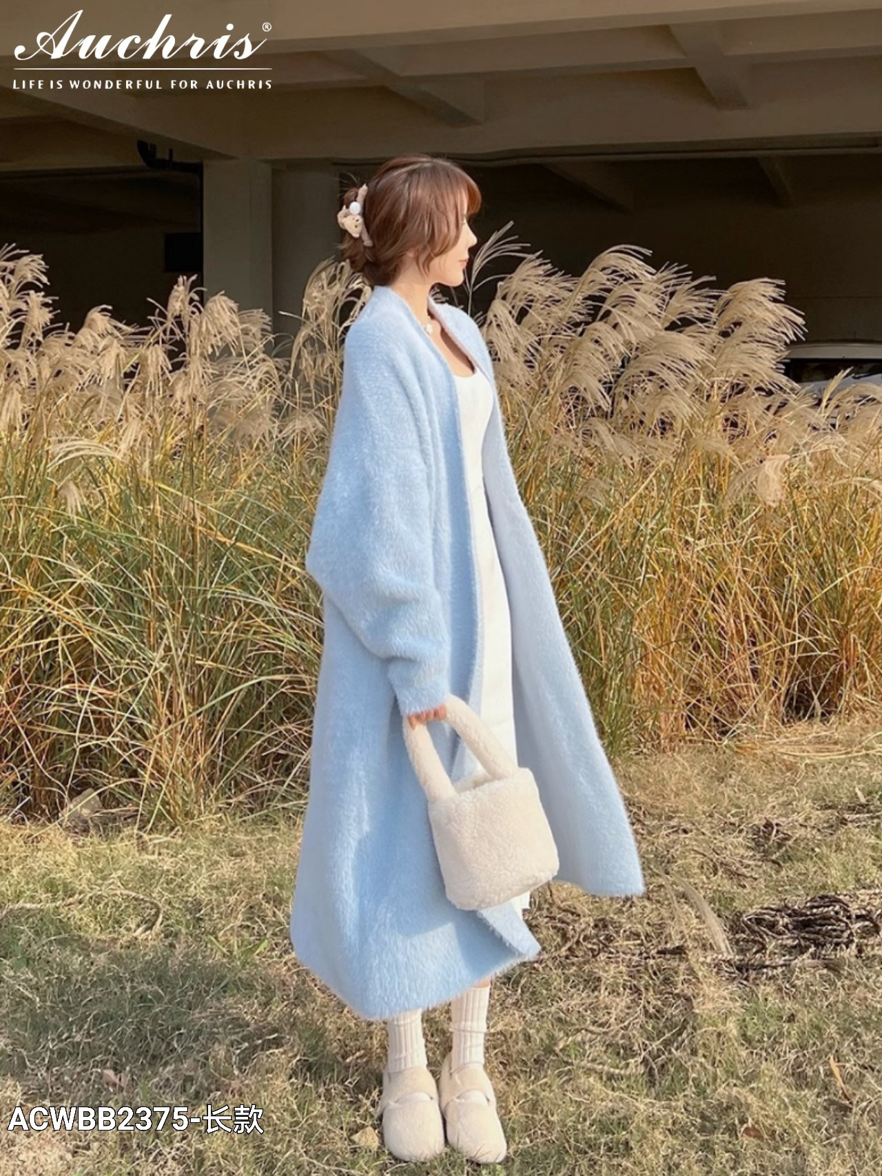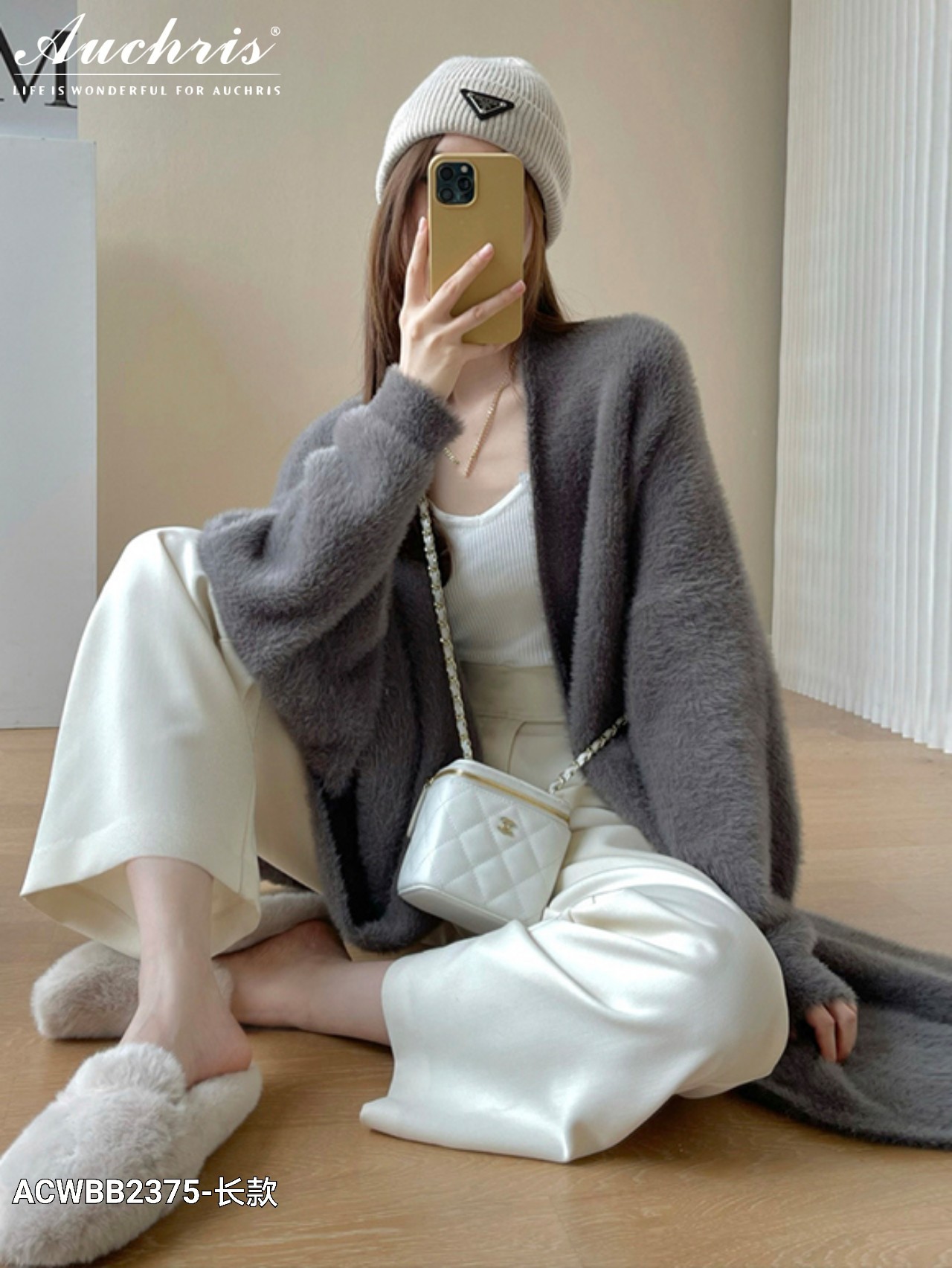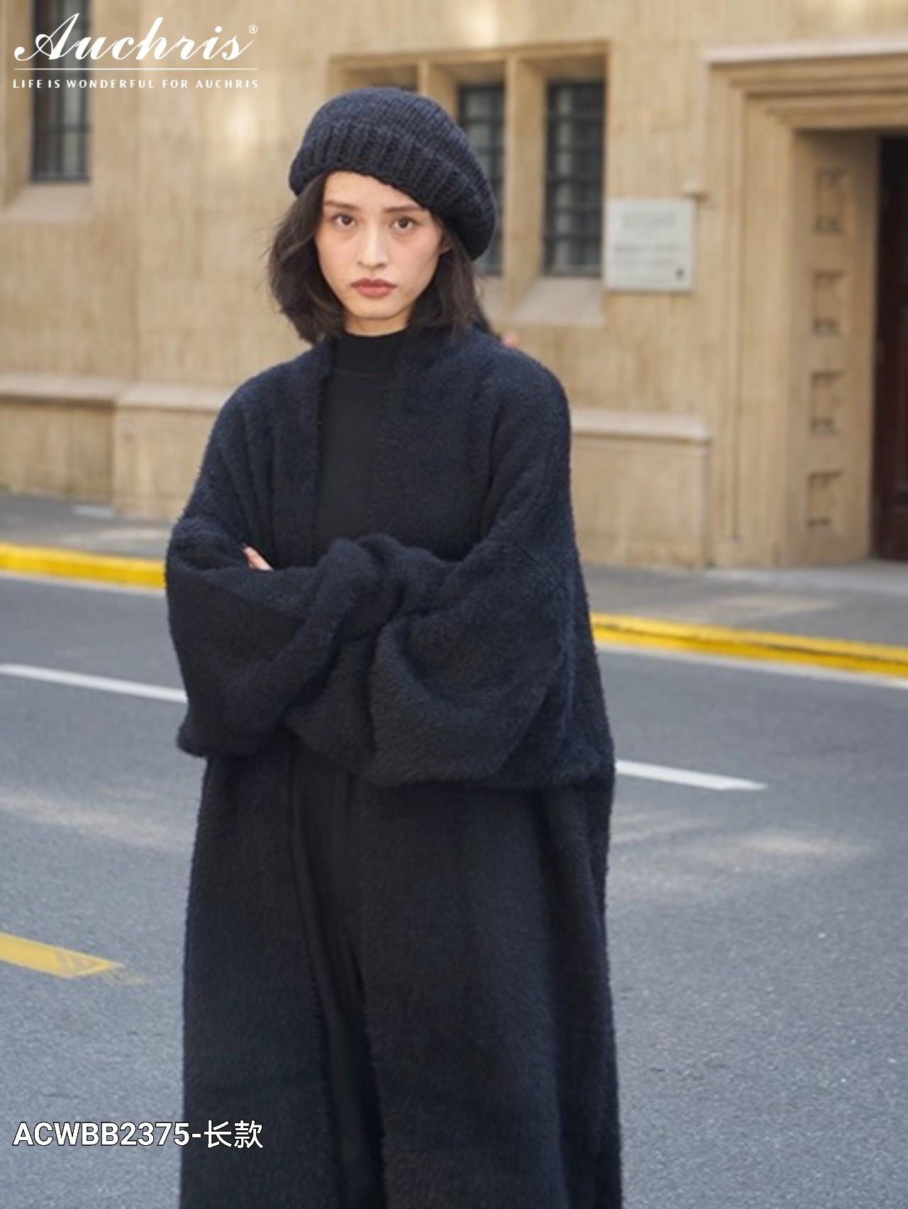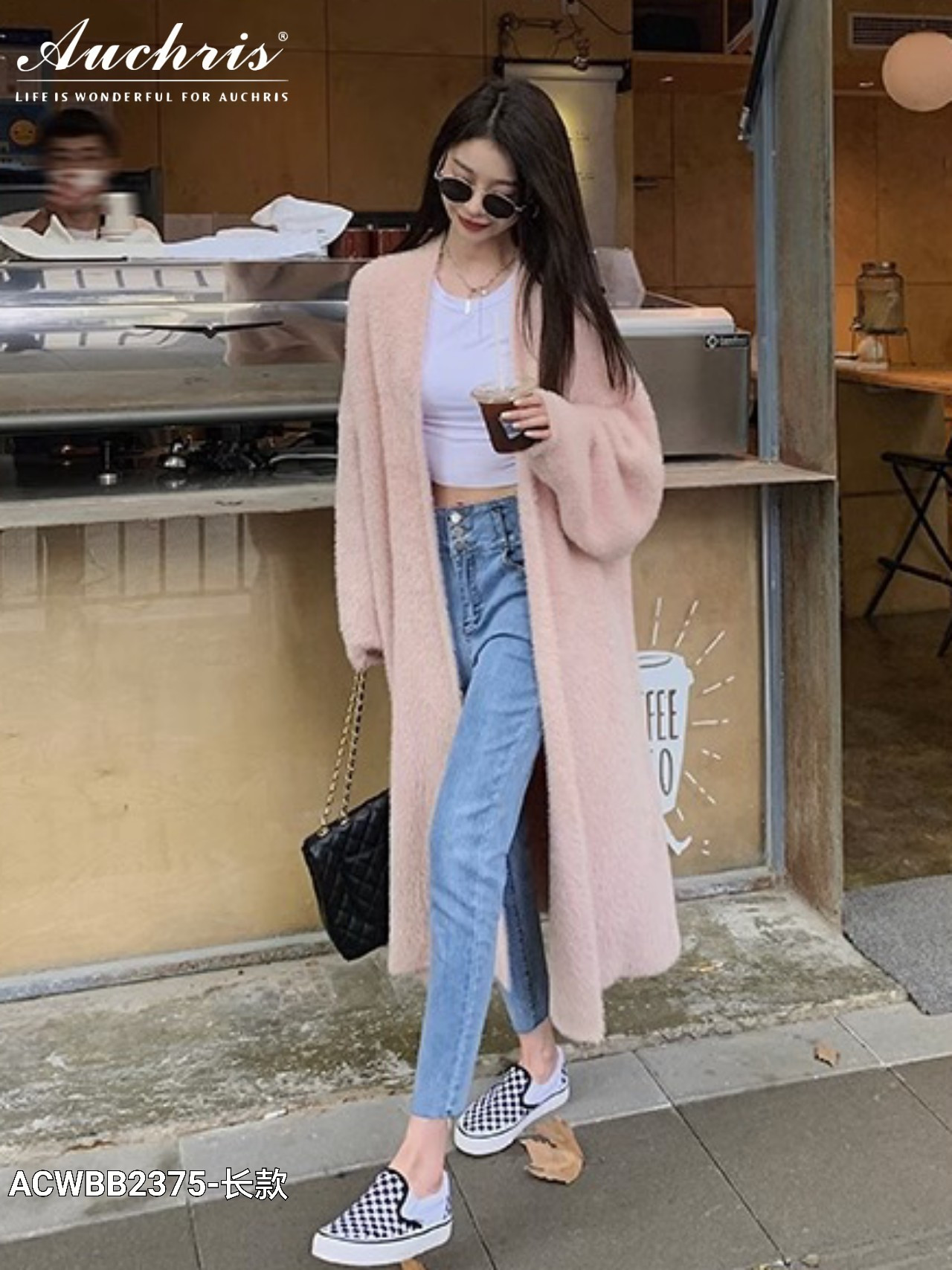 【商品名称】慵懒风中长款过膝仿水貂绒毛衣外套