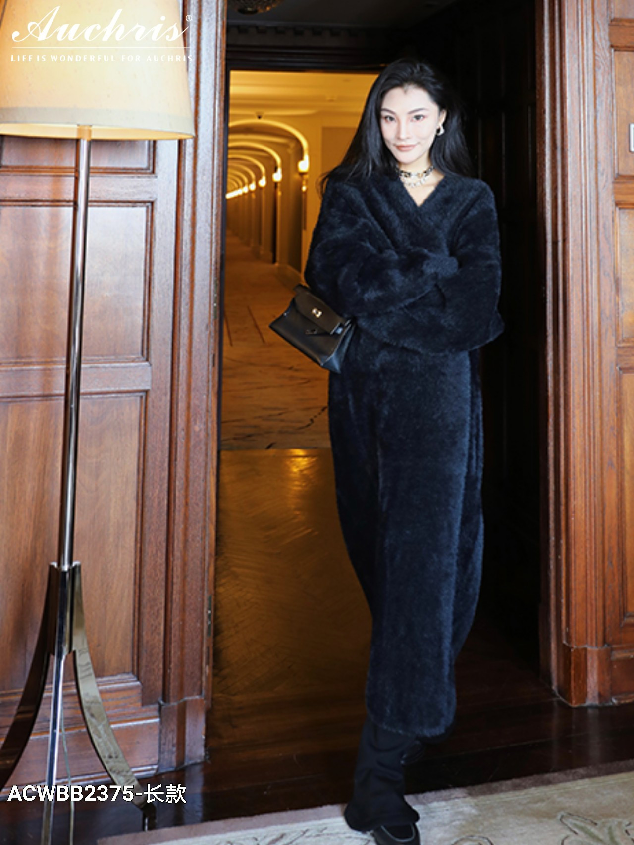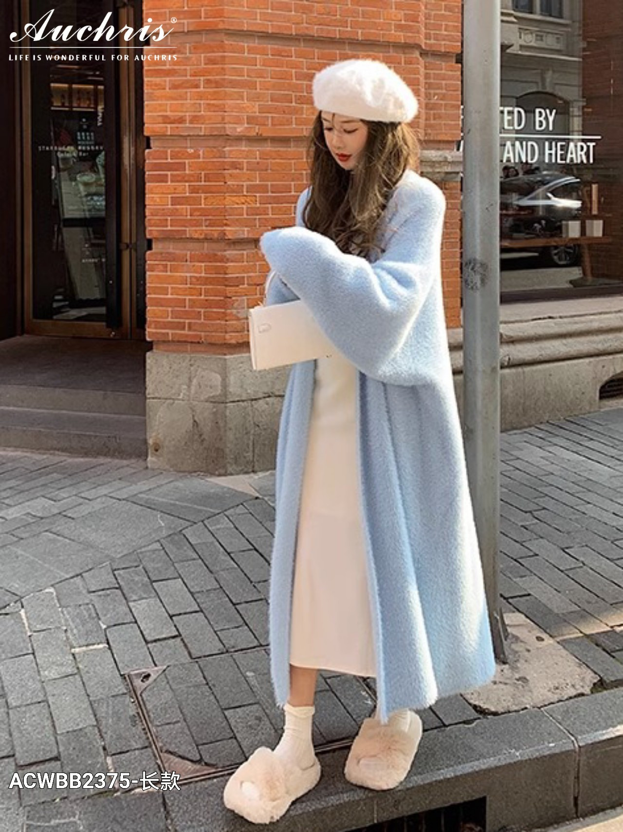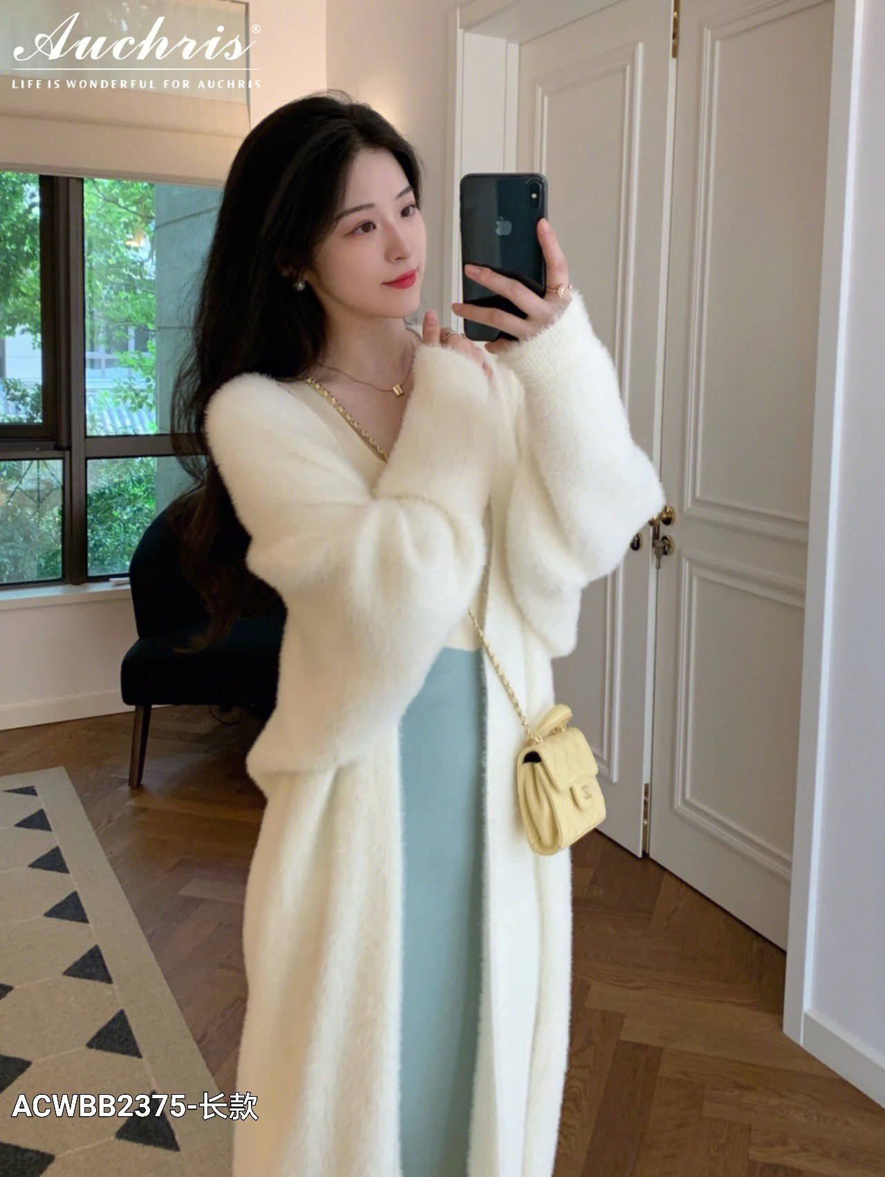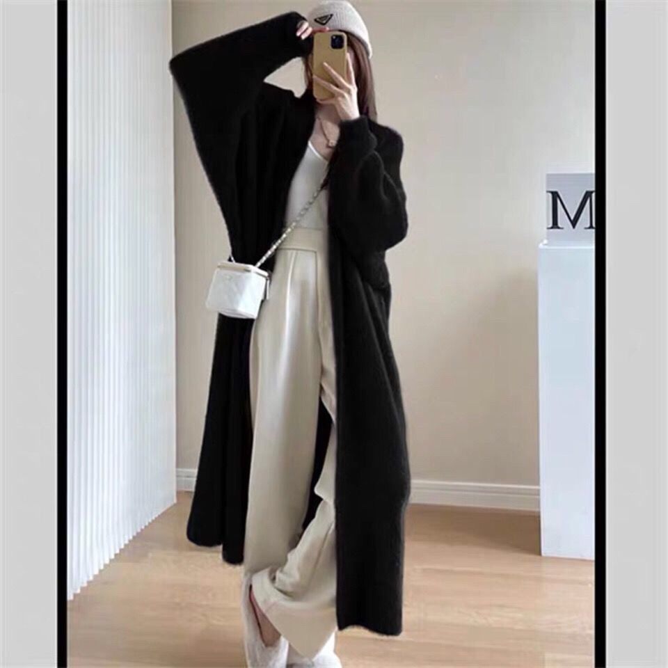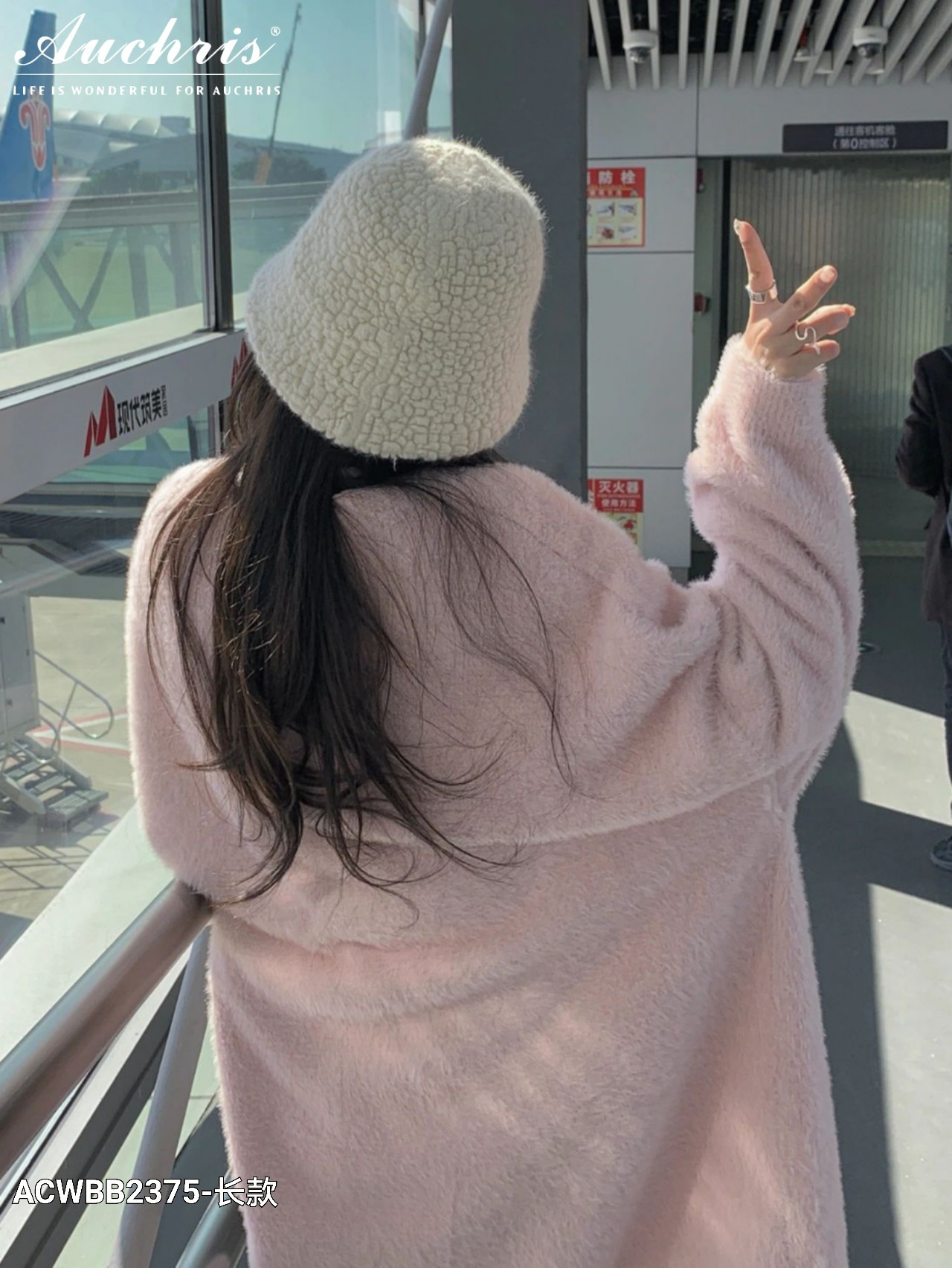 【商品名称】慵懒风中长款过膝仿水貂绒毛衣外套