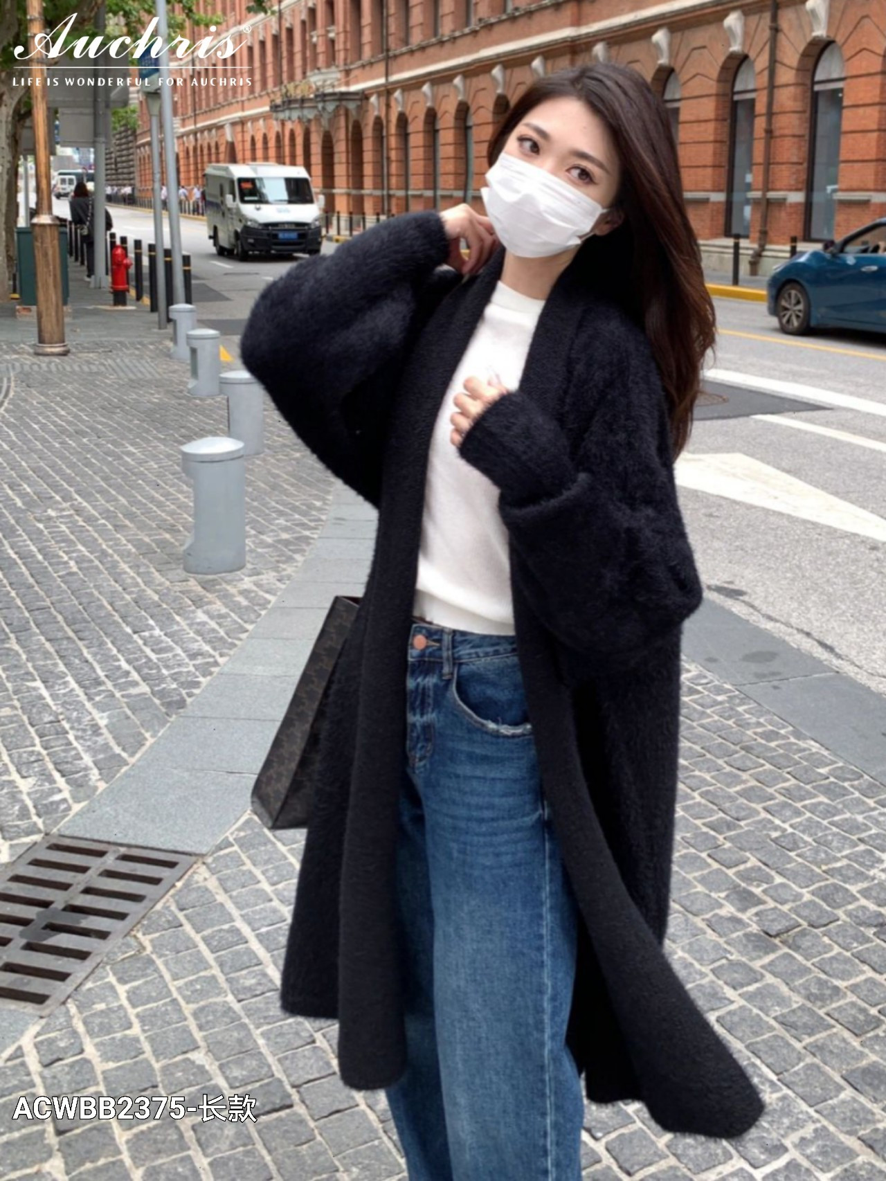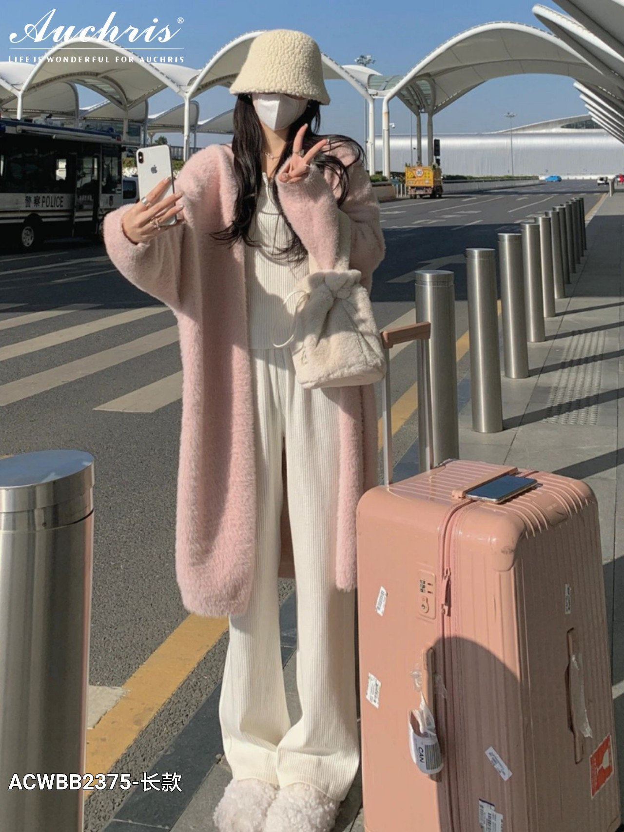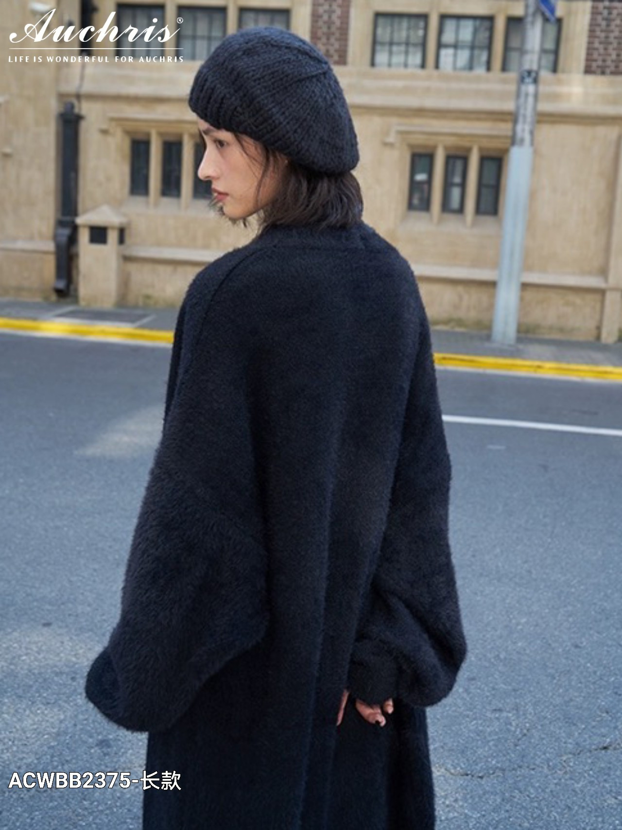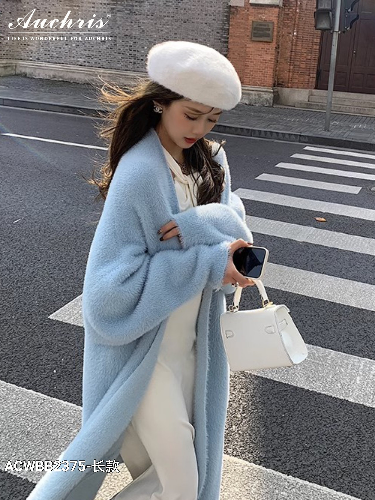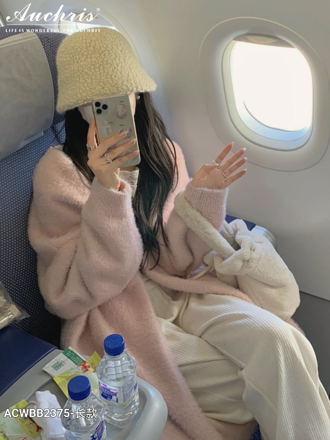 【商品名称】慵懒风中长款过膝仿水貂绒毛衣外套