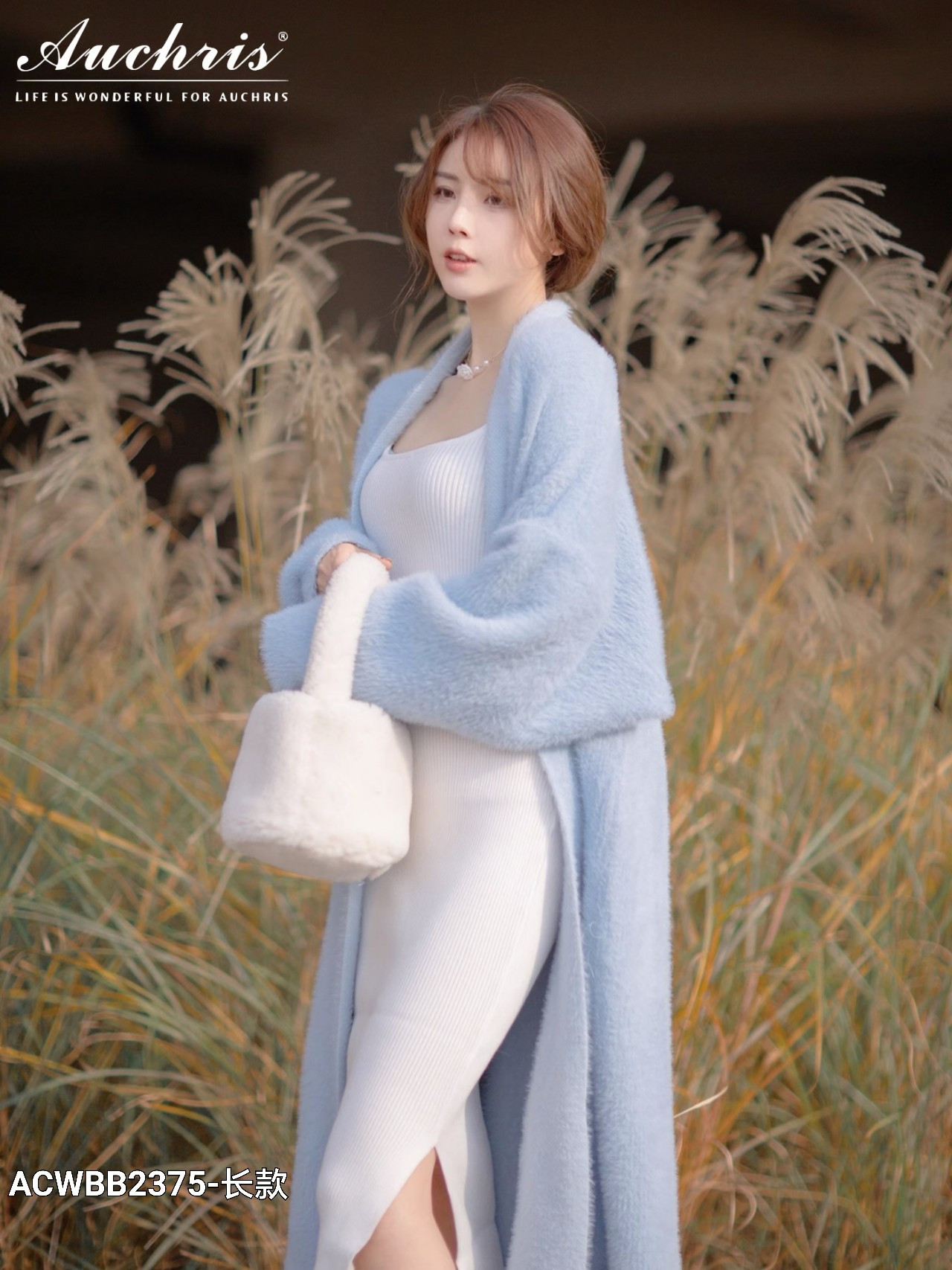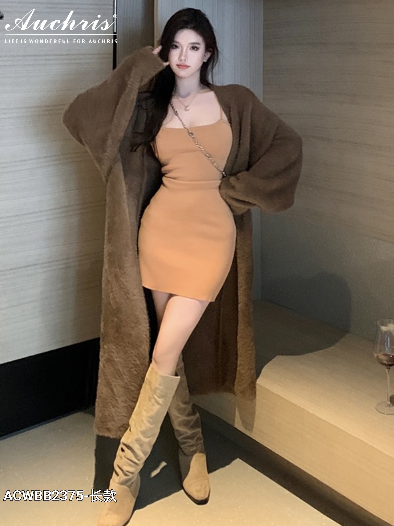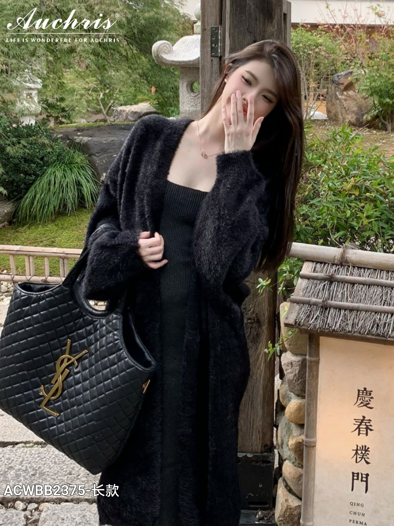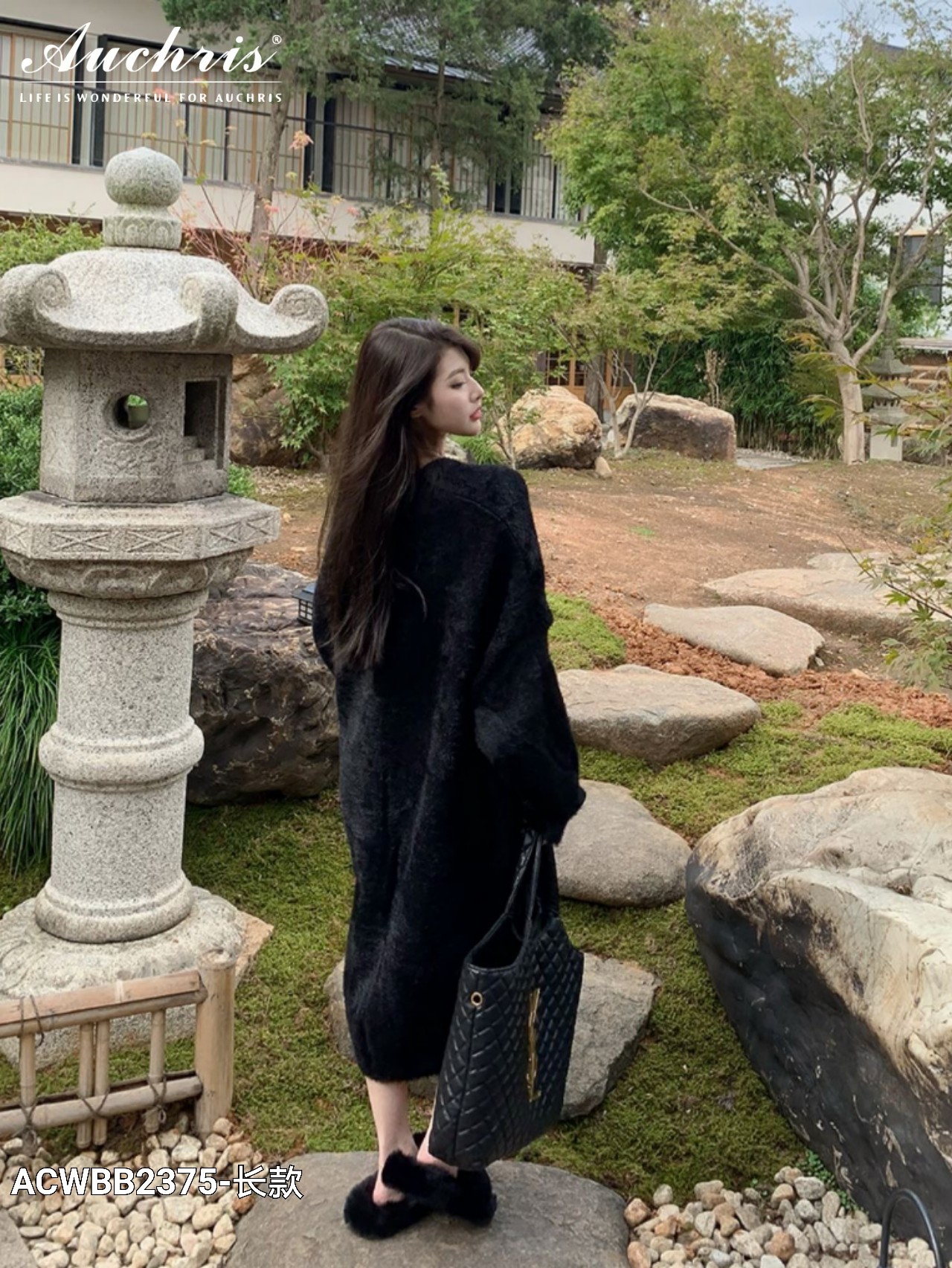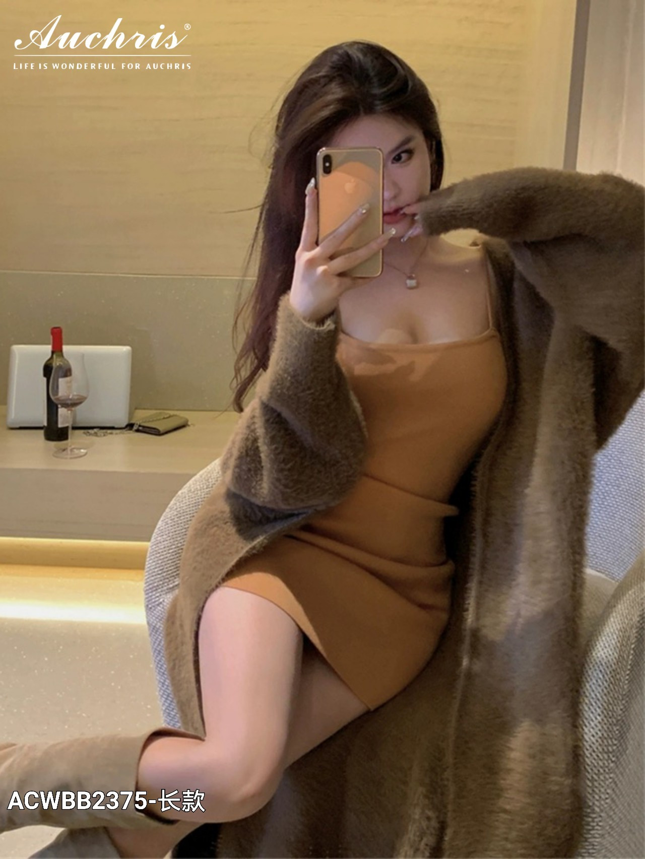 【商品名称】慵懒风中长款过膝仿水貂绒毛衣外套