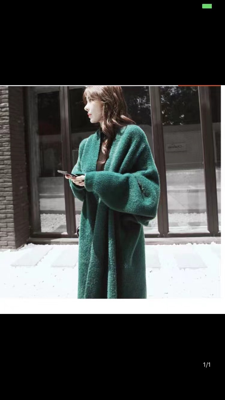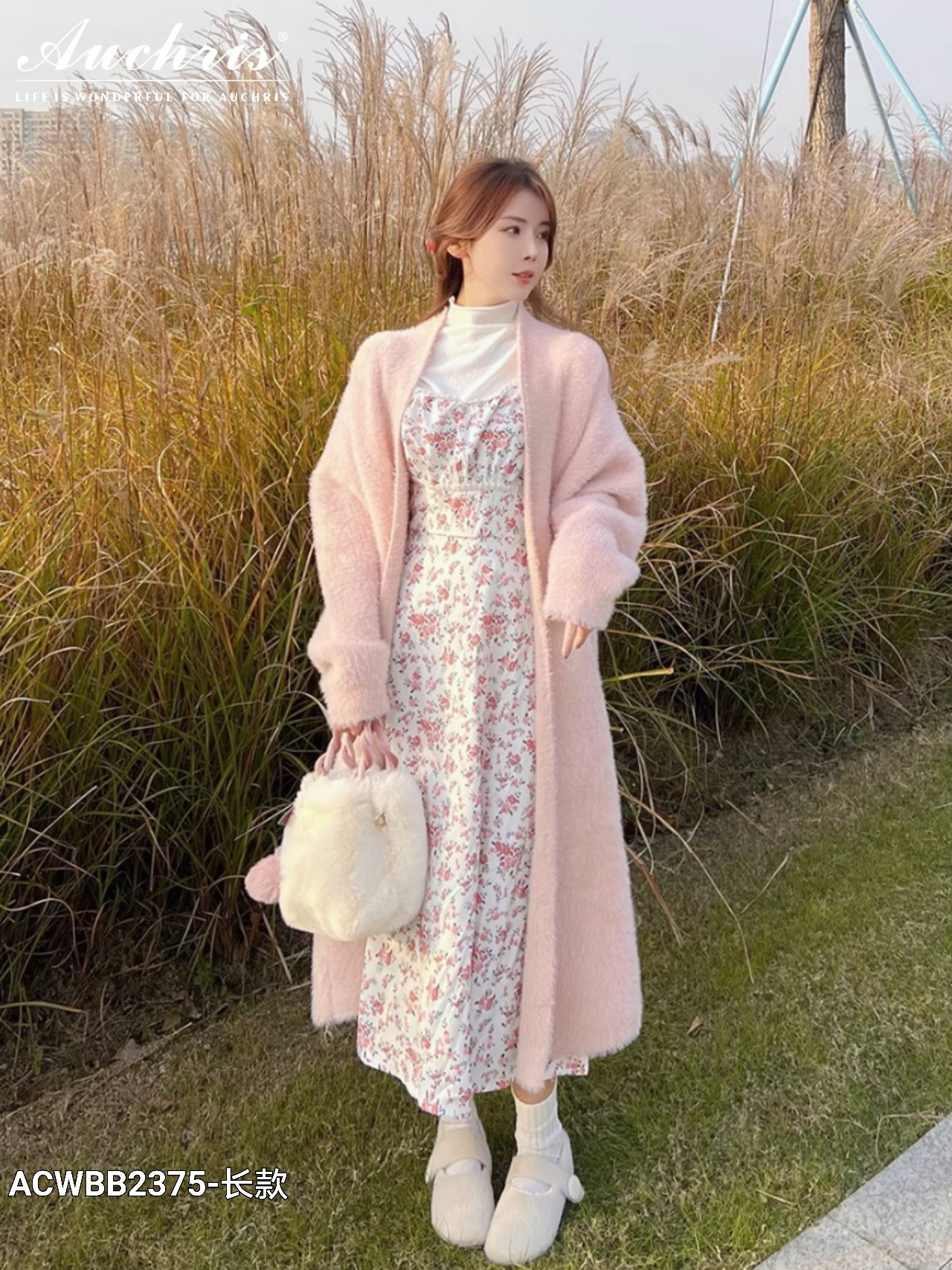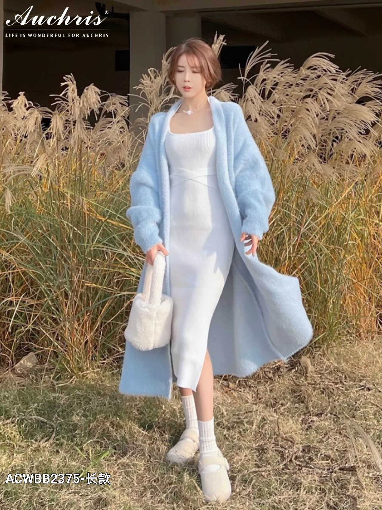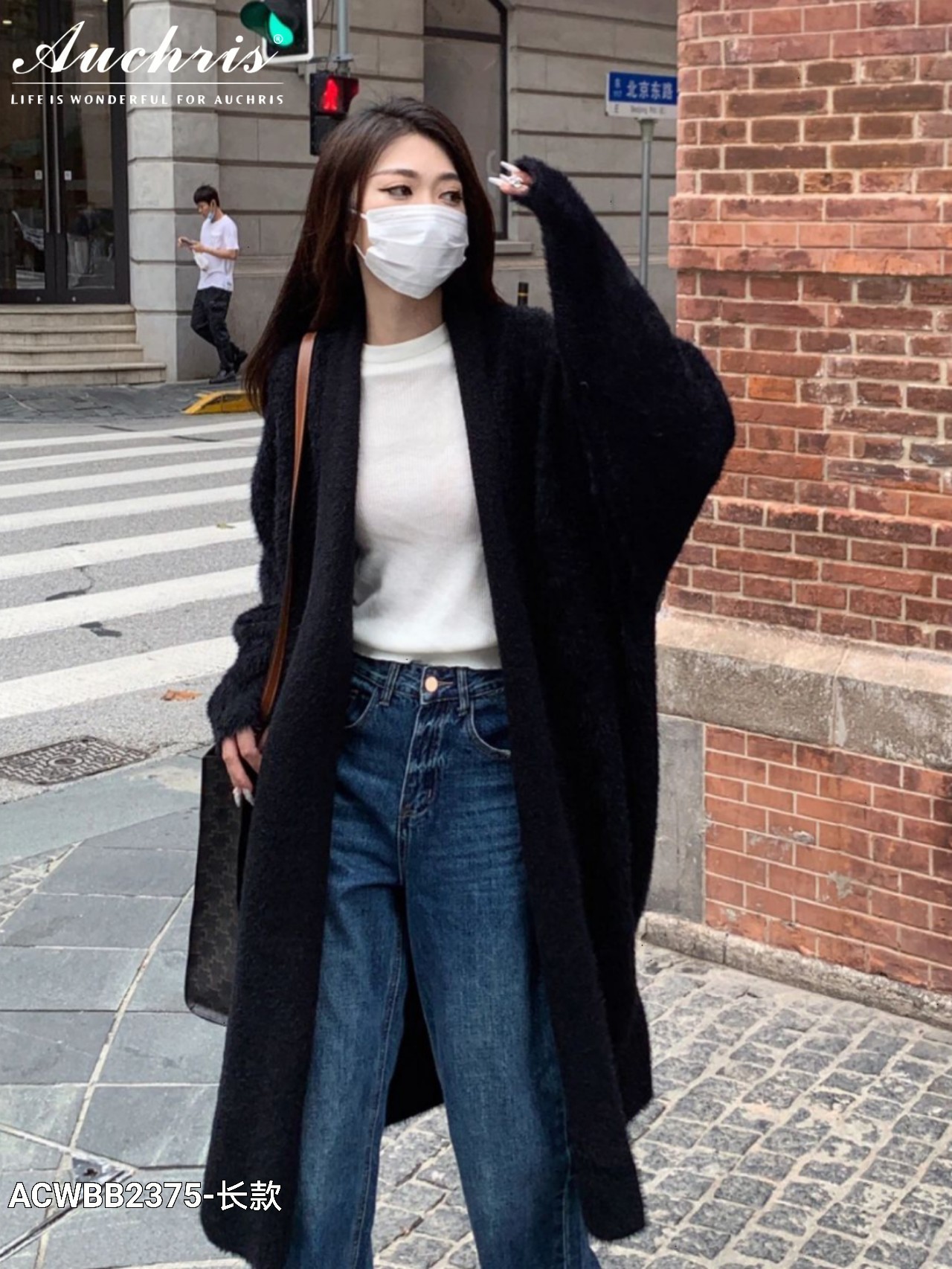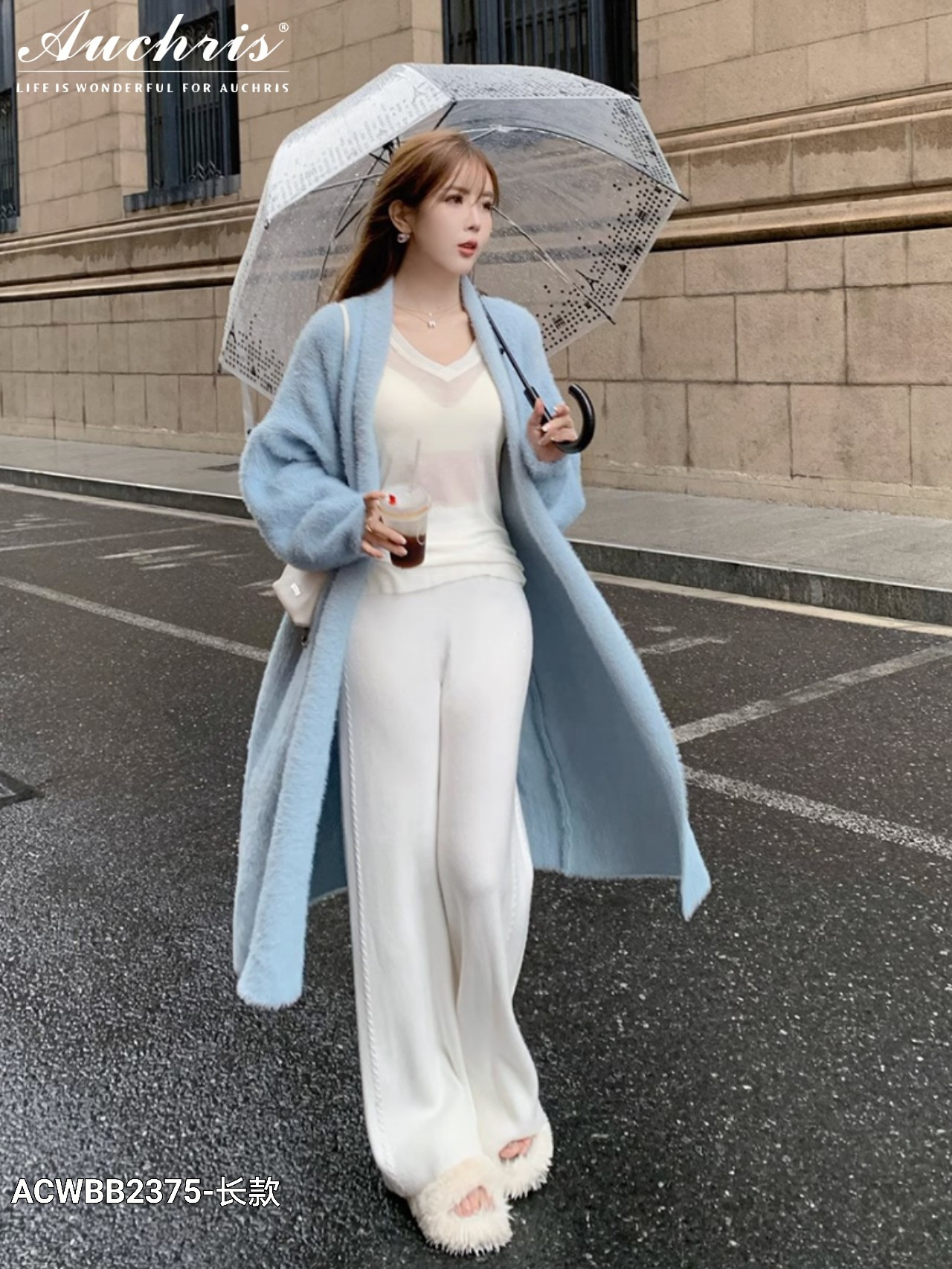 【商品名称】慵懒风中长款过膝仿水貂绒毛衣外套