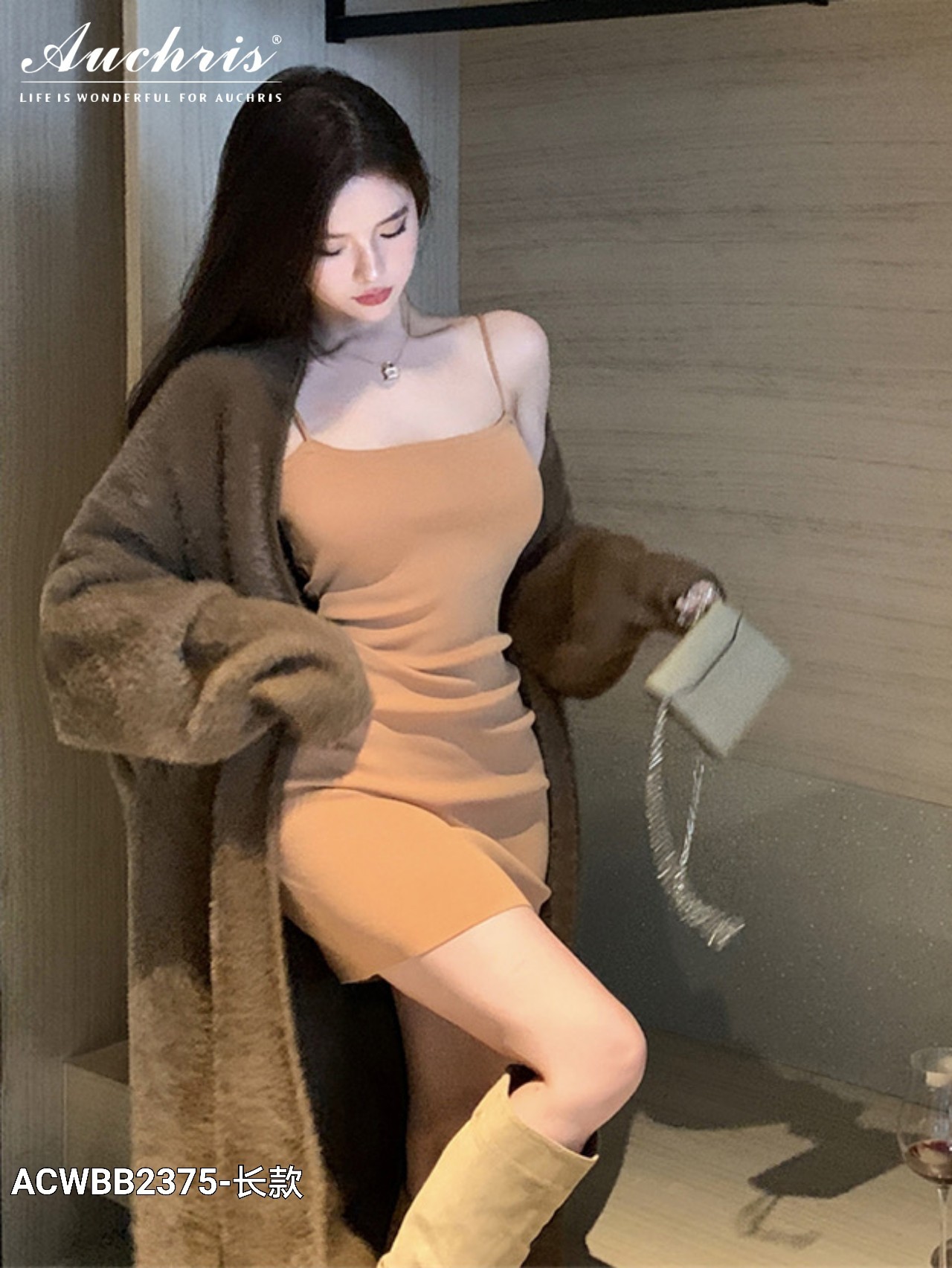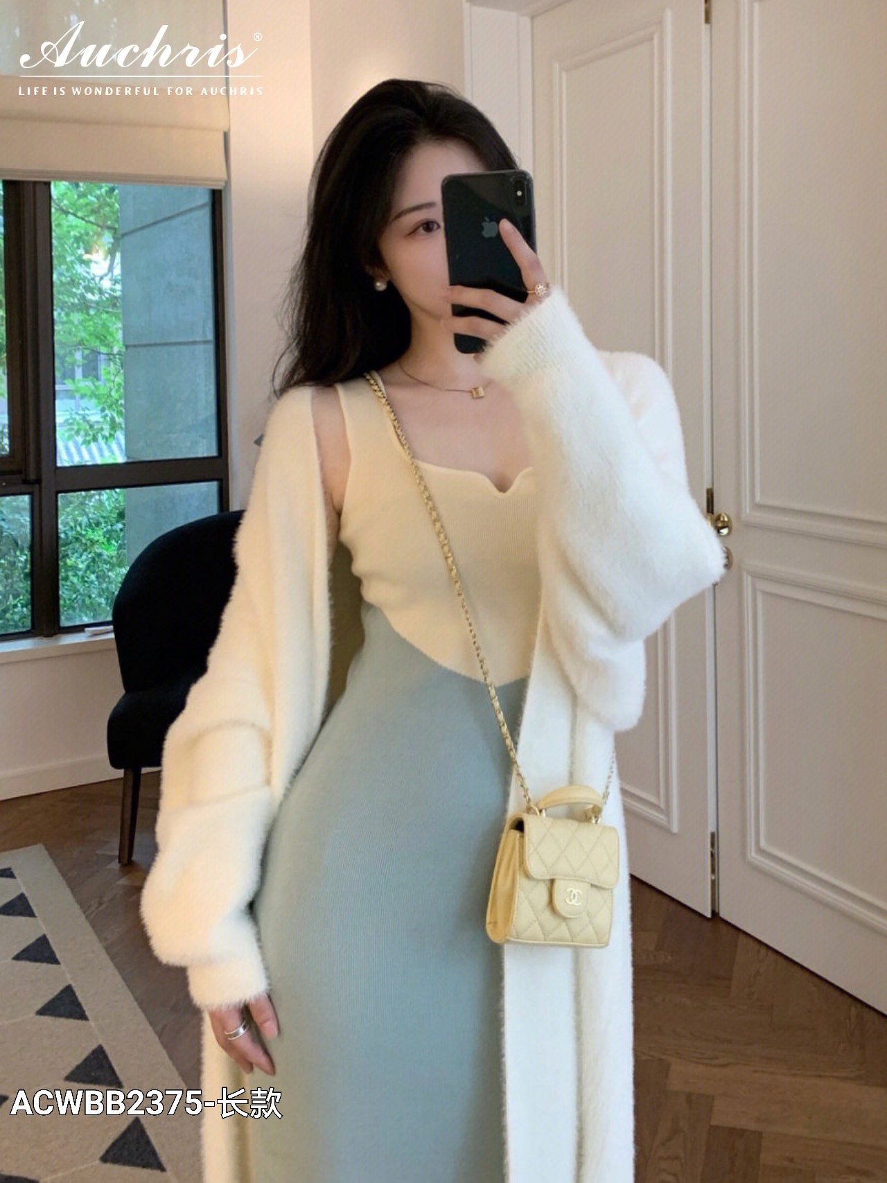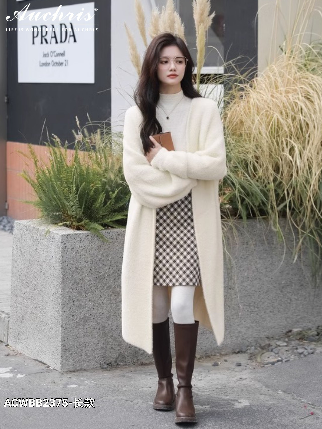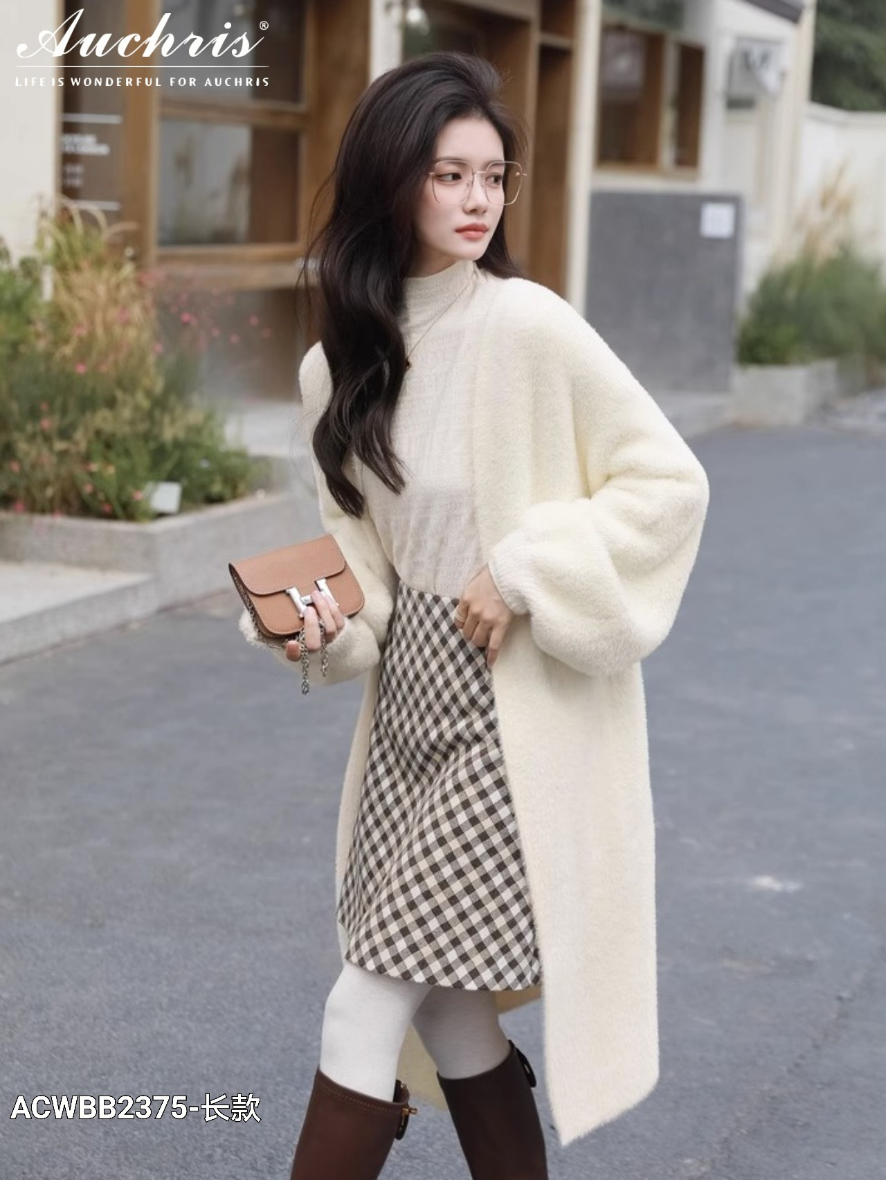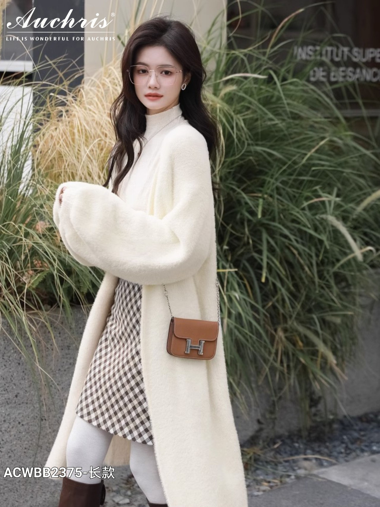 【商品名称】慵懒风中长款过膝仿水貂绒毛衣外套