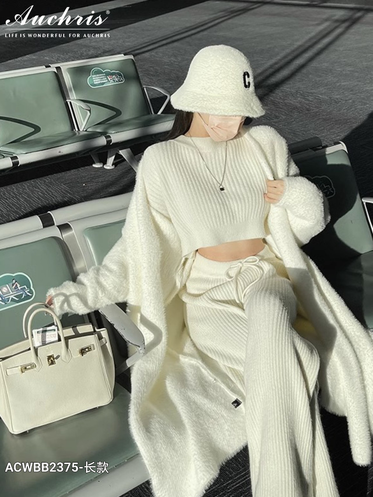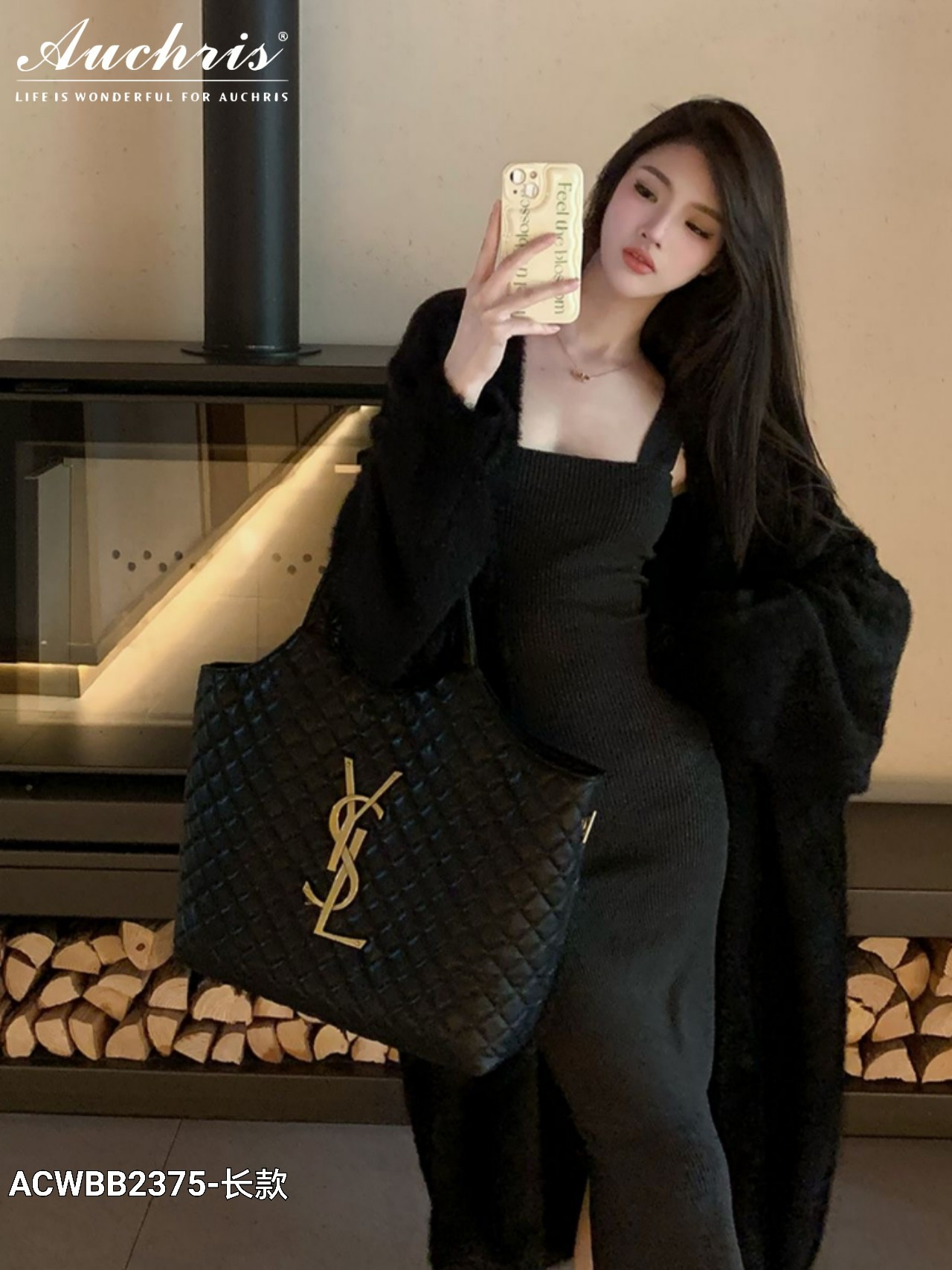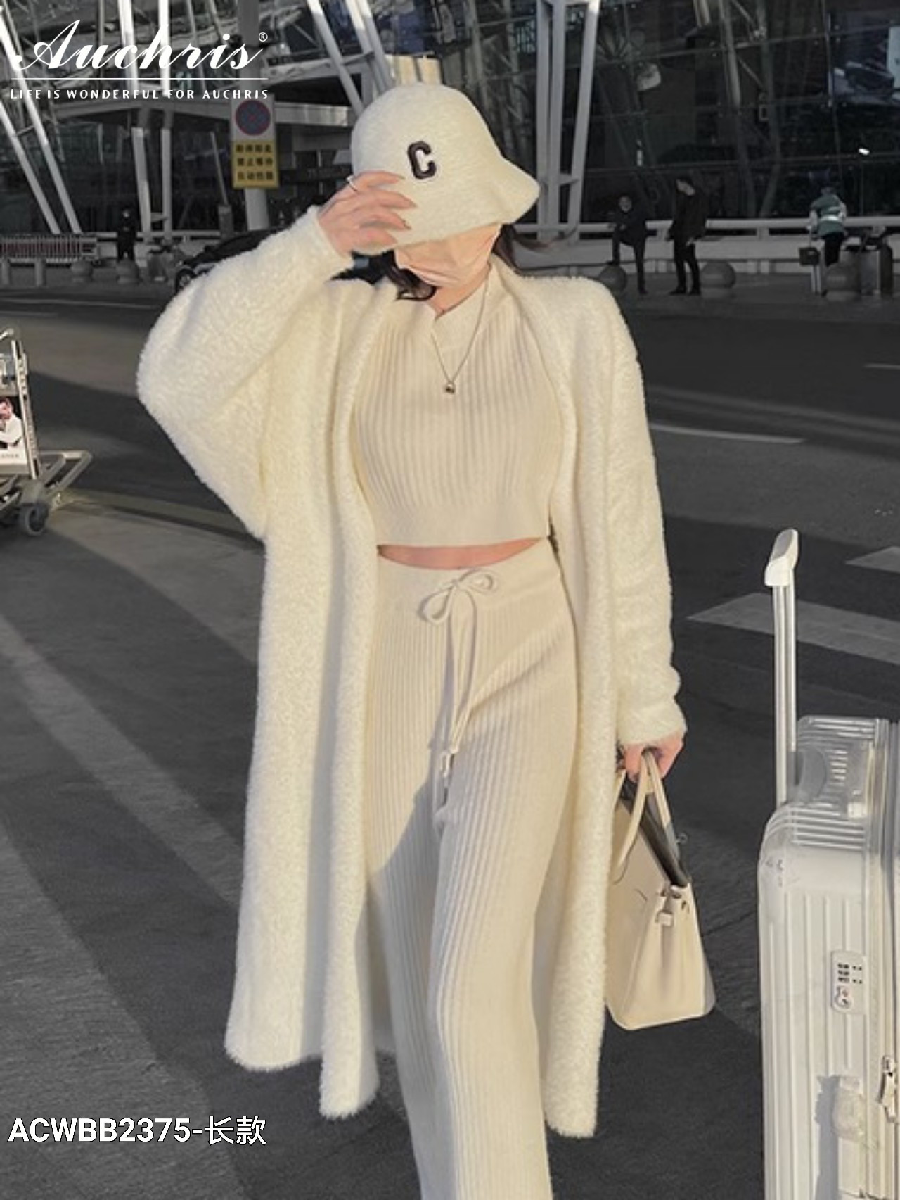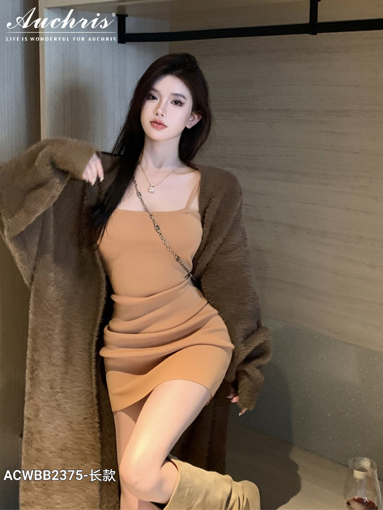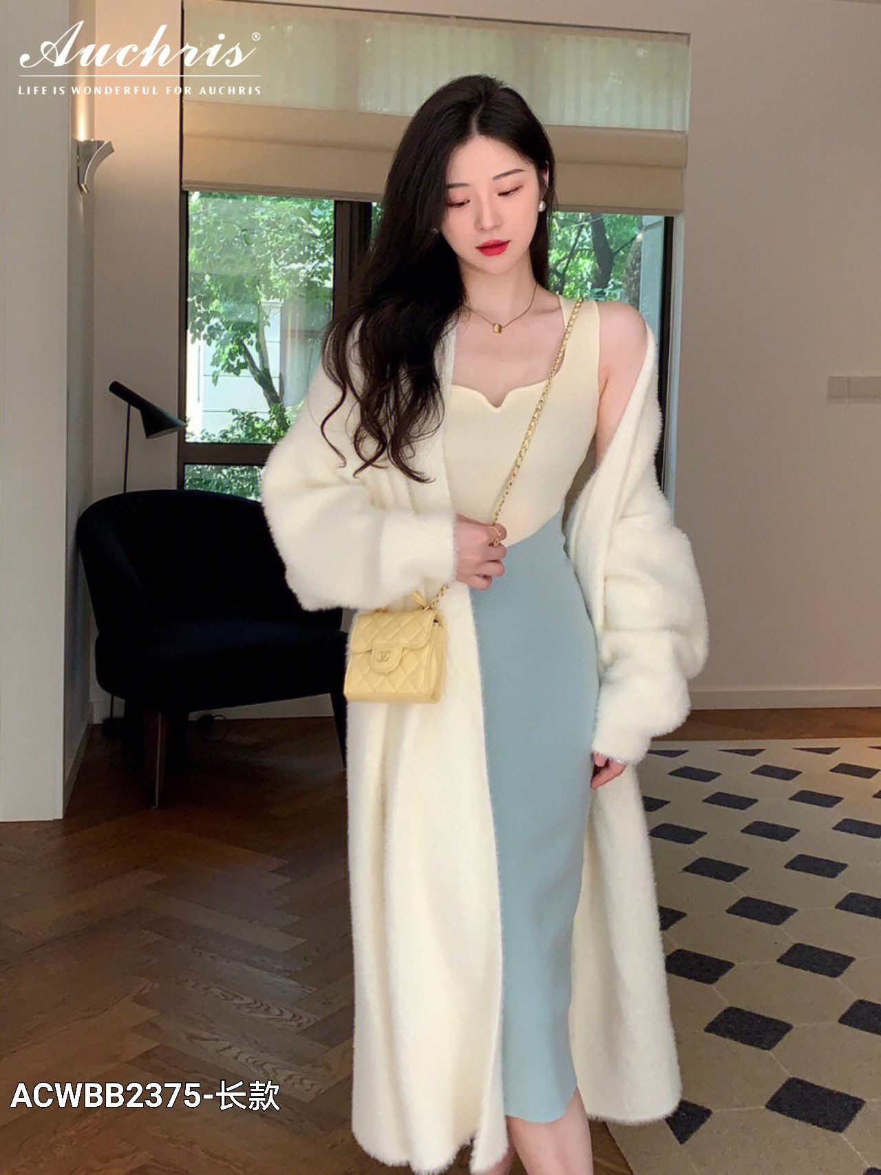 【商品名称】慵懒风中长款过膝仿水貂绒毛衣外套