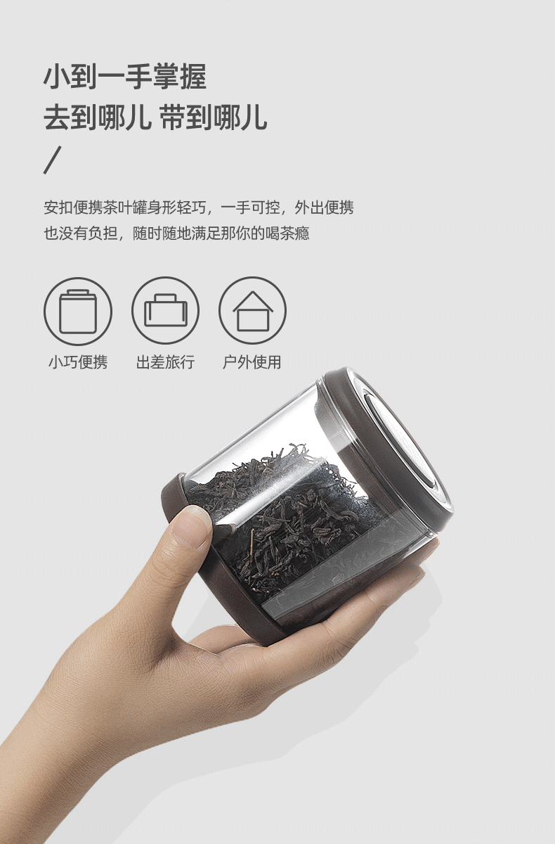 【密封防潮 便携茶叶罐 】安扣便携茶叶罐旅行随身迷你小号密封罐家用透明带盖玻璃茶罐