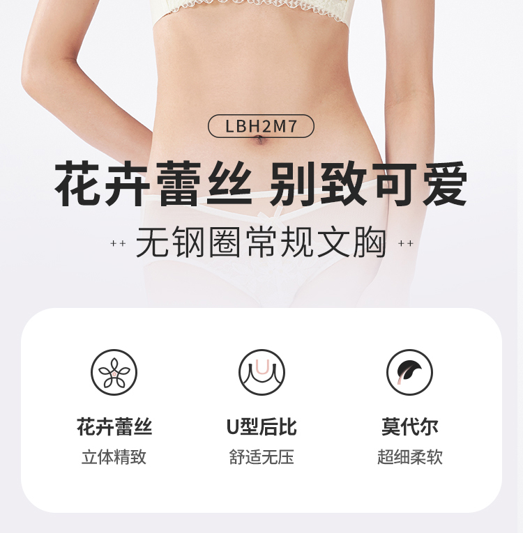 都市丽人自然舒适B杯常规内衣薄蕾丝无钢圈常规文胸LBH2M7