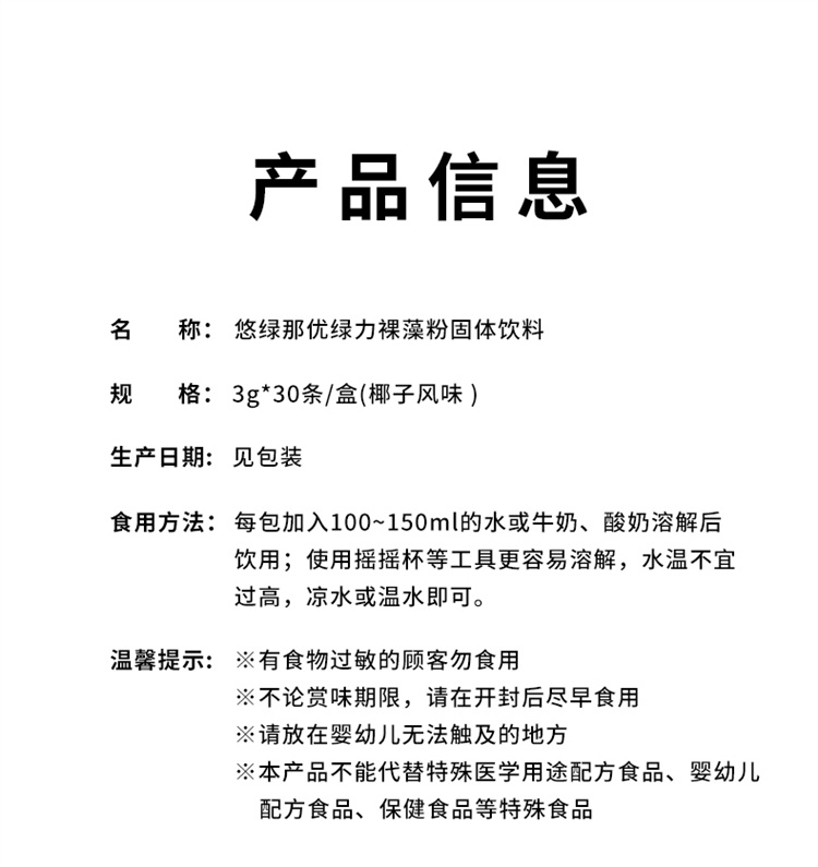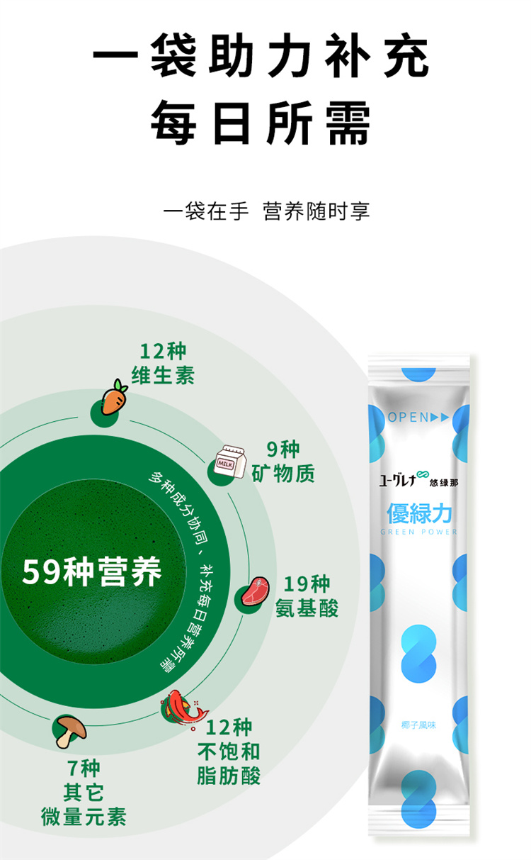 优绿力裸藻饮椰子风味天然健康饮品 30袋/盒