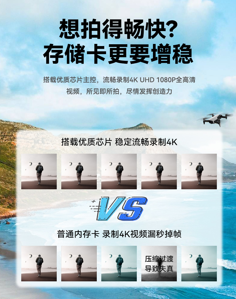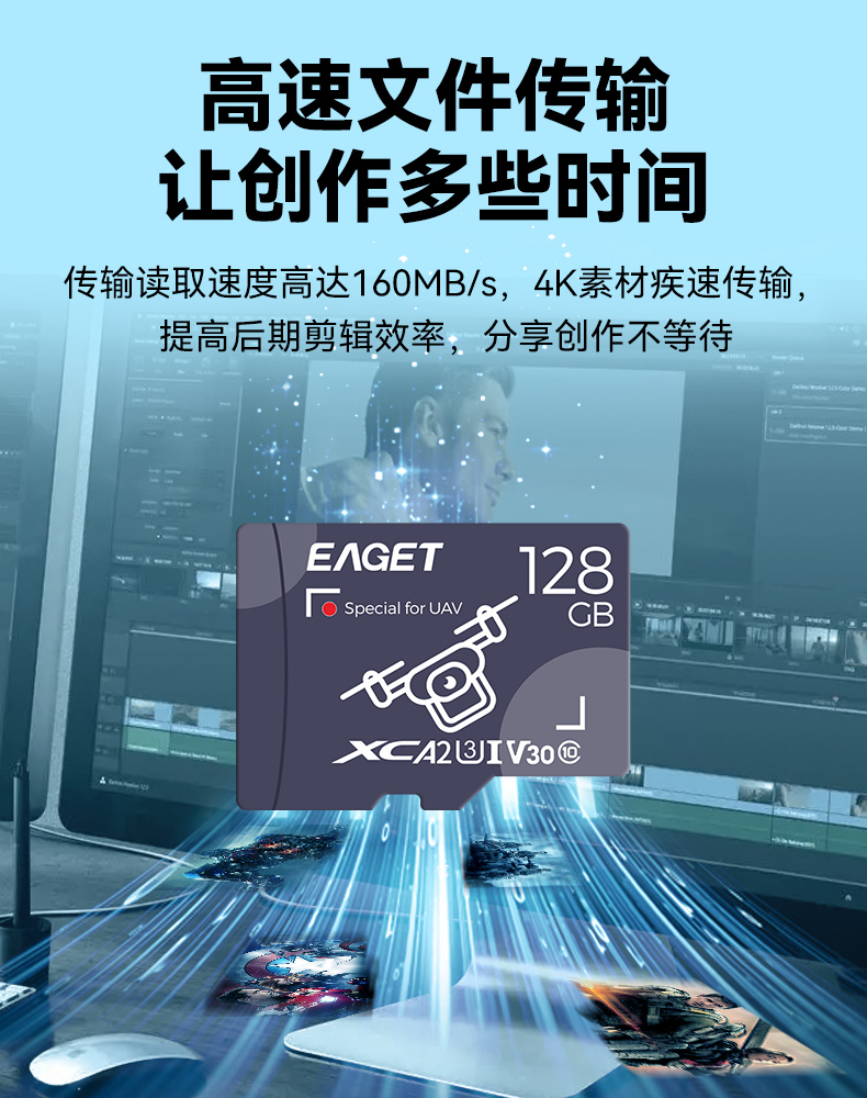 忆捷T5无人机存储卡高速稳定4K高清流畅 读速高达160MBs高速TF卡 128G