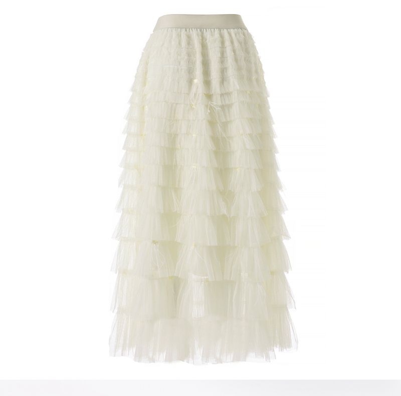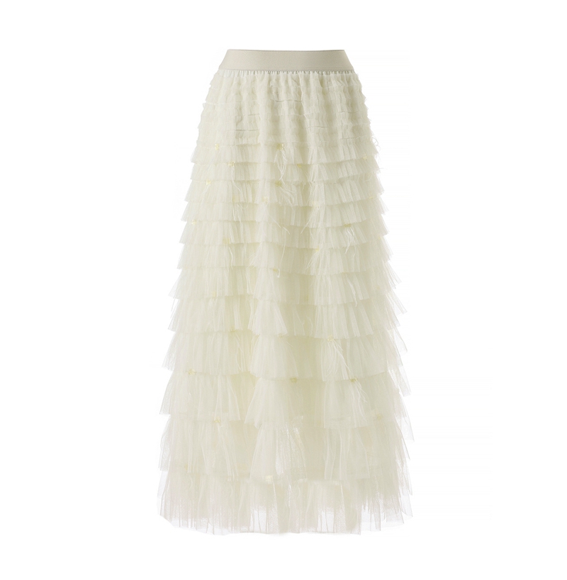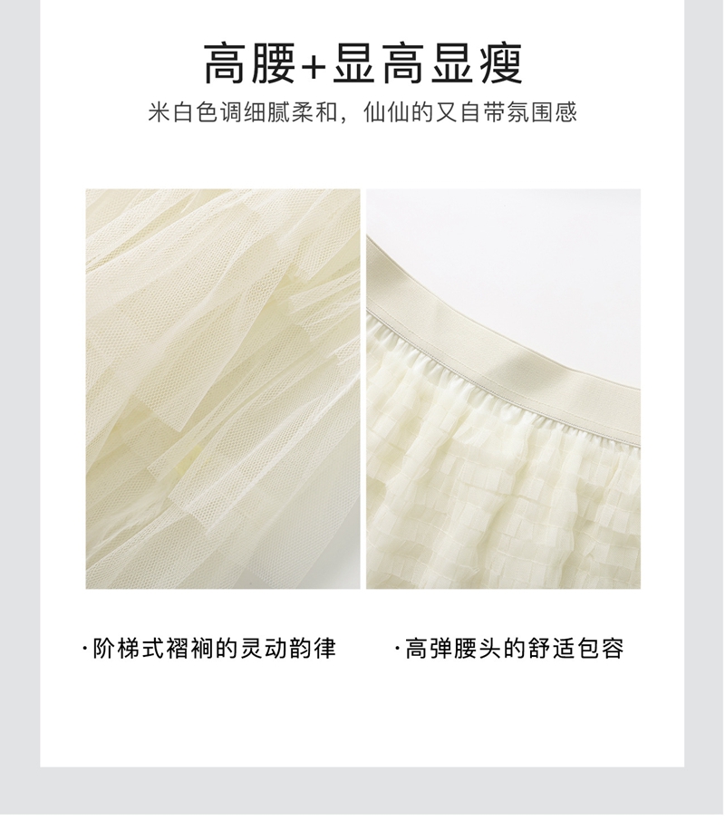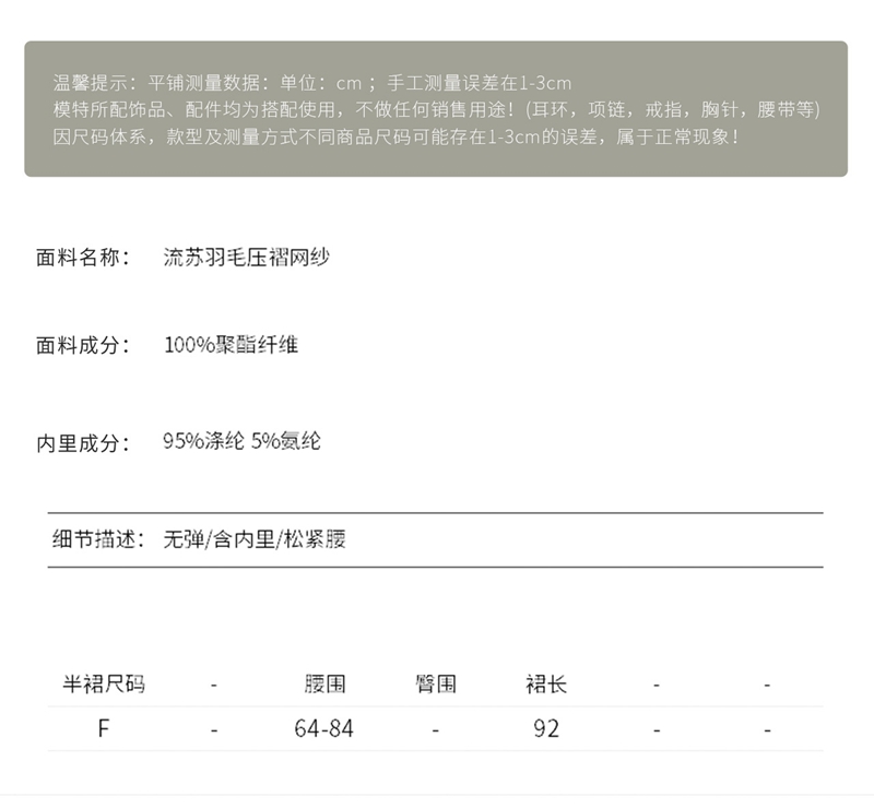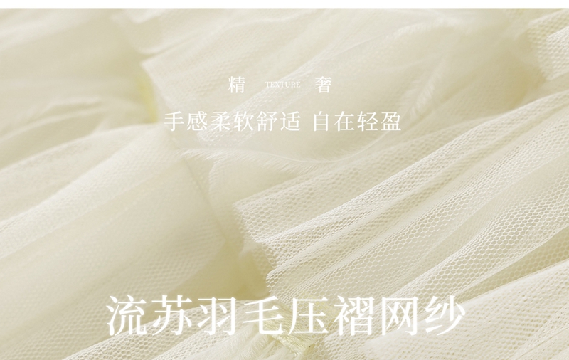 时尚重工网纱羽毛高腰松紧腰半身裙