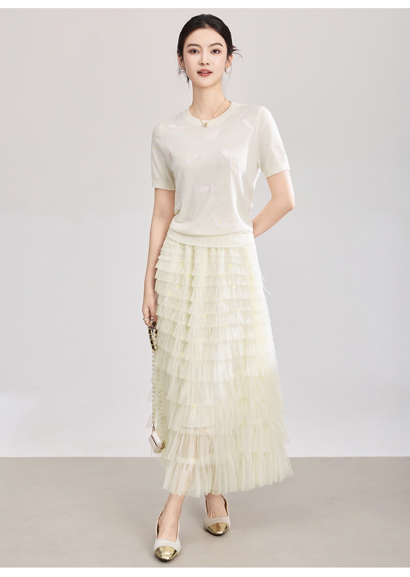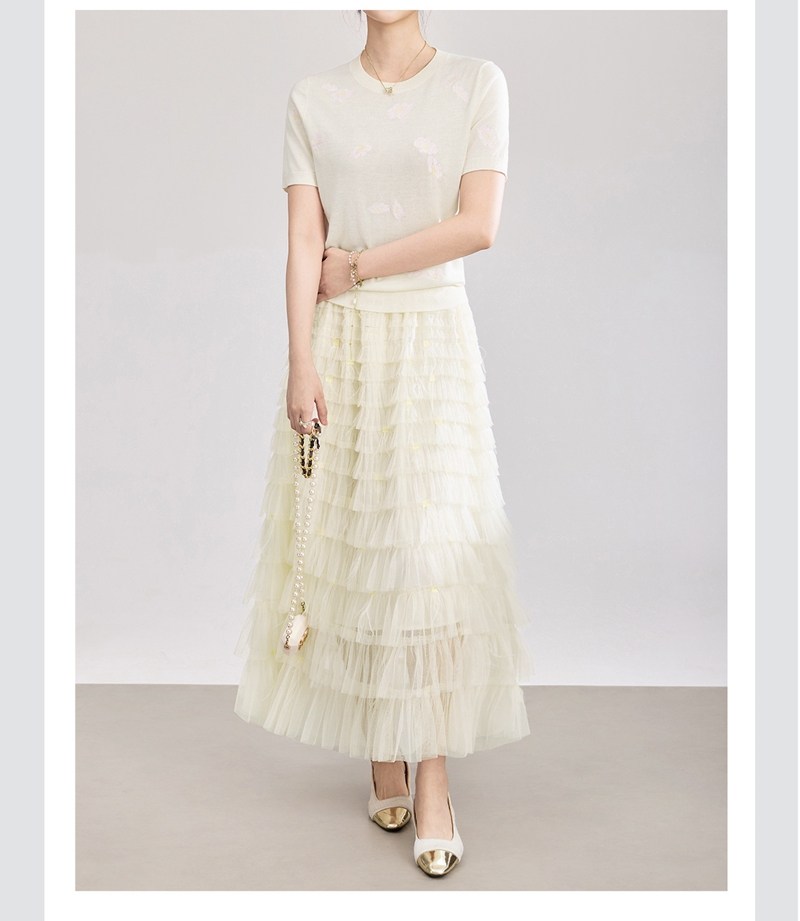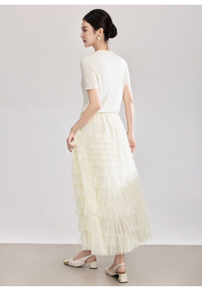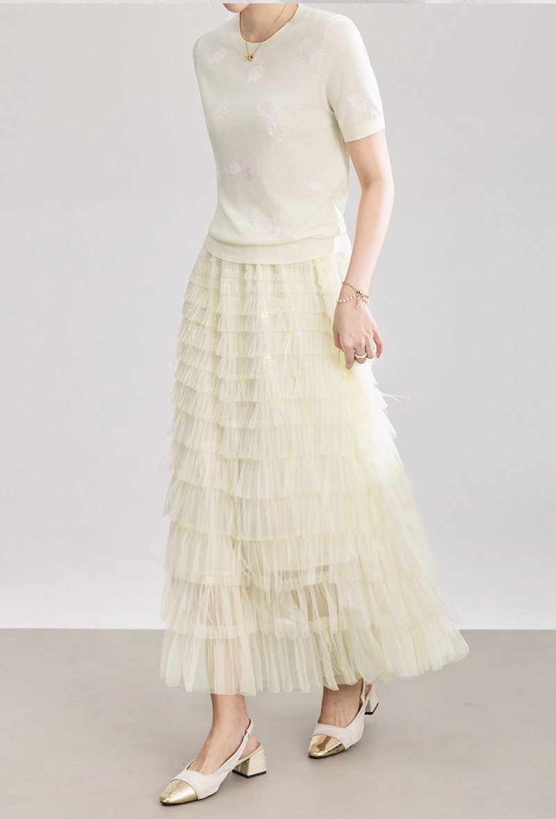 时尚重工网纱羽毛高腰松紧腰半身裙
