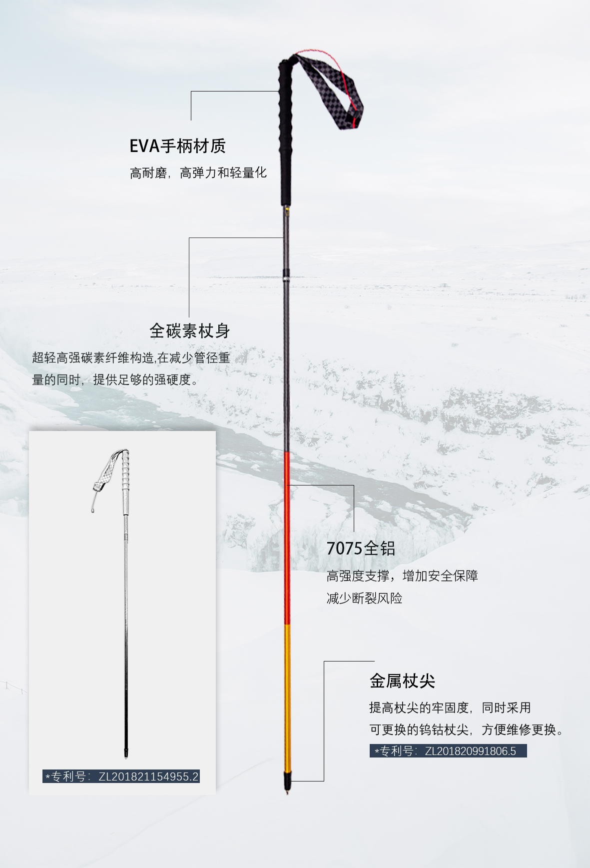 【ZENONE/Z1902】杖一碳金轻量化越野杖