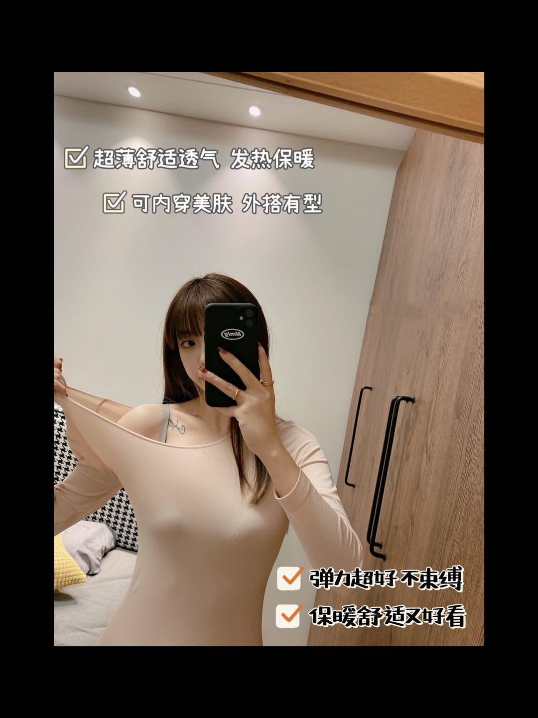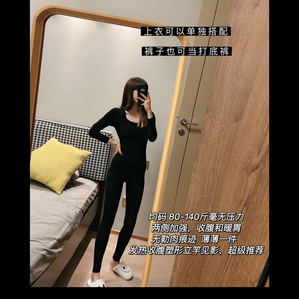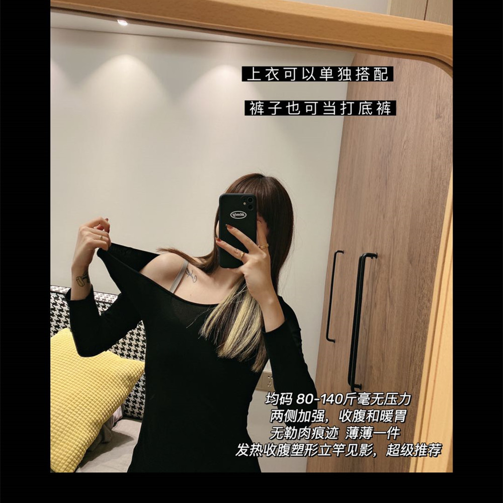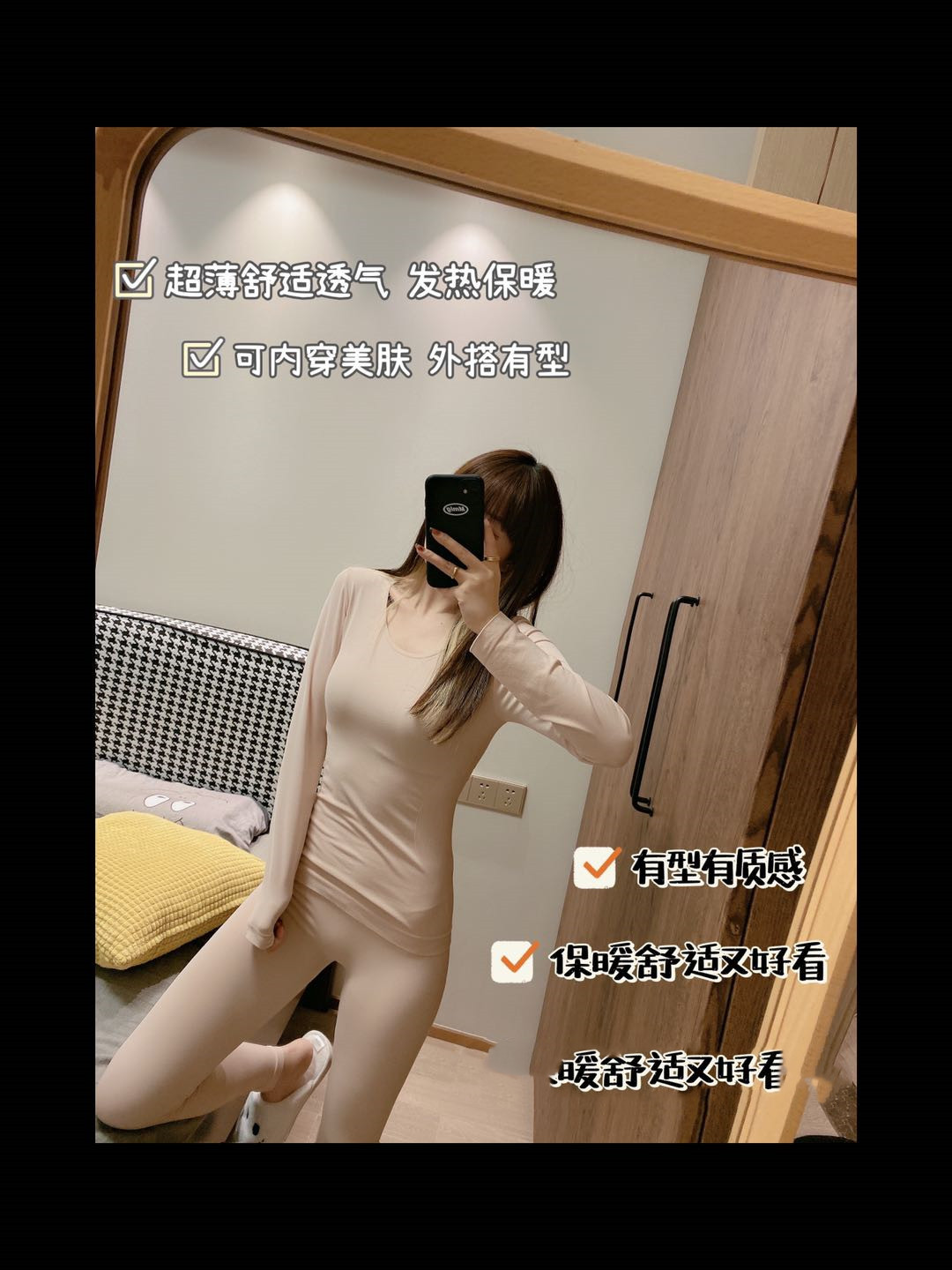 日本面膜发热保暖内衣女士薄面膜发热套装女37度恒温速热秋衣秋裤