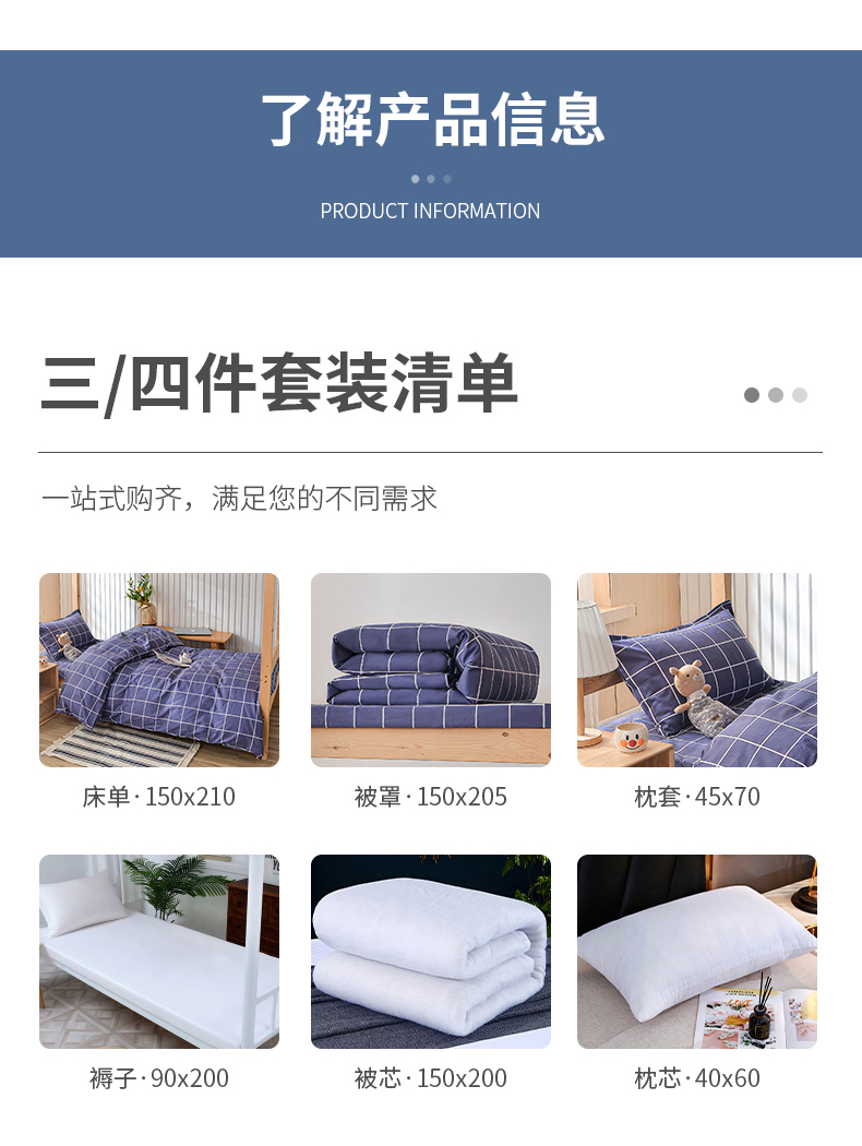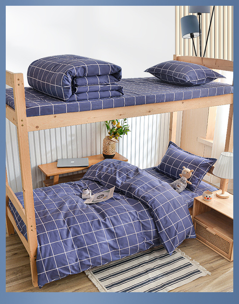 将军府/床上四件套/床单被套罩枕套21支纯棉/0.9m-1.2m/格子克拉/