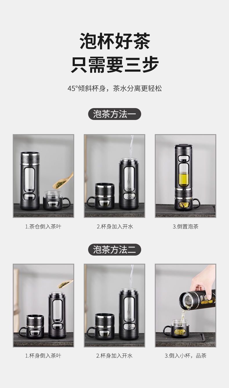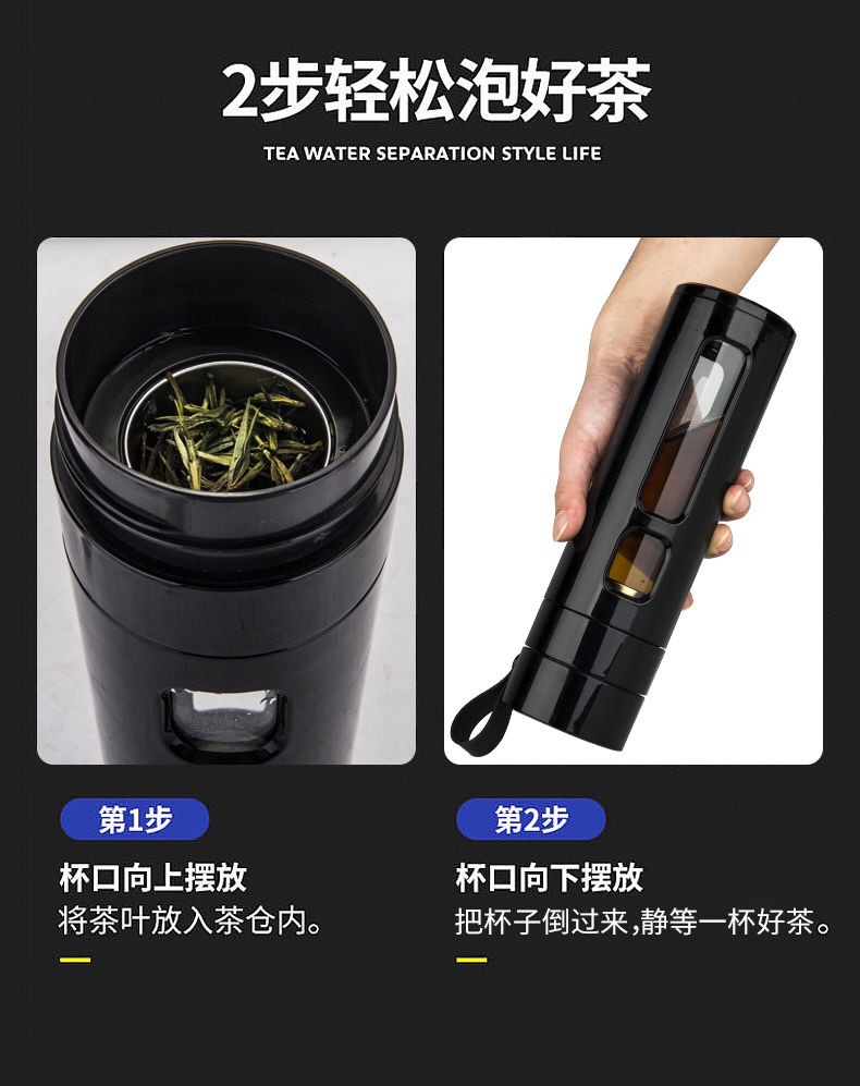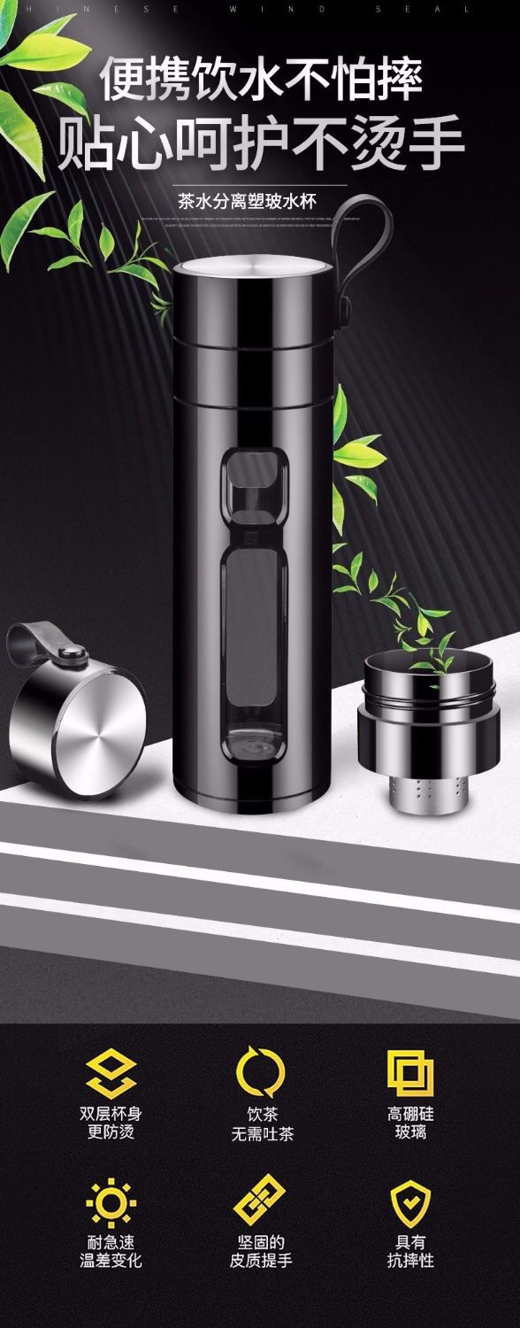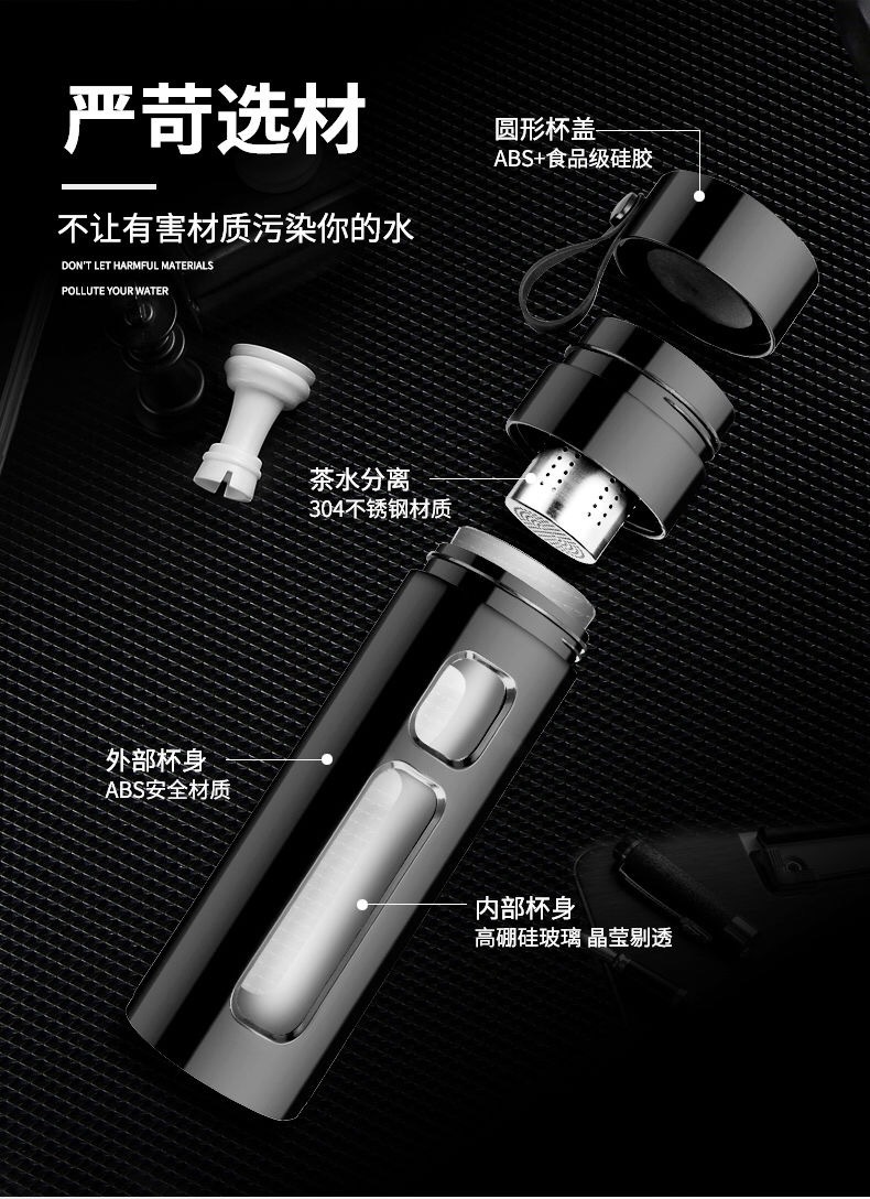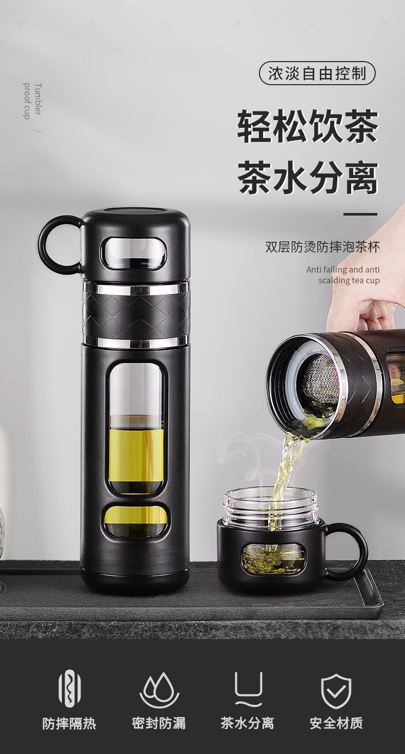 茶水分离保温杯 耐高温高档塑玻杯 双层防摔玻璃杯 创意水杯男女商务礼品办公杯子