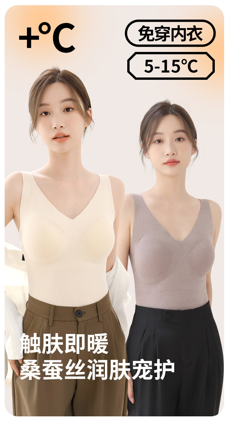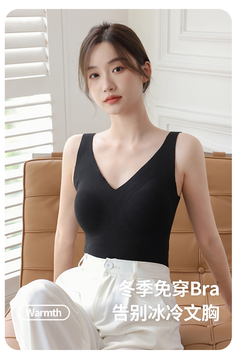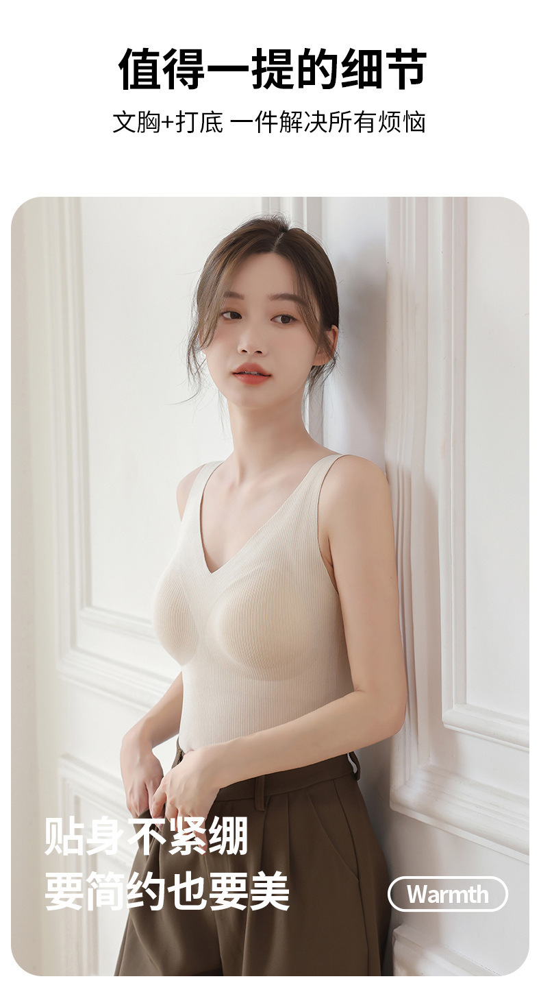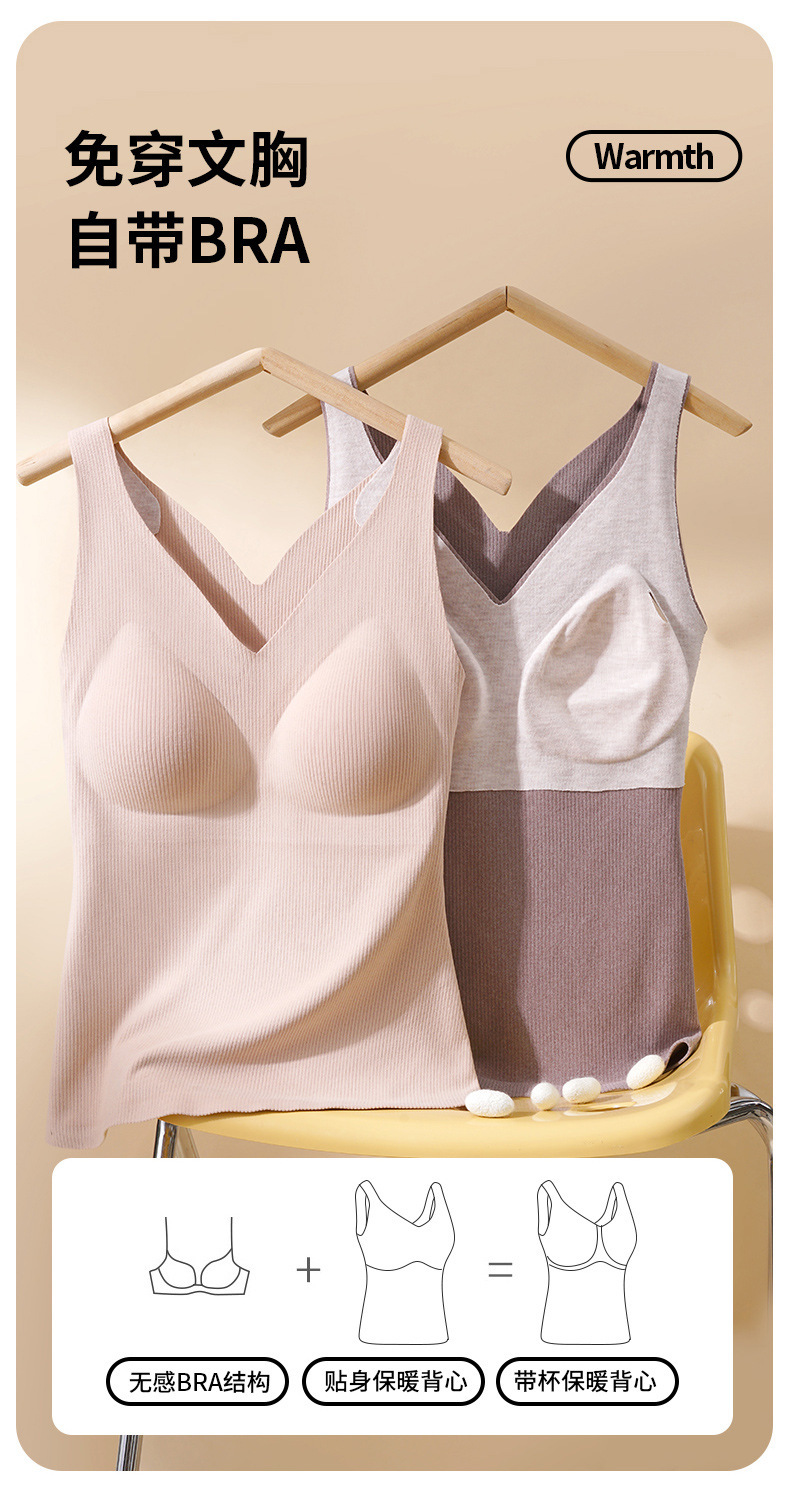 【百搭螺纹德绒保暖背心】升温你的时尚气质。轻柔舒适的加绒材质,双面磨毛恒温发热,让你感受无与伦比的温暖。无痕修身设计,完美贴合身形,为你勾勒凹凸曲线。内搭外穿皆宜,你值得拥有的精致内衣!