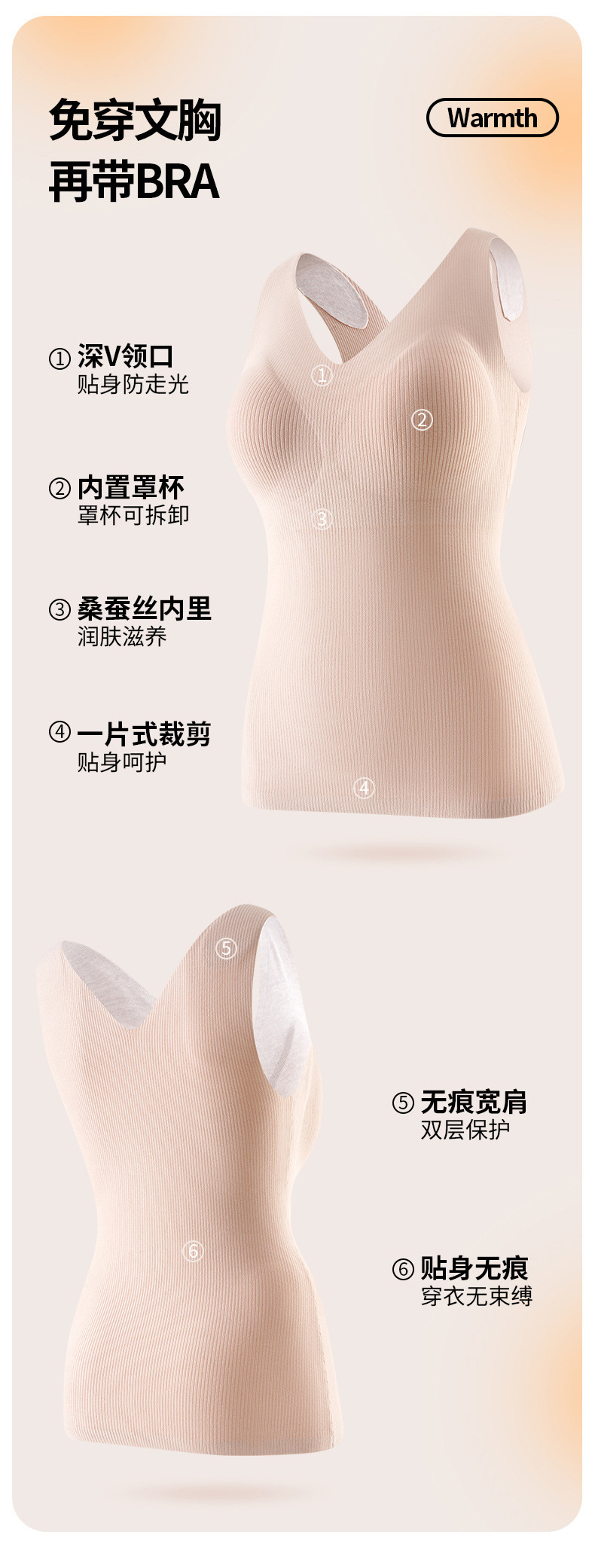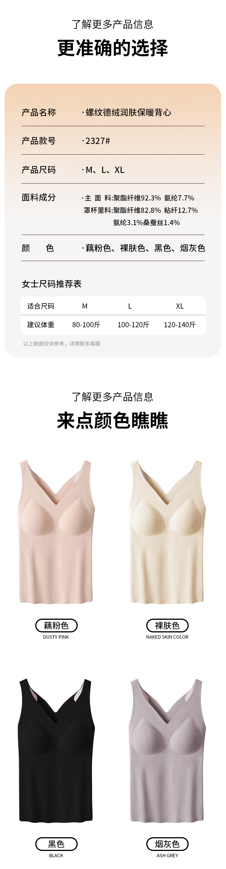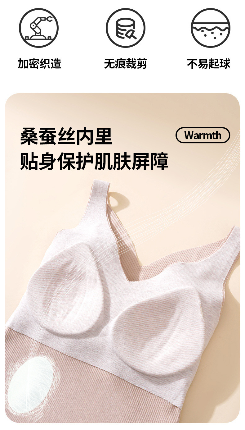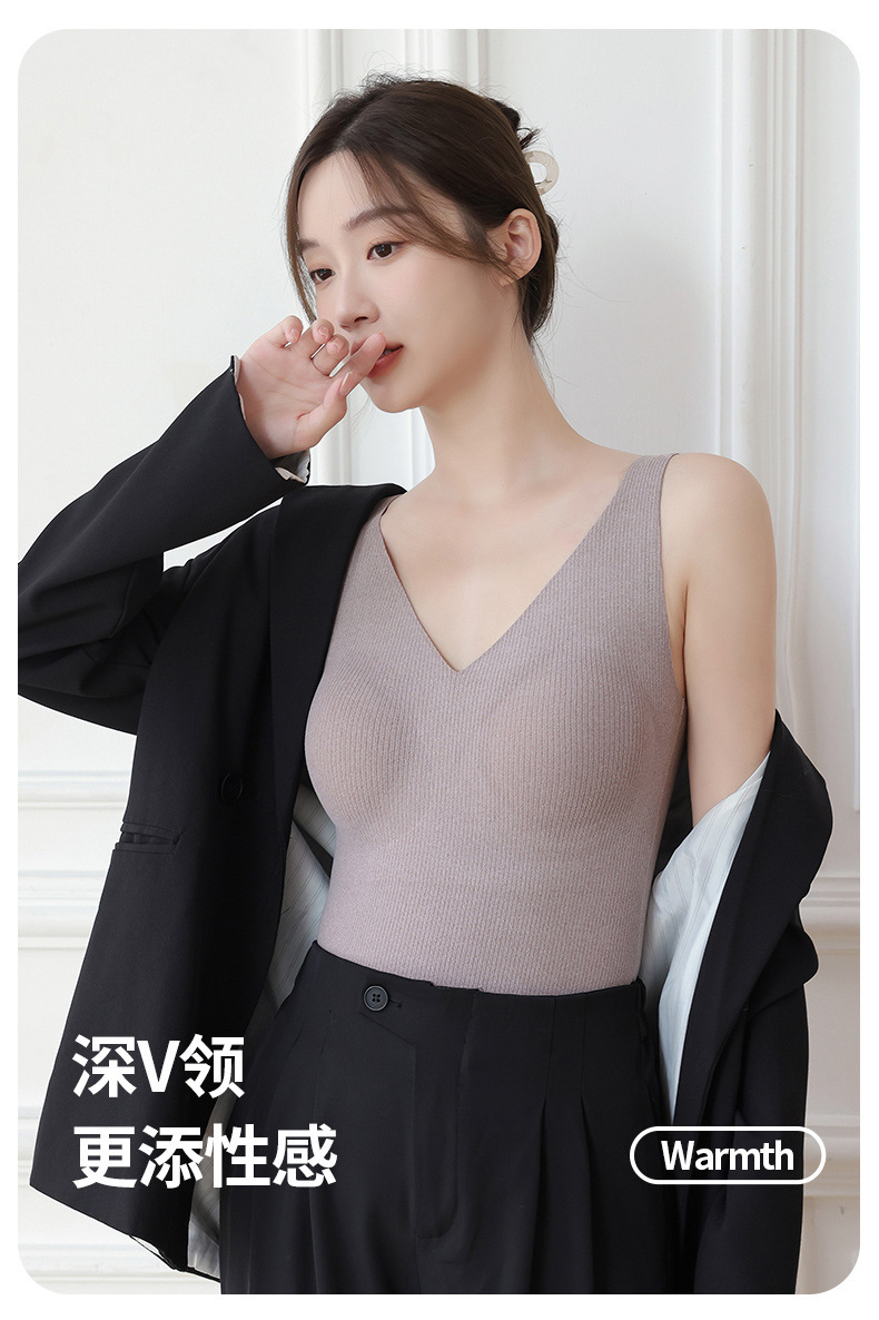 【百搭螺纹德绒保暖背心】升温你的时尚气质。轻柔舒适的加绒材质,双面磨毛恒温发热,让你感受无与伦比的温暖。无痕修身设计,完美贴合身形,为你勾勒凹凸曲线。内搭外穿皆宜,你值得拥有的精致内衣!