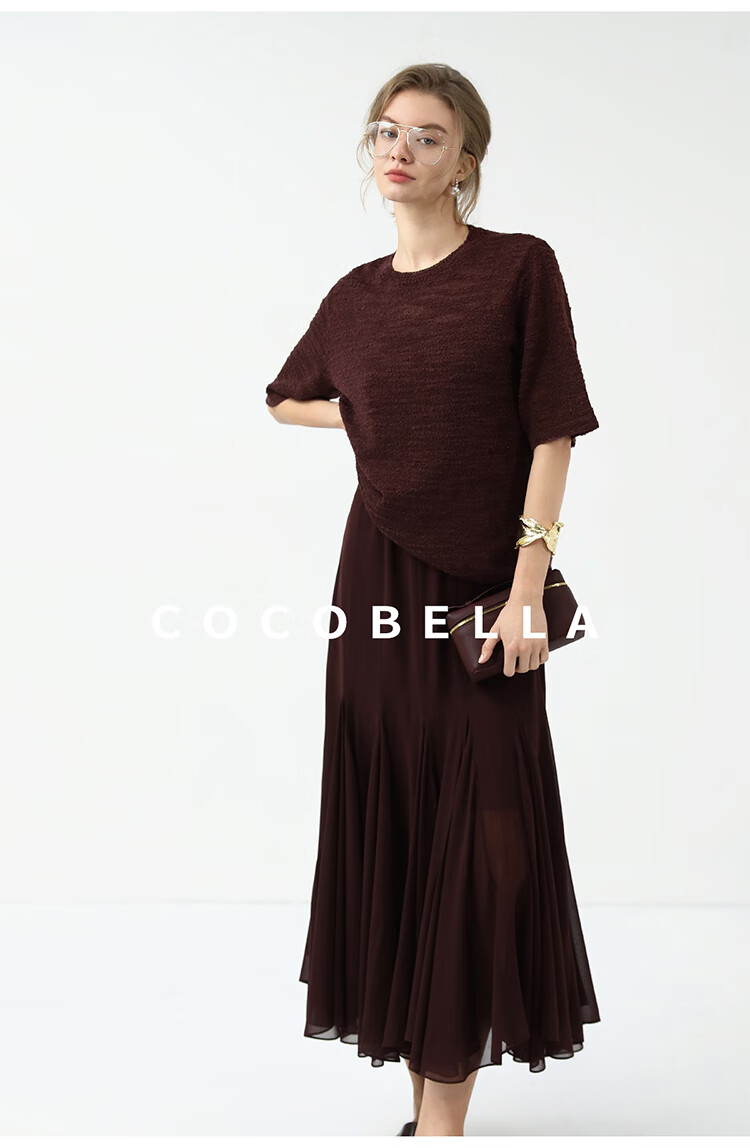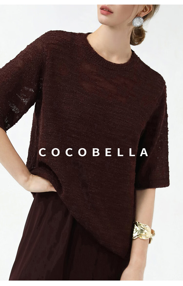 COCOBELLA镂空亮丝针织衫25春半袖节日风红小香风上衣MZ3167