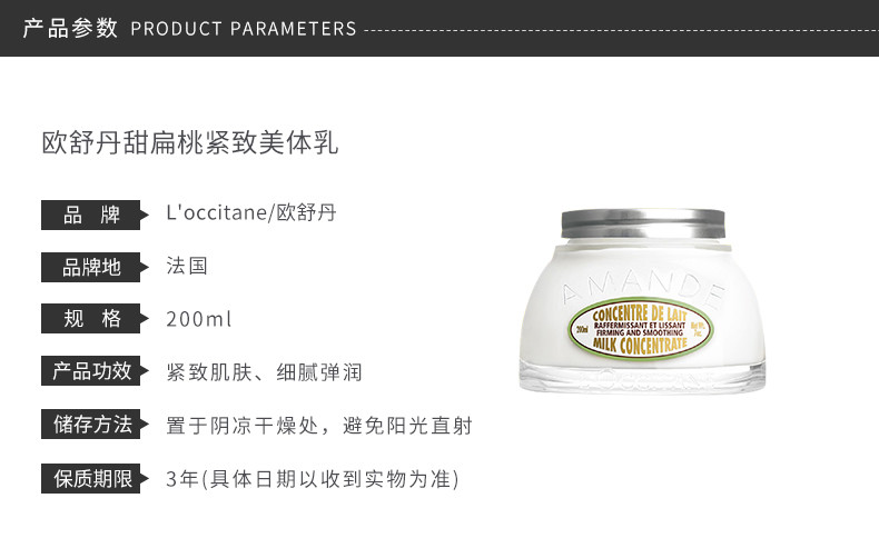L'OCCITANE 欧舒丹 身体乳甜扁桃紧致美体乳 200ML 法国