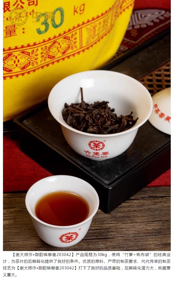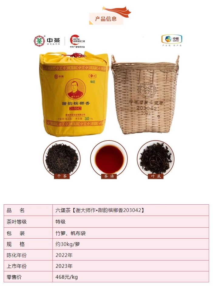 中粮-中茶2023年中茶广西梧州窖藏六堡茶黑茶谢大师作-甜韵槟榔香30KG箩装/原产地直发