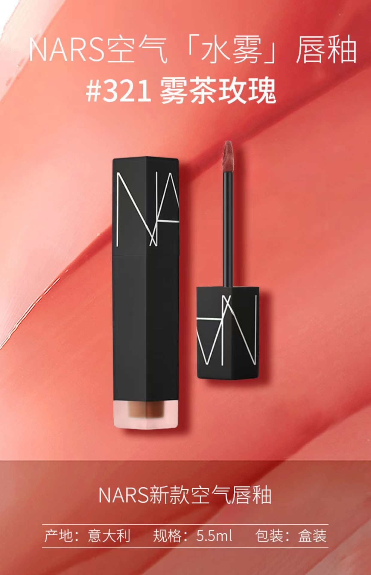 NARS纳斯空气革新水化雾唇霜唇釉TURNED 321雾茶玫瑰