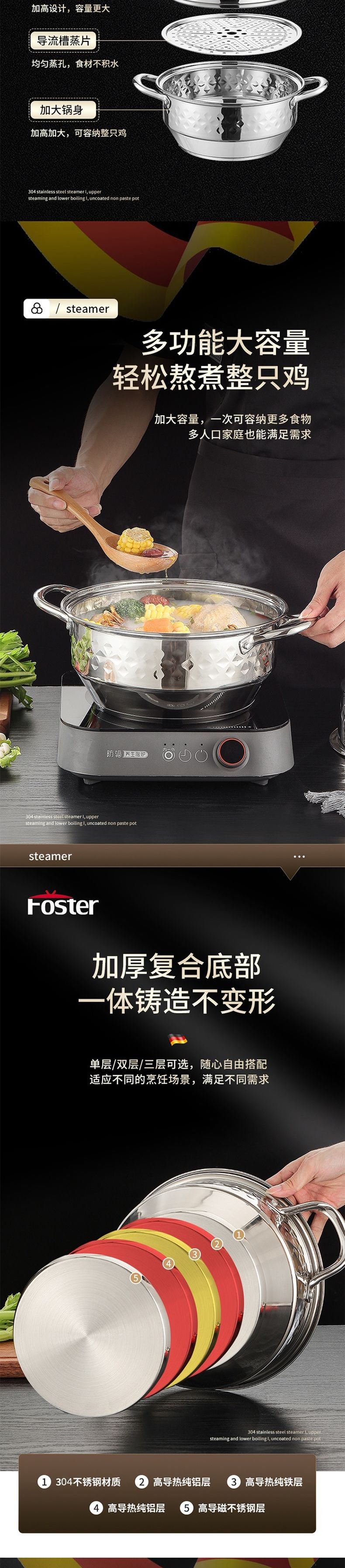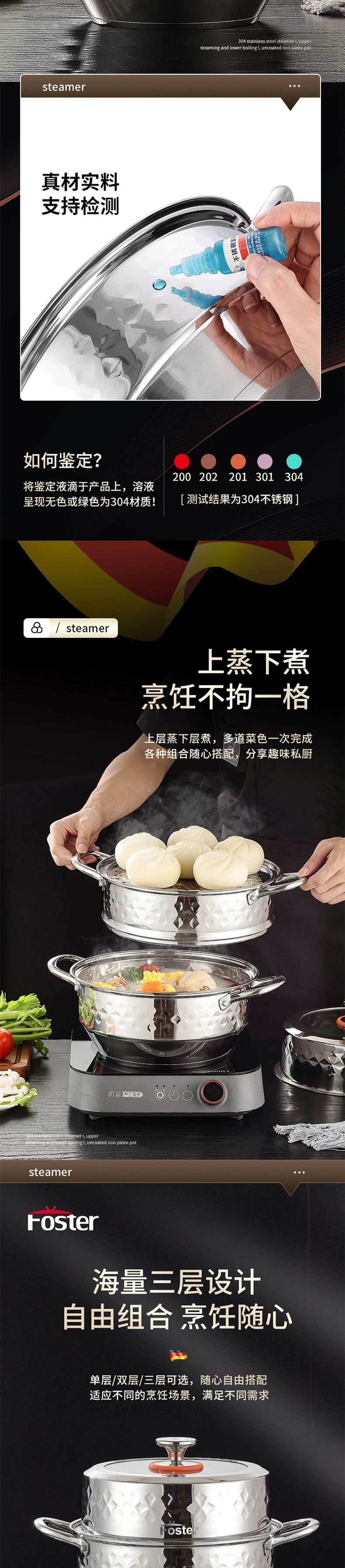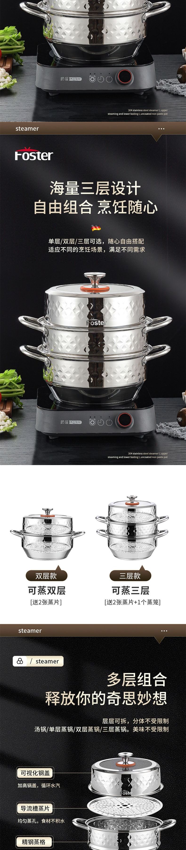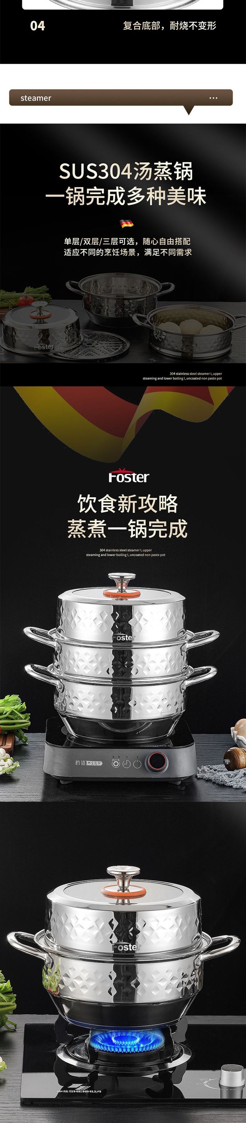 浮士德 德比星钻三层蒸锅 HG-1056 不锈钢蒸锅加厚大号