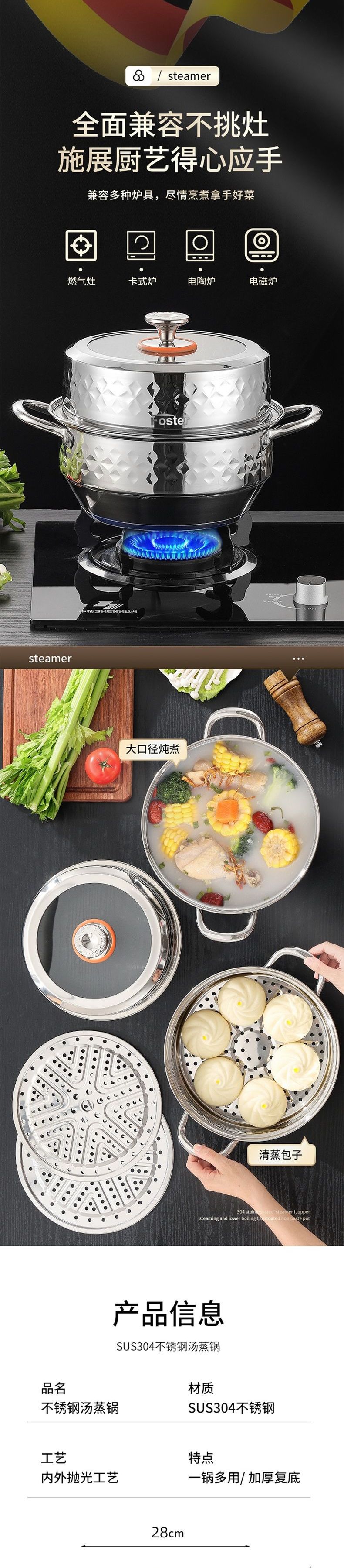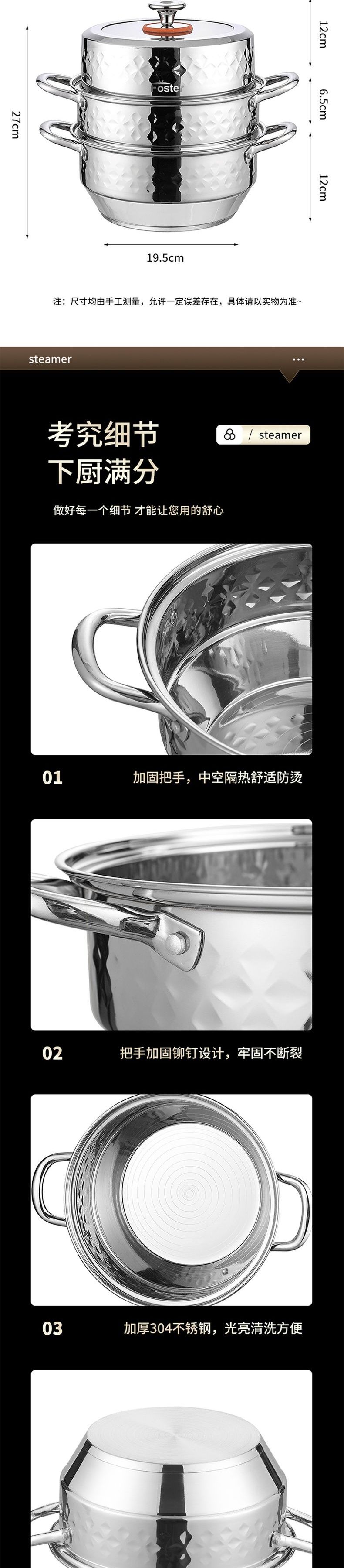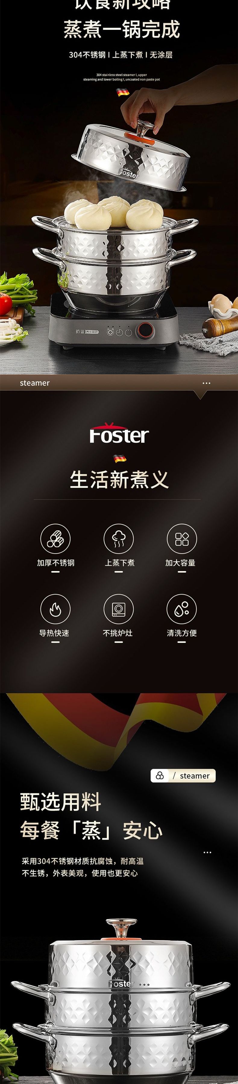 浮士德 德比星钻三层蒸锅 HG-1056 不锈钢蒸锅加厚大号