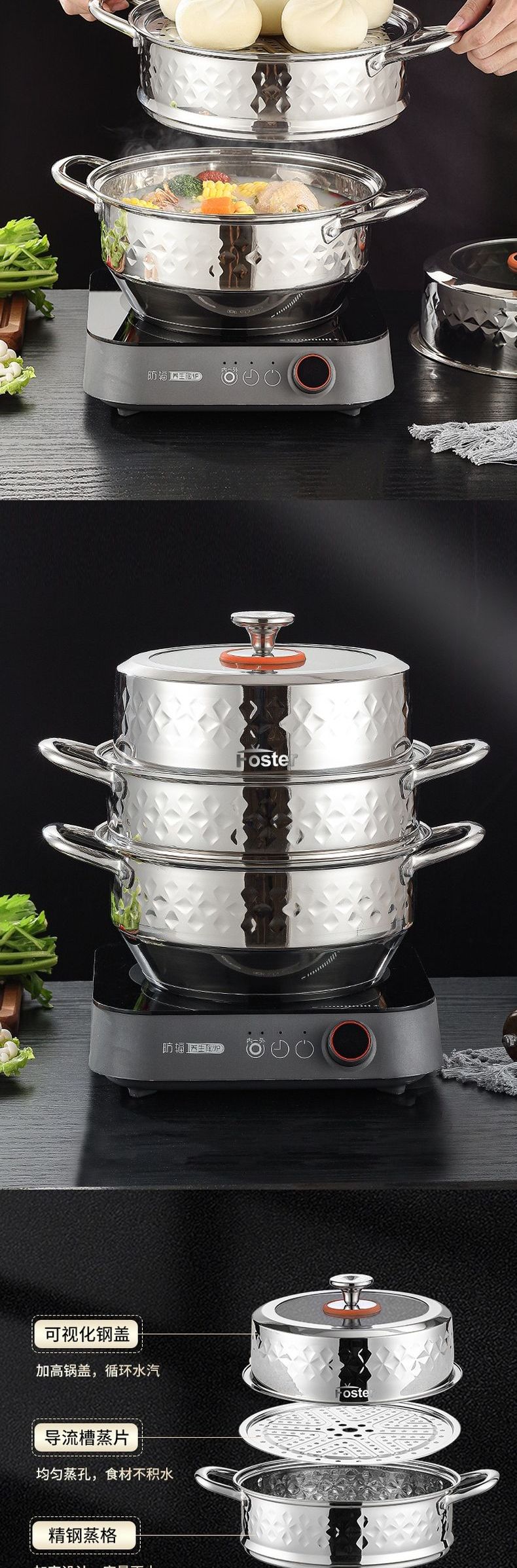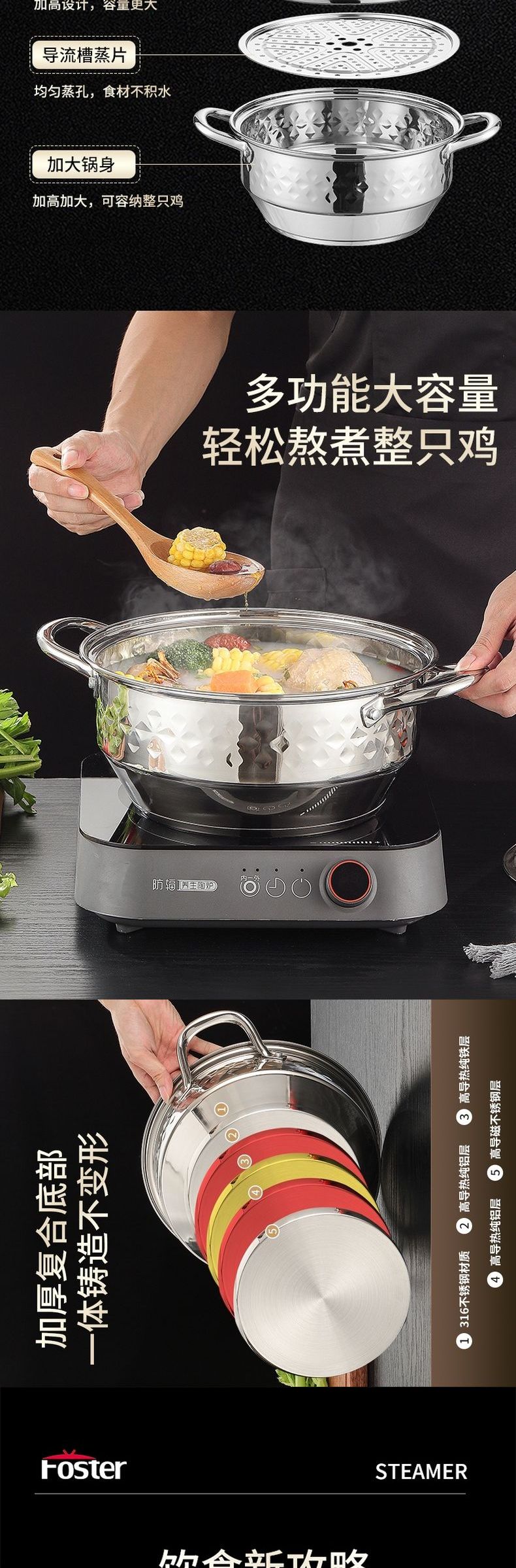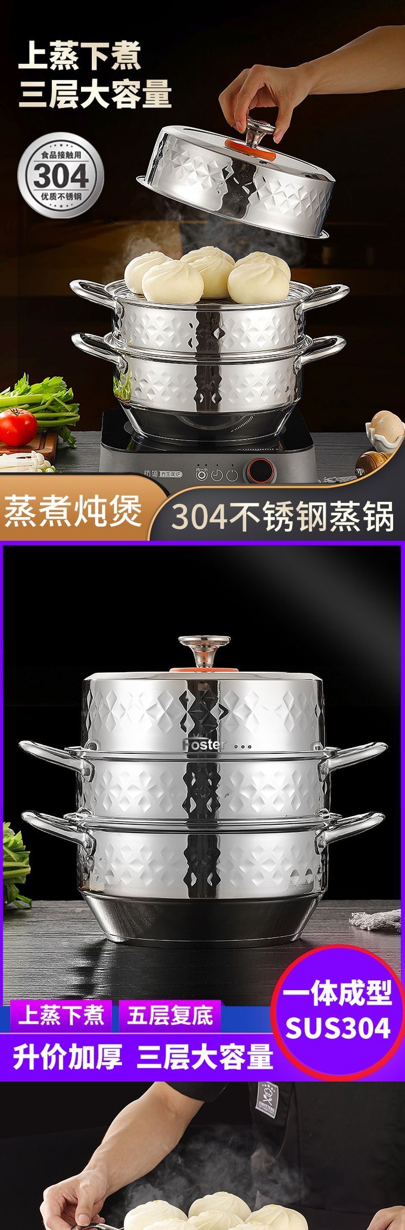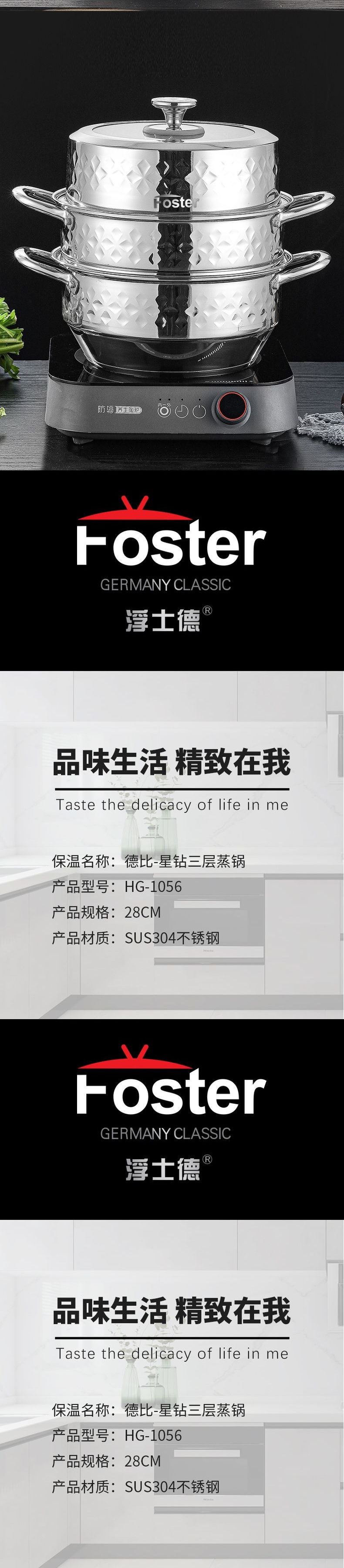 浮士德 德比星钻三层蒸锅 HG-1056 不锈钢蒸锅加厚大号