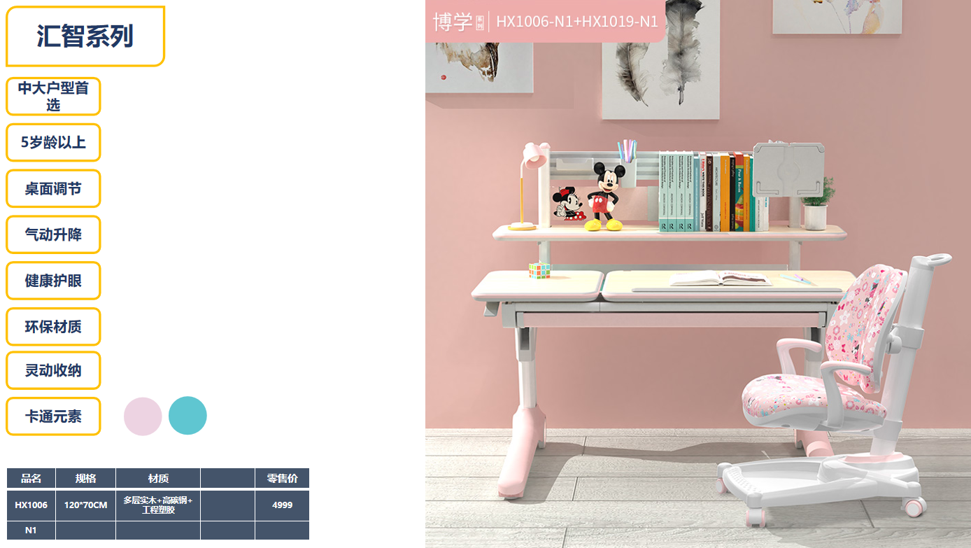 迪士尼儿童学习桌椅HX1006N1(120*70CM) 桌子+椅子 一套 样品处理