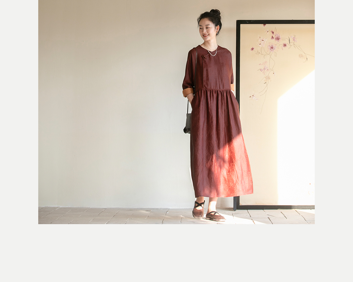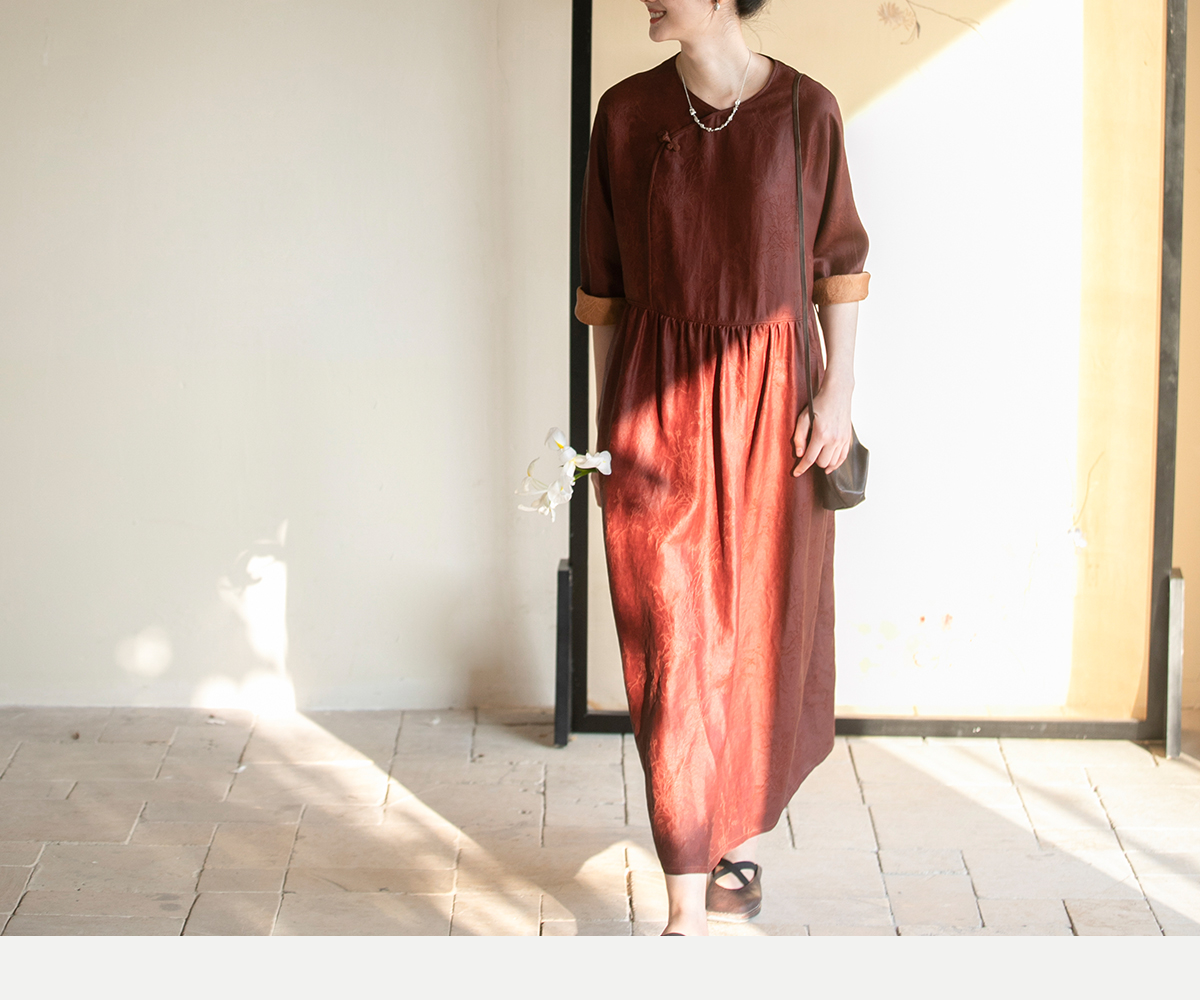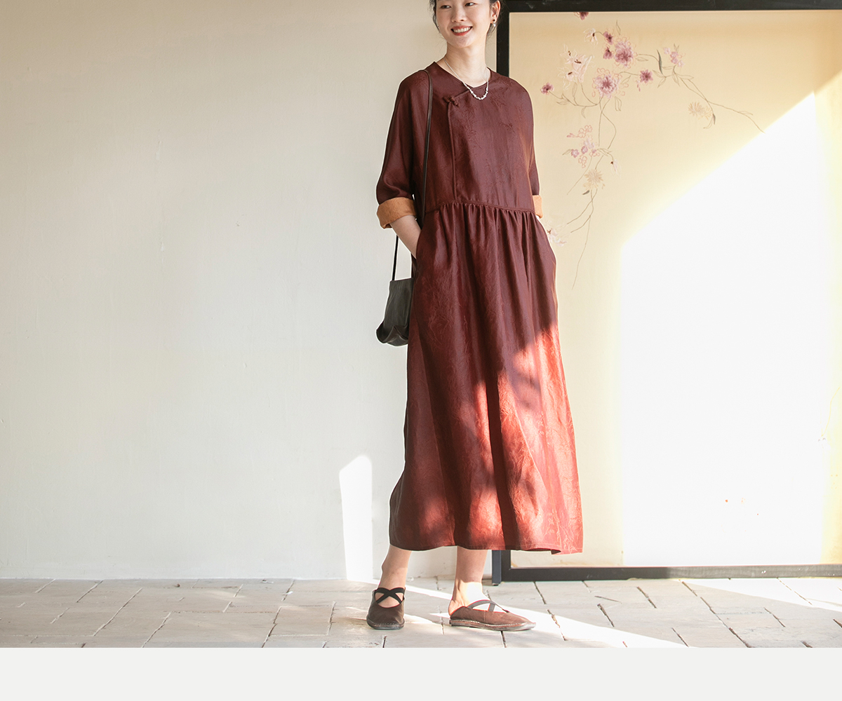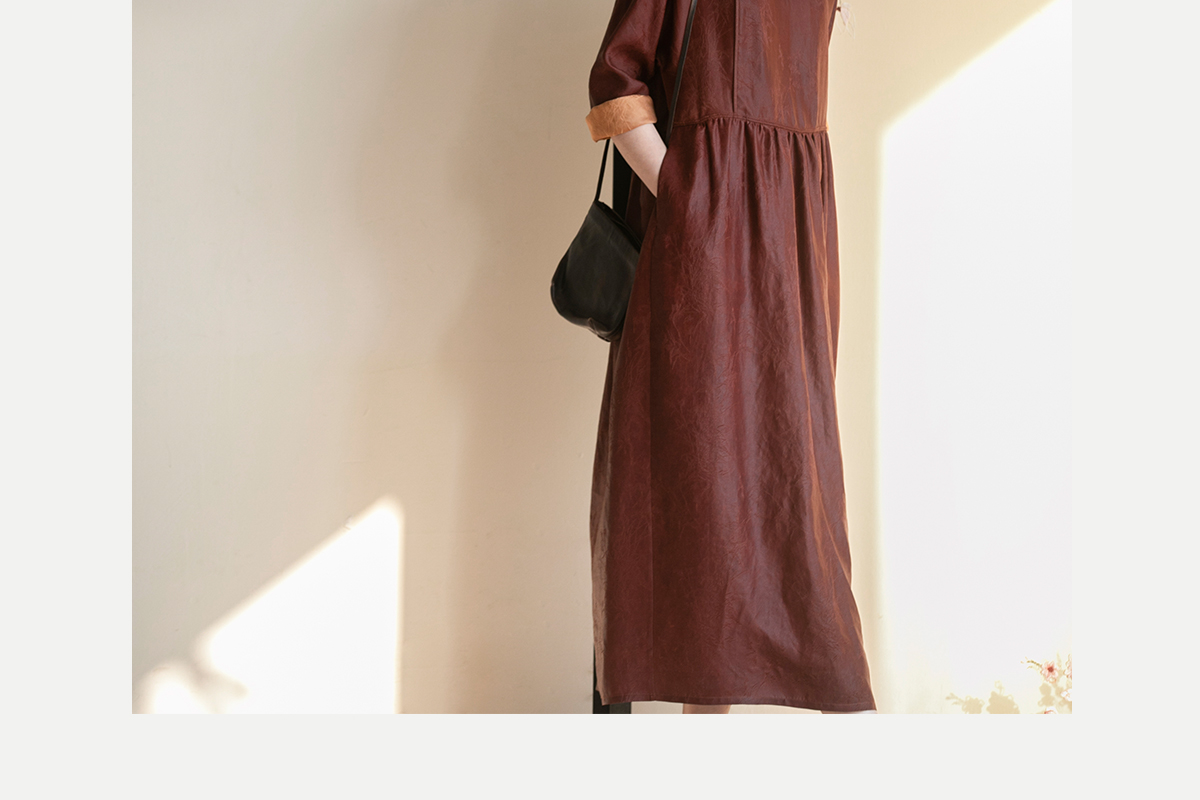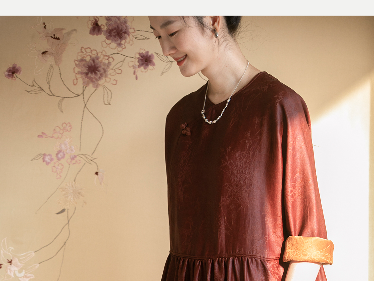 牧衣游原创 26姆米提花香云纱连衣裙新款宽松复古东方长裙 晚莺