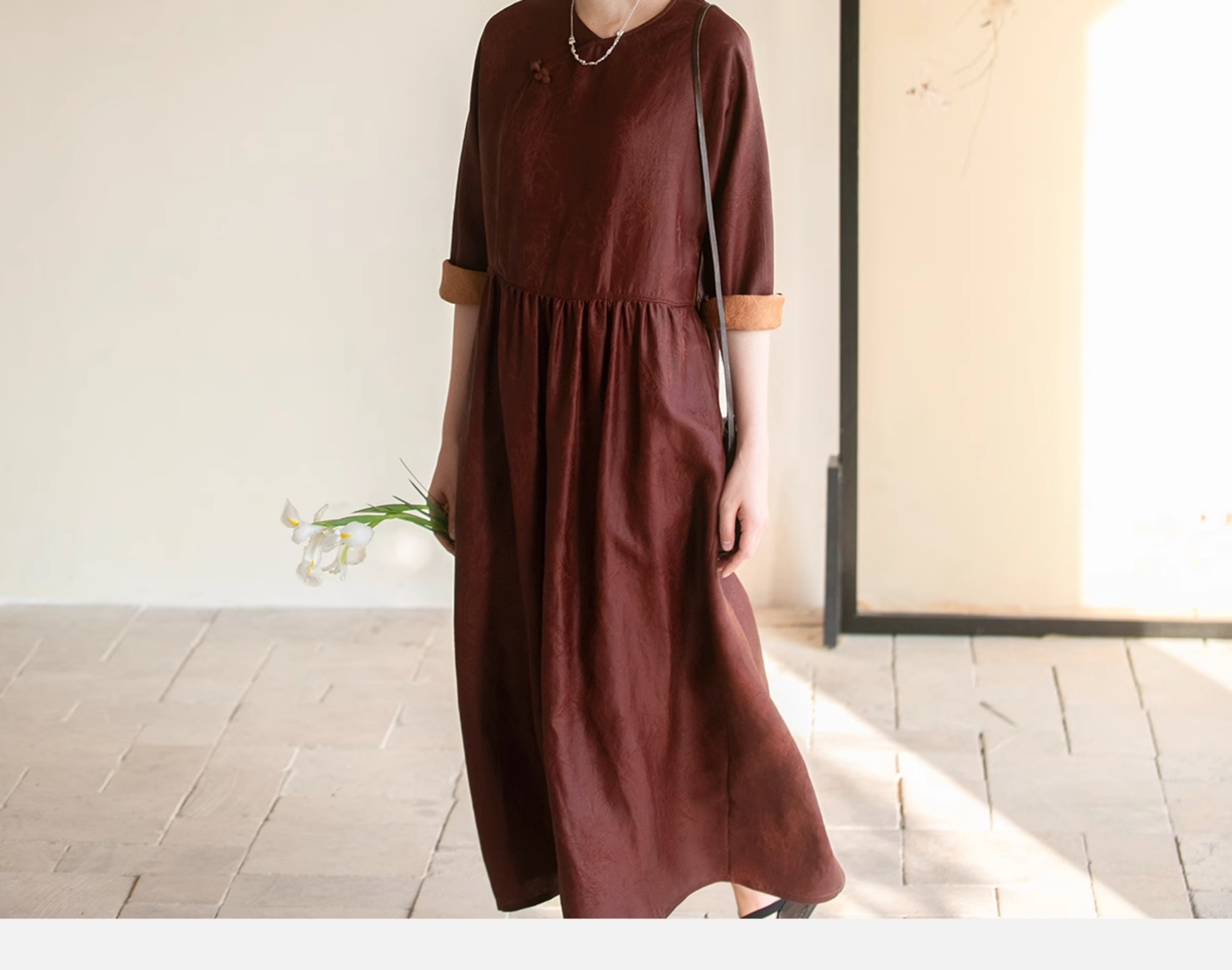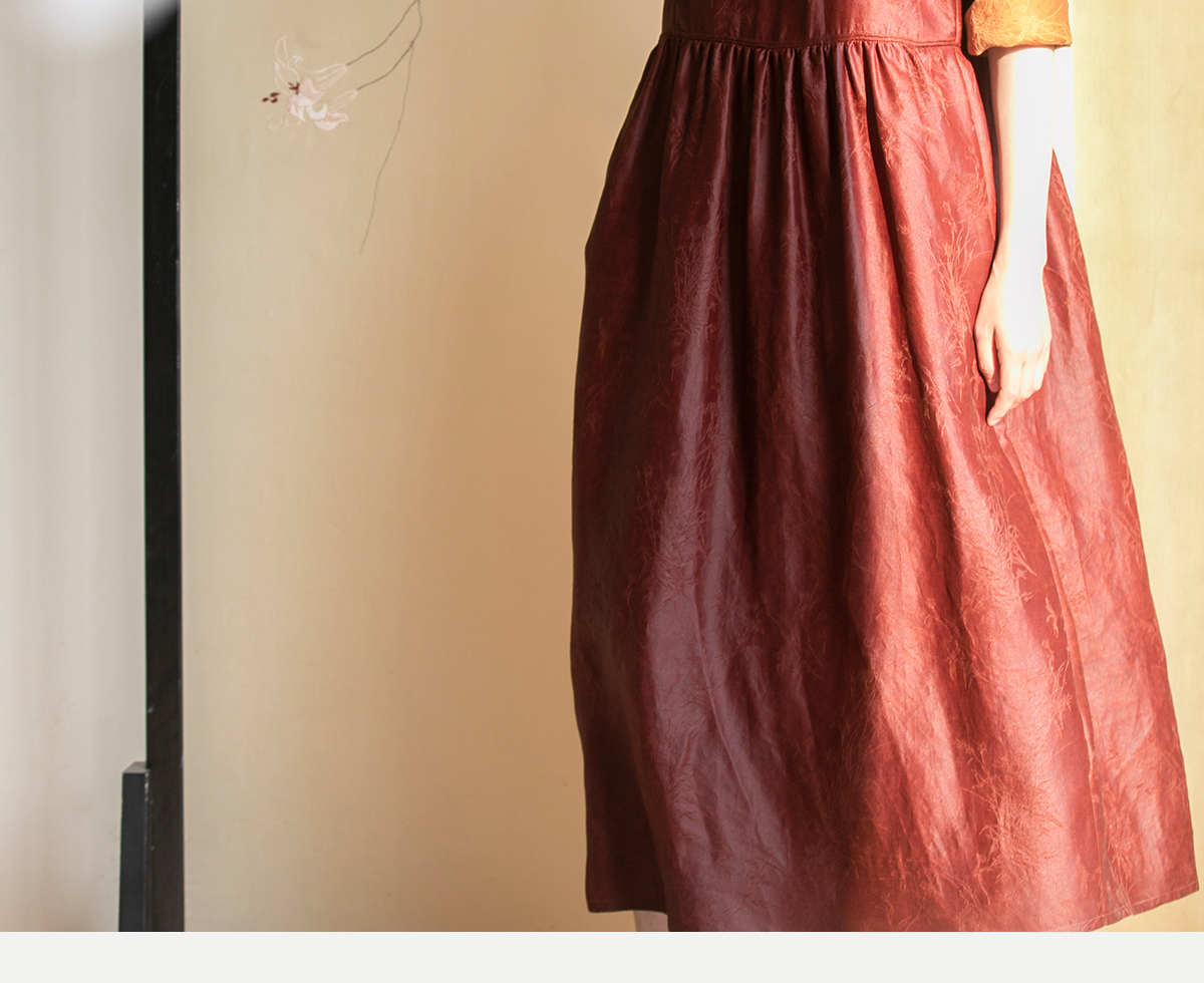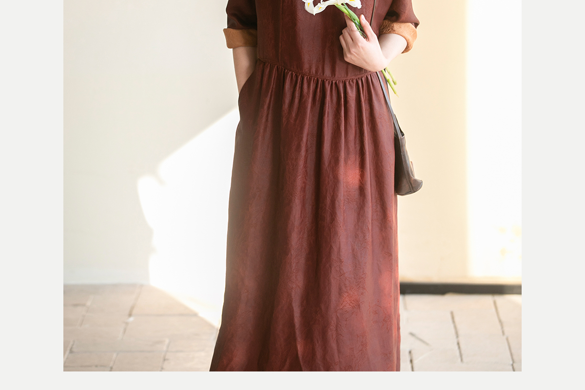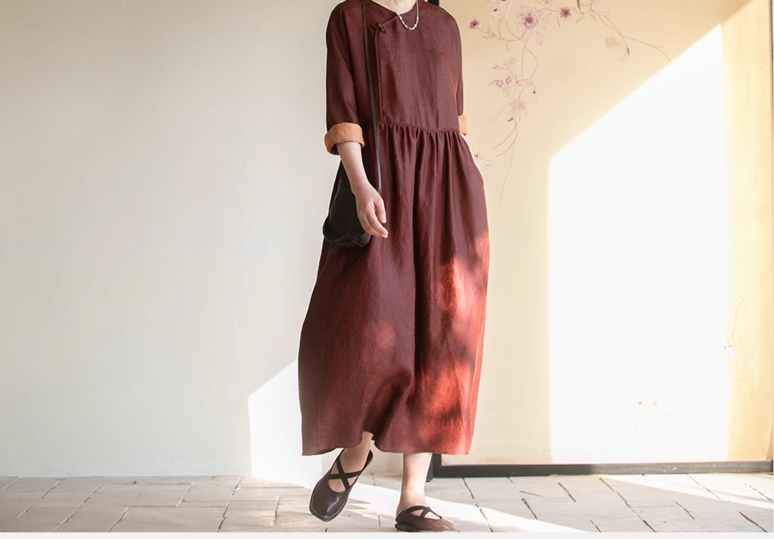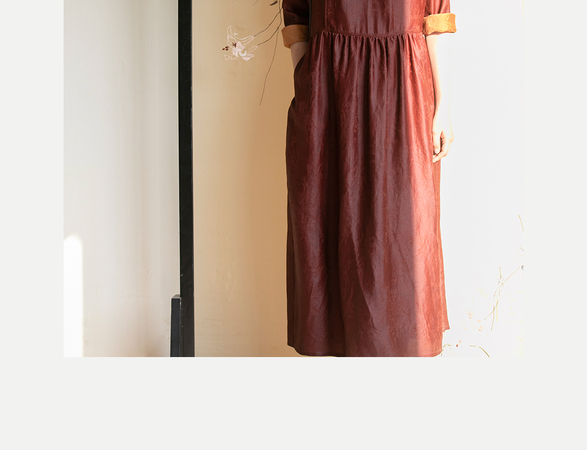 牧衣游原创 26姆米提花香云纱连衣裙新款宽松复古东方长裙 晚莺