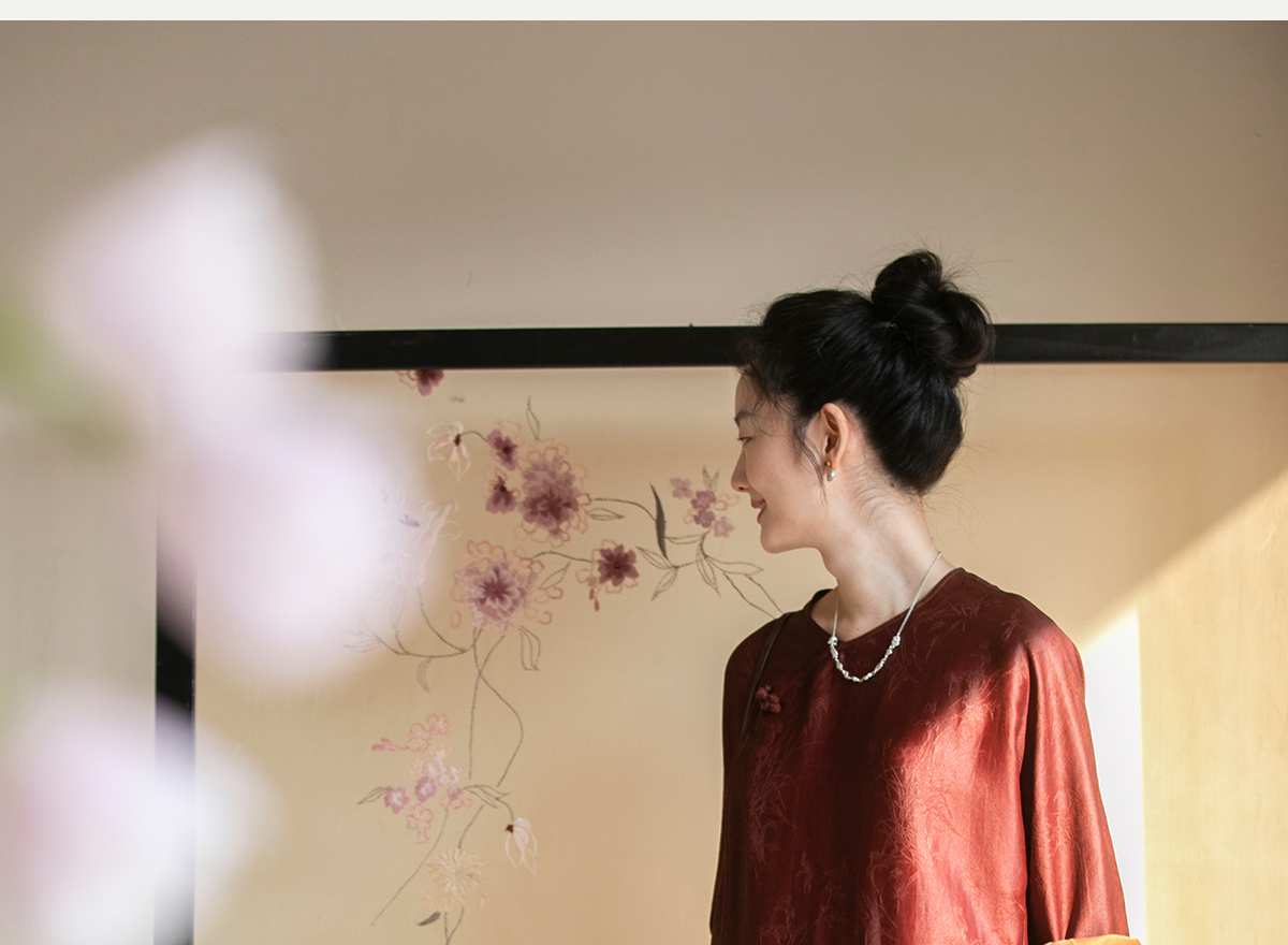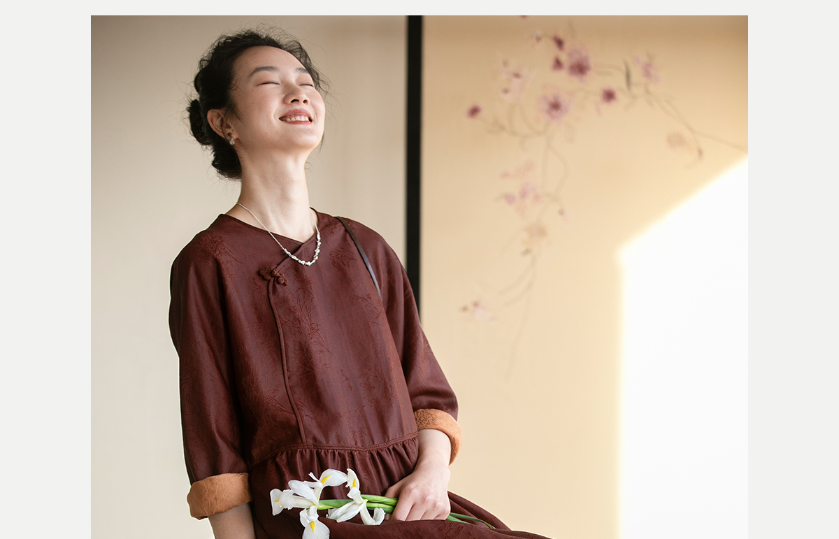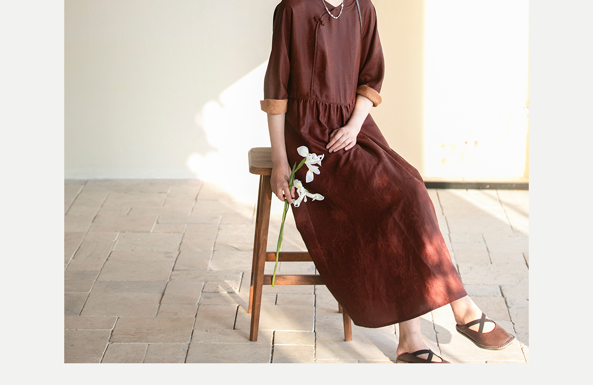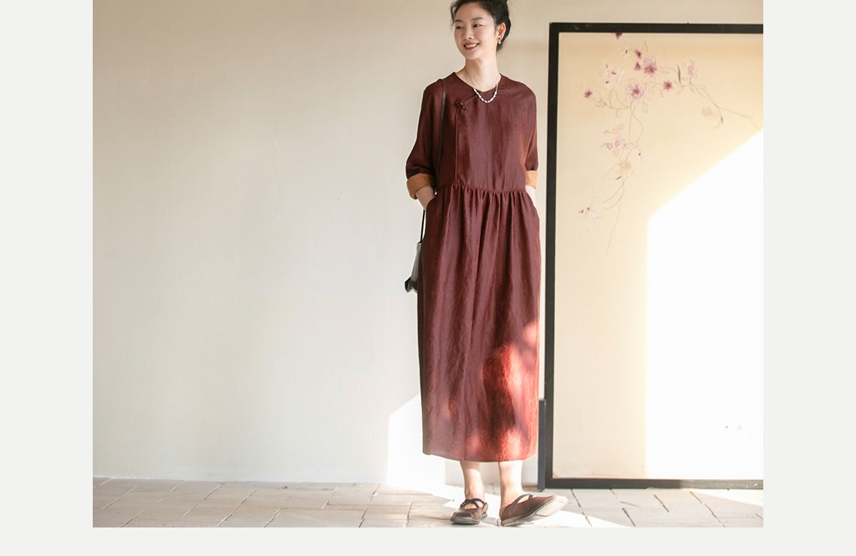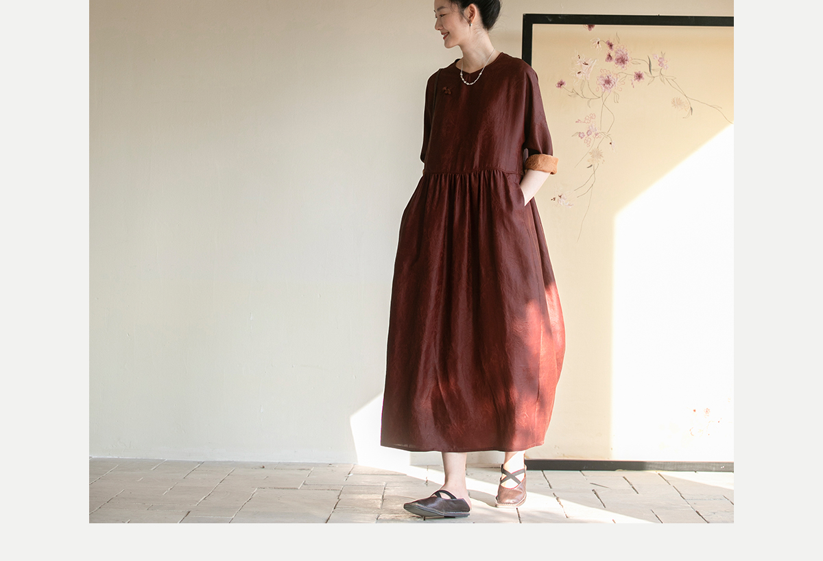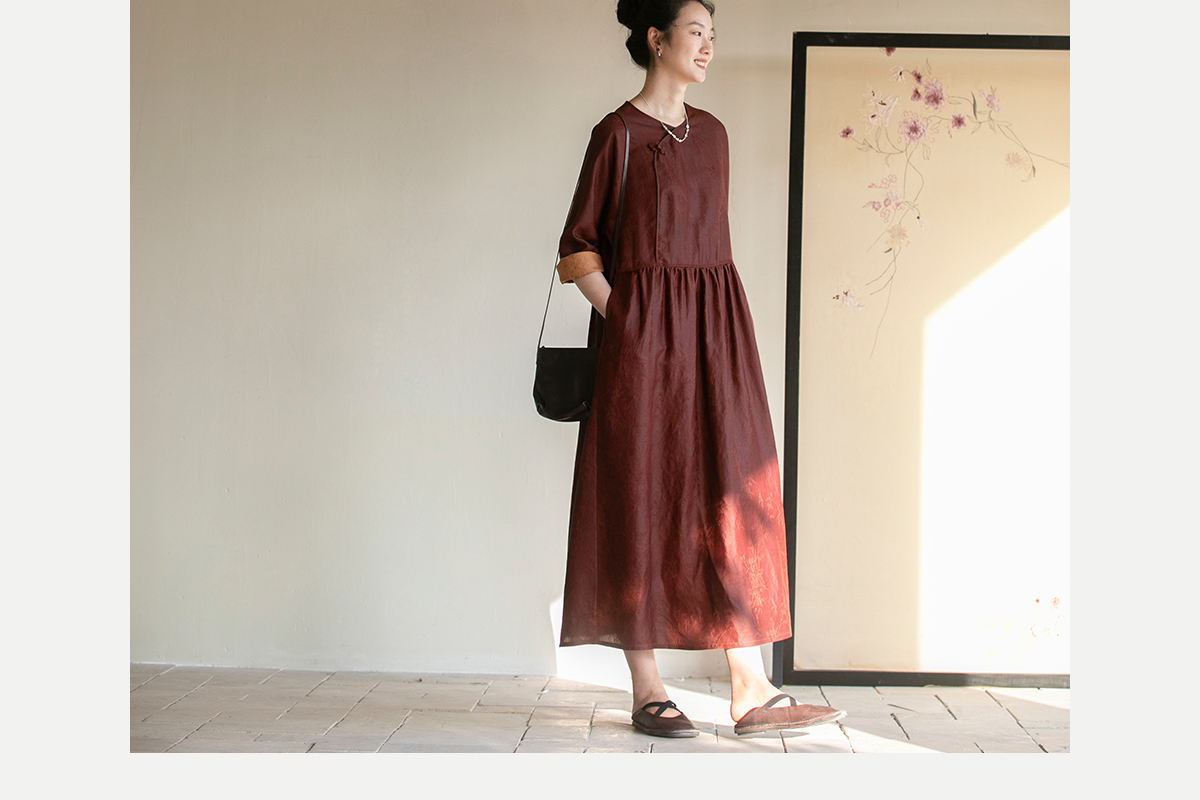 牧衣游原创 26姆米提花香云纱连衣裙新款宽松复古东方长裙 晚莺