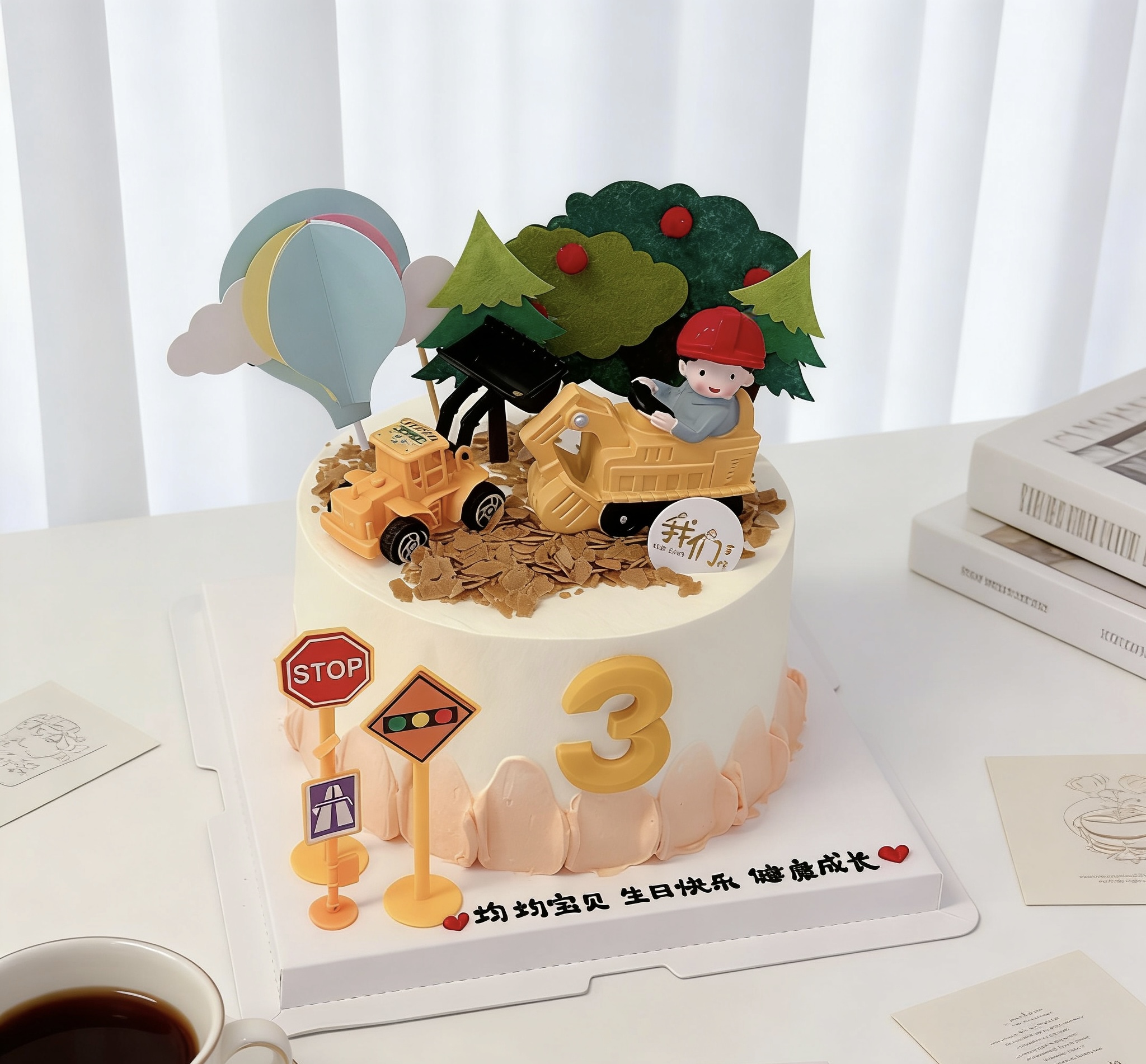 挖掘机工程车蛋糕(下单备注年龄)-低糖处理无添加