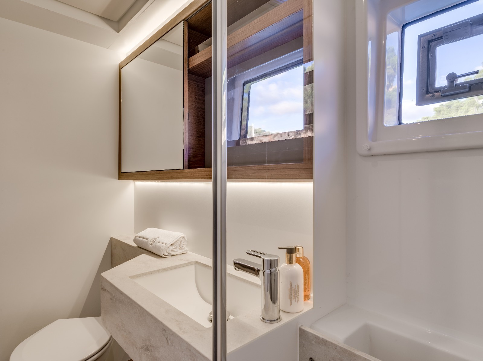 3、大量的自然光线充满了整个船舱,客舱拥有全景视野的玻璃窗,即使在浴室和卫生间,也设有大型船体舷窗,即使在不好的天气情况下,也能让客人在海上感到舒适