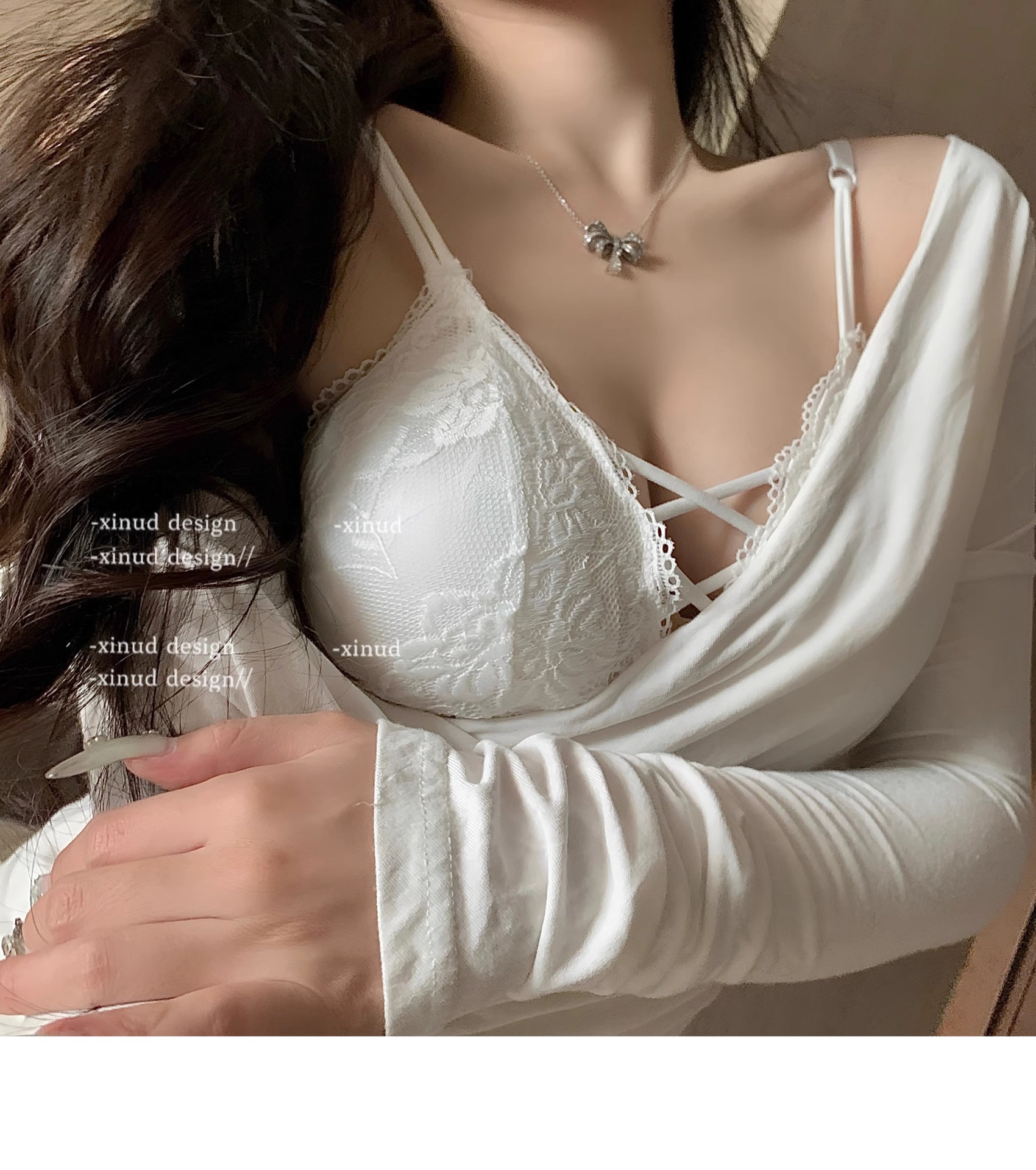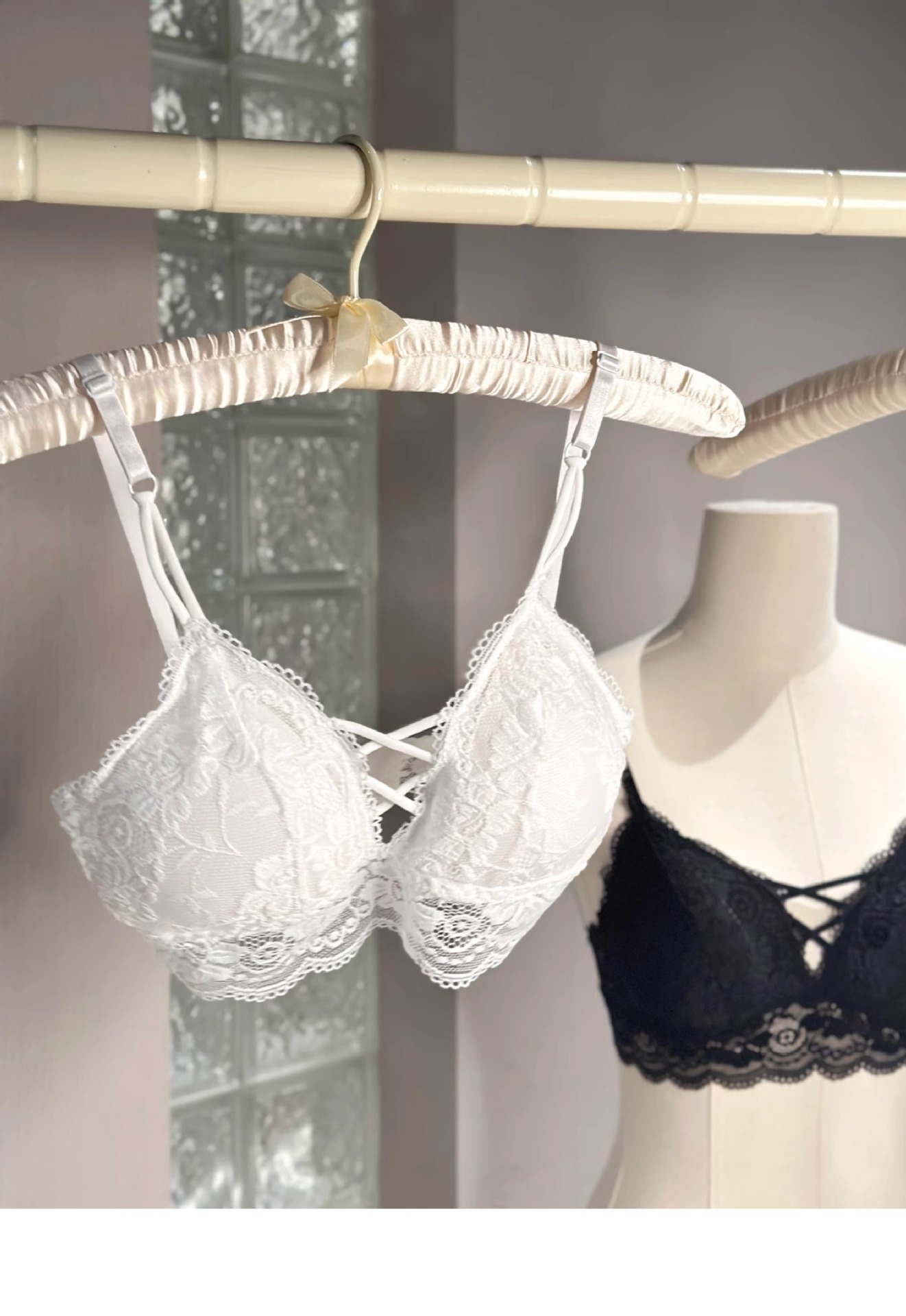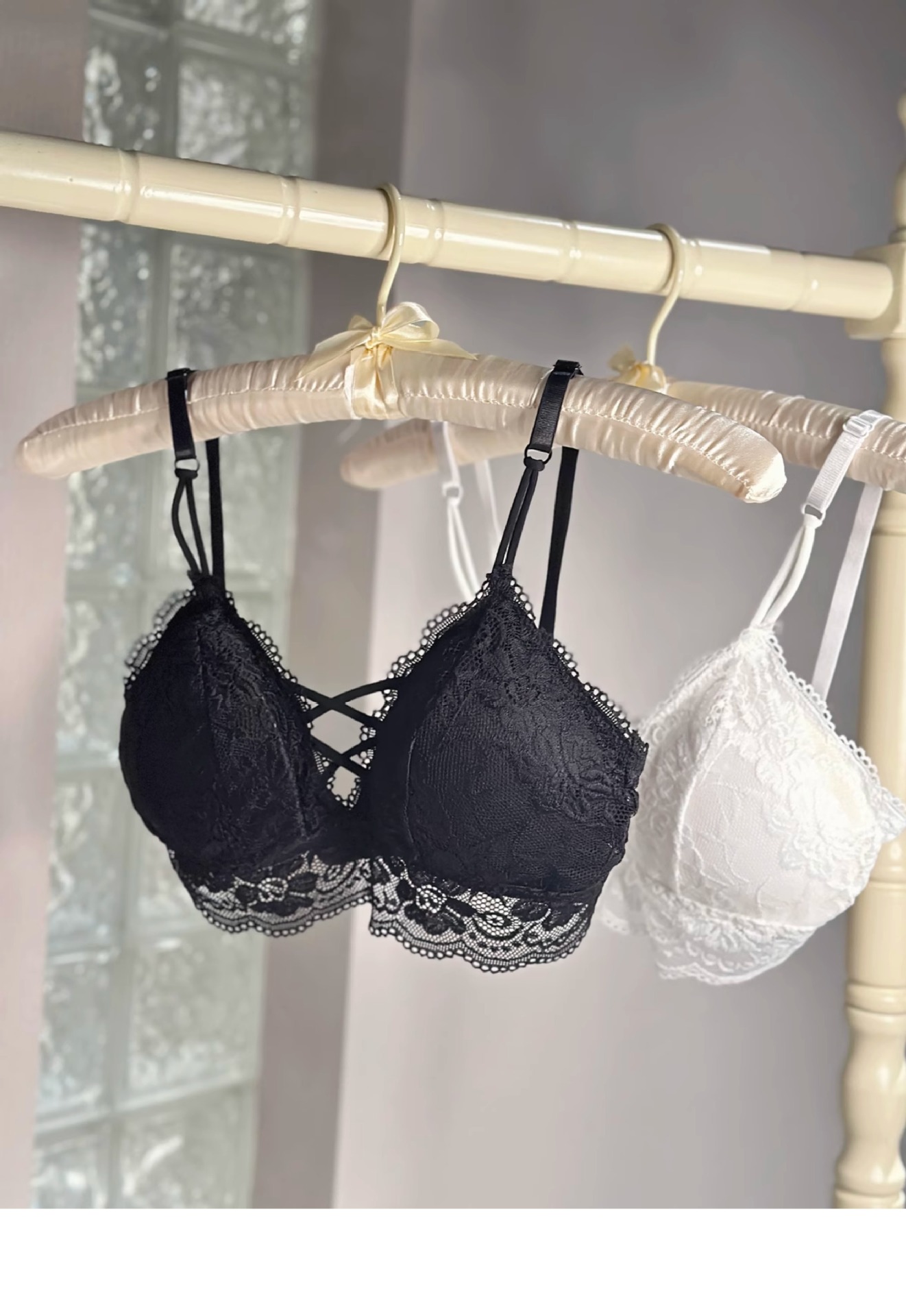 蕾丝性感美背交叉裹胸吊带打底背心无钢圈文胸聚拢带胸垫抹胸内衣