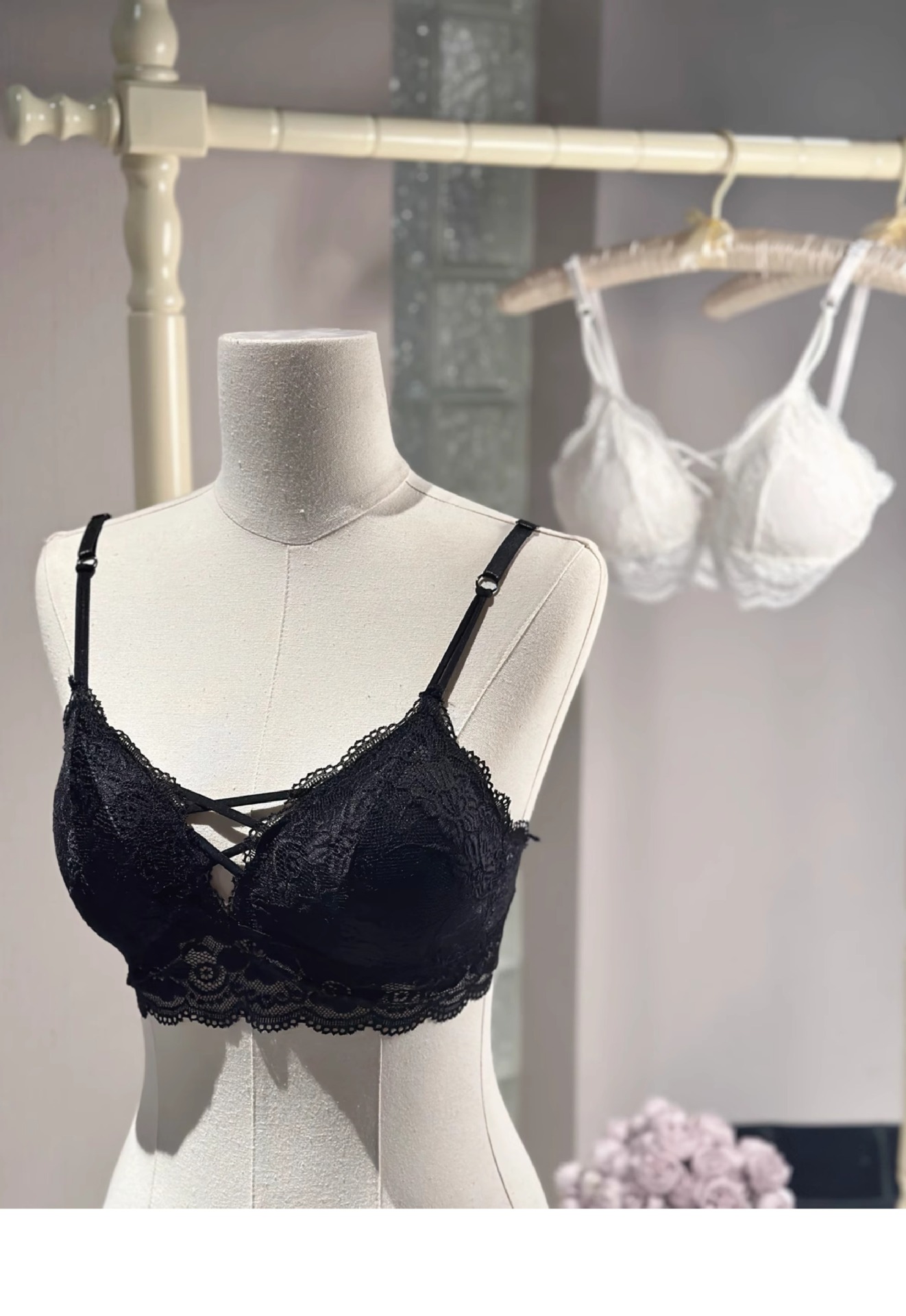 纯欲撩人轻奢内衣女小胸聚拢收副乳防下垂蕾丝纯欲内衣少女无钢圈聚拢文胸