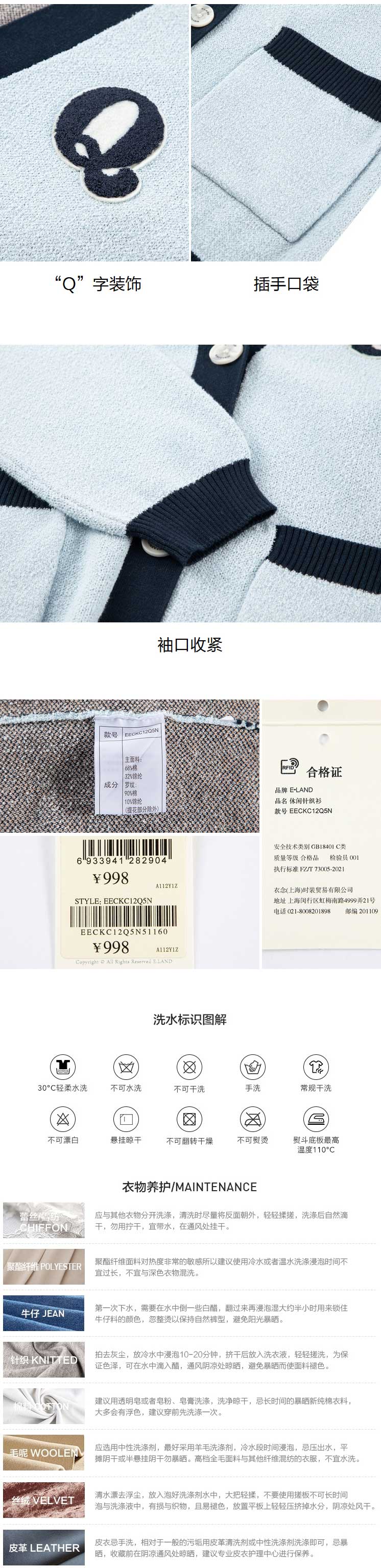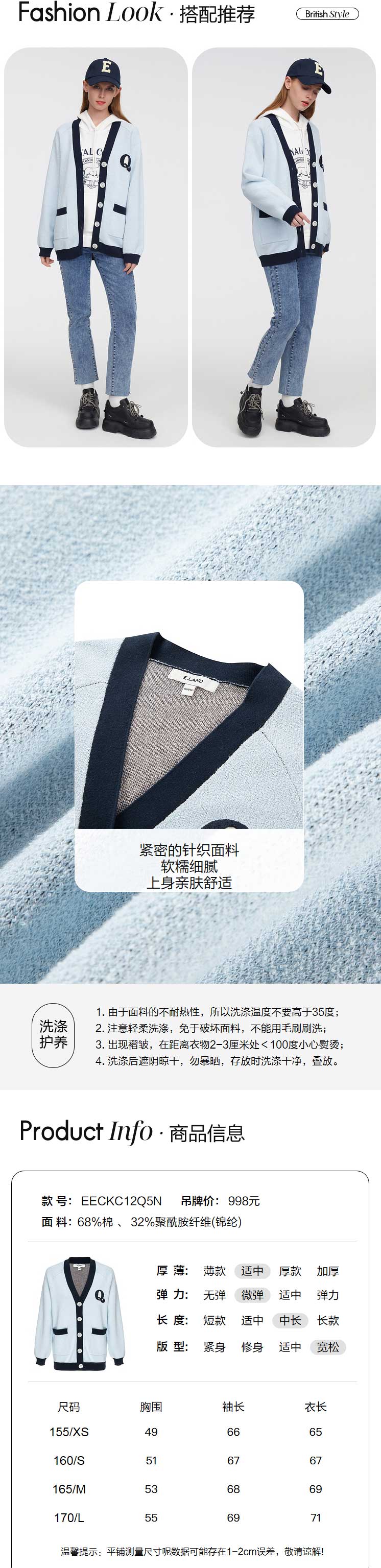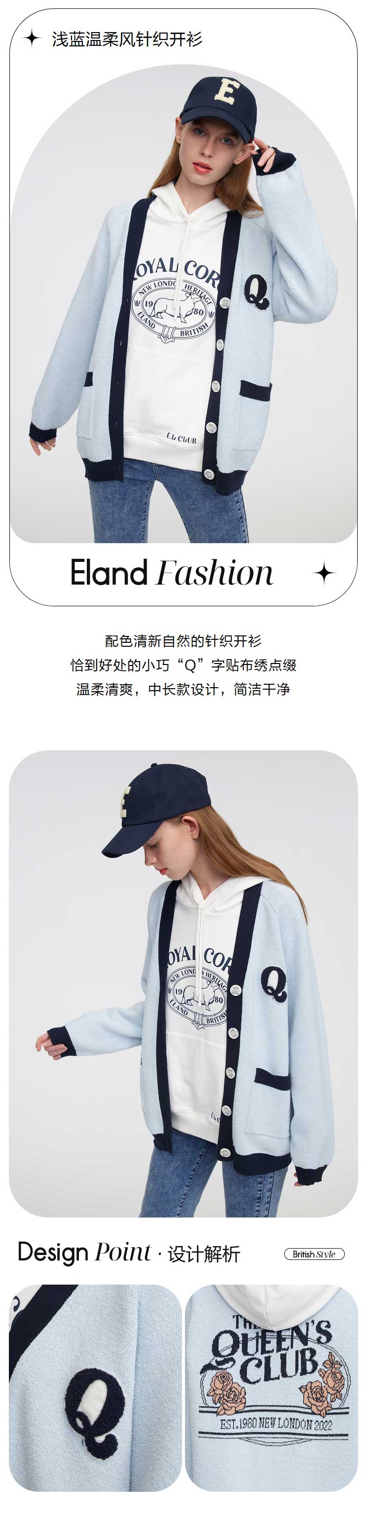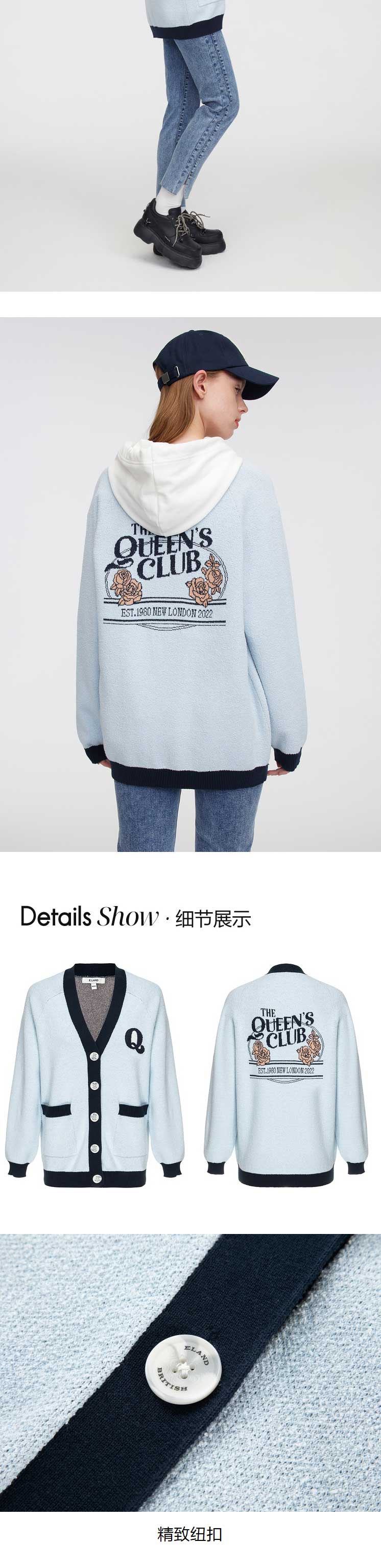 ELAND衣恋2022年春季新款设计感玫瑰花宽松针织衫开衫上衣外套女EECKC12Q5N