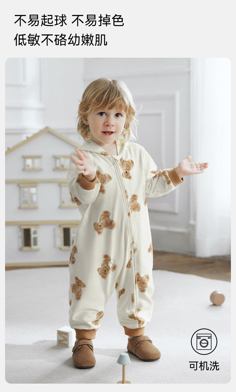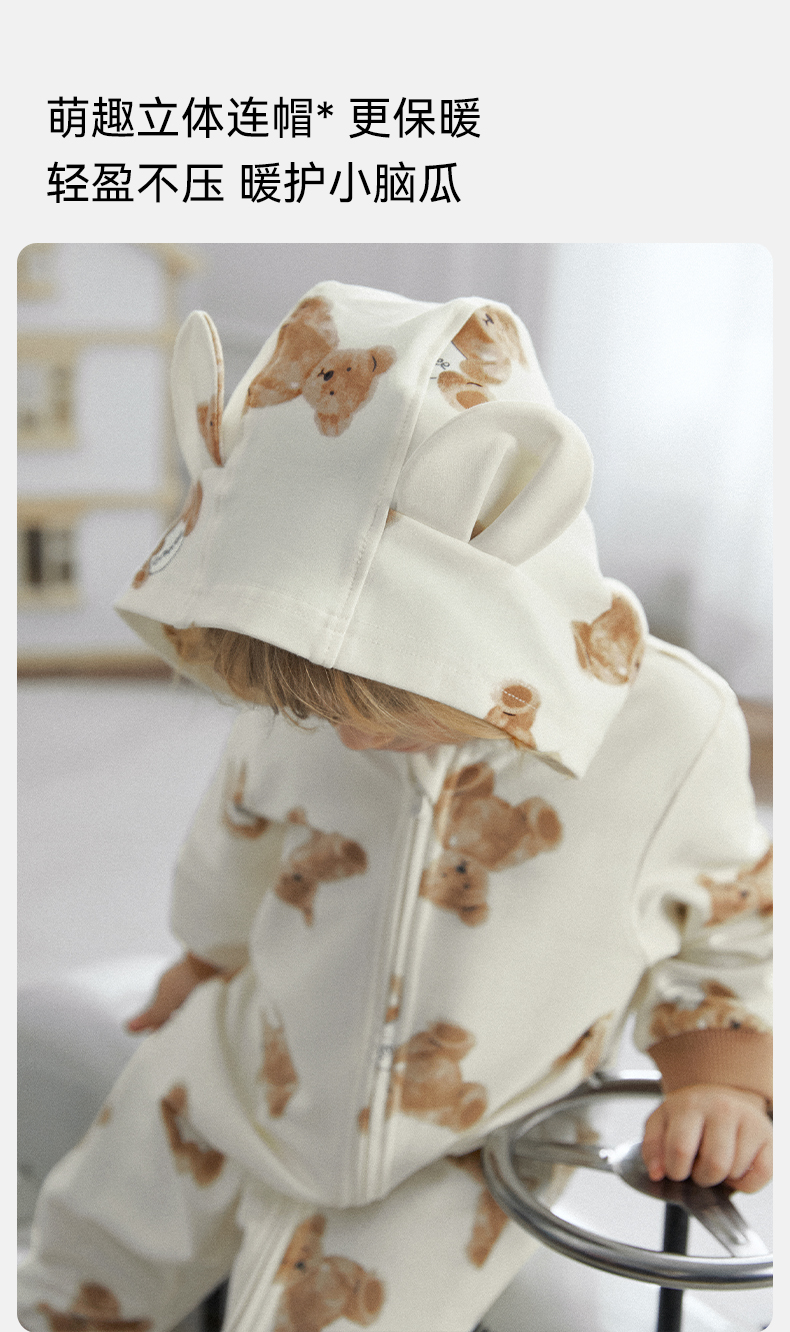 【新客福利】嫚熙婴儿连体衣连帽卫衣宝宝长袖外出服新生儿爬服