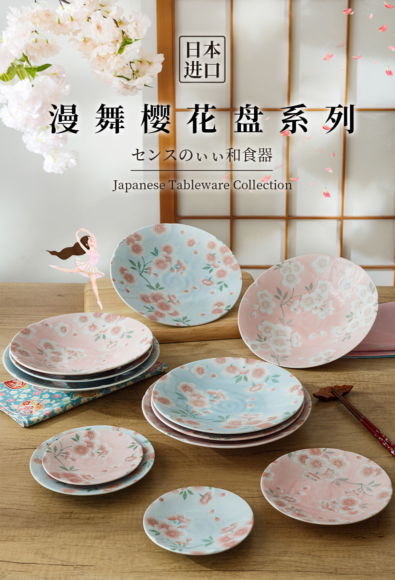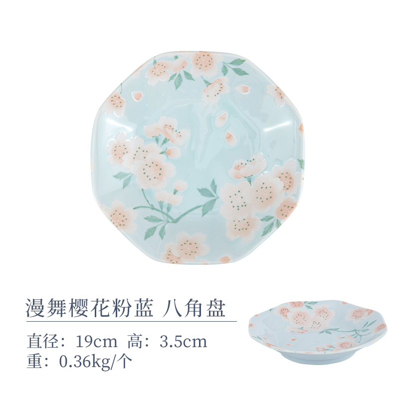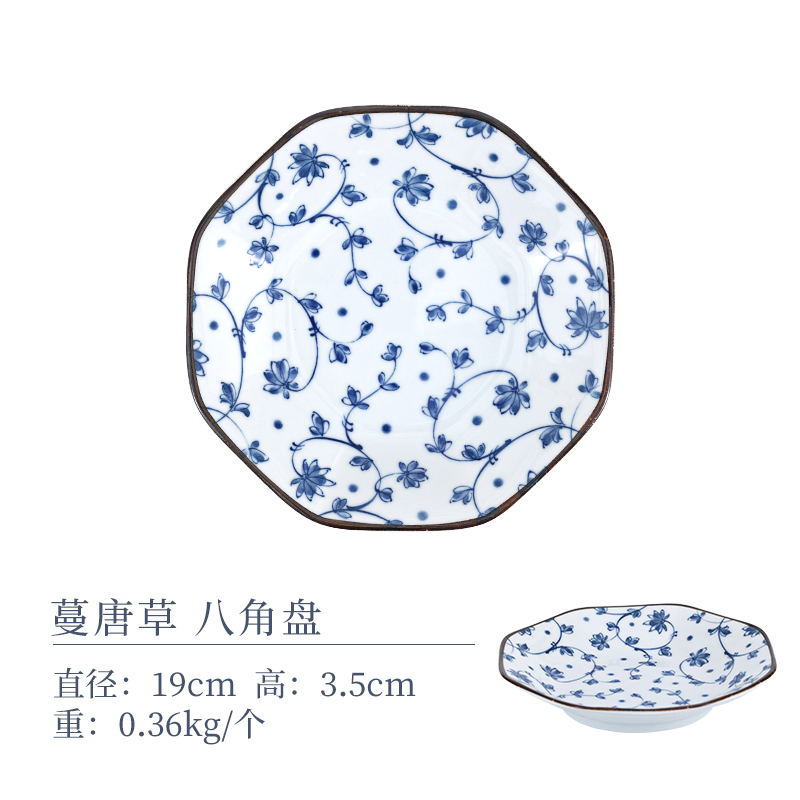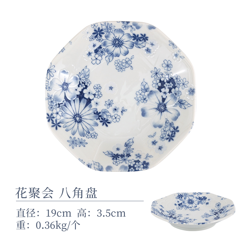 【特惠6折,无货退款】日本进口有古窑日式釉下彩陶瓷盘子花集圆盘套装家用菜盘餐盘餐具有古窯八角盘4盘套装