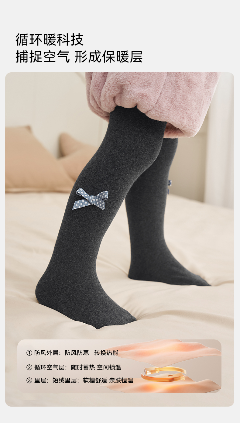 【婴童服配】嫚熙连裤袜子加绒加厚秋冬宝宝棉袜不吊裆女童打底裤袜