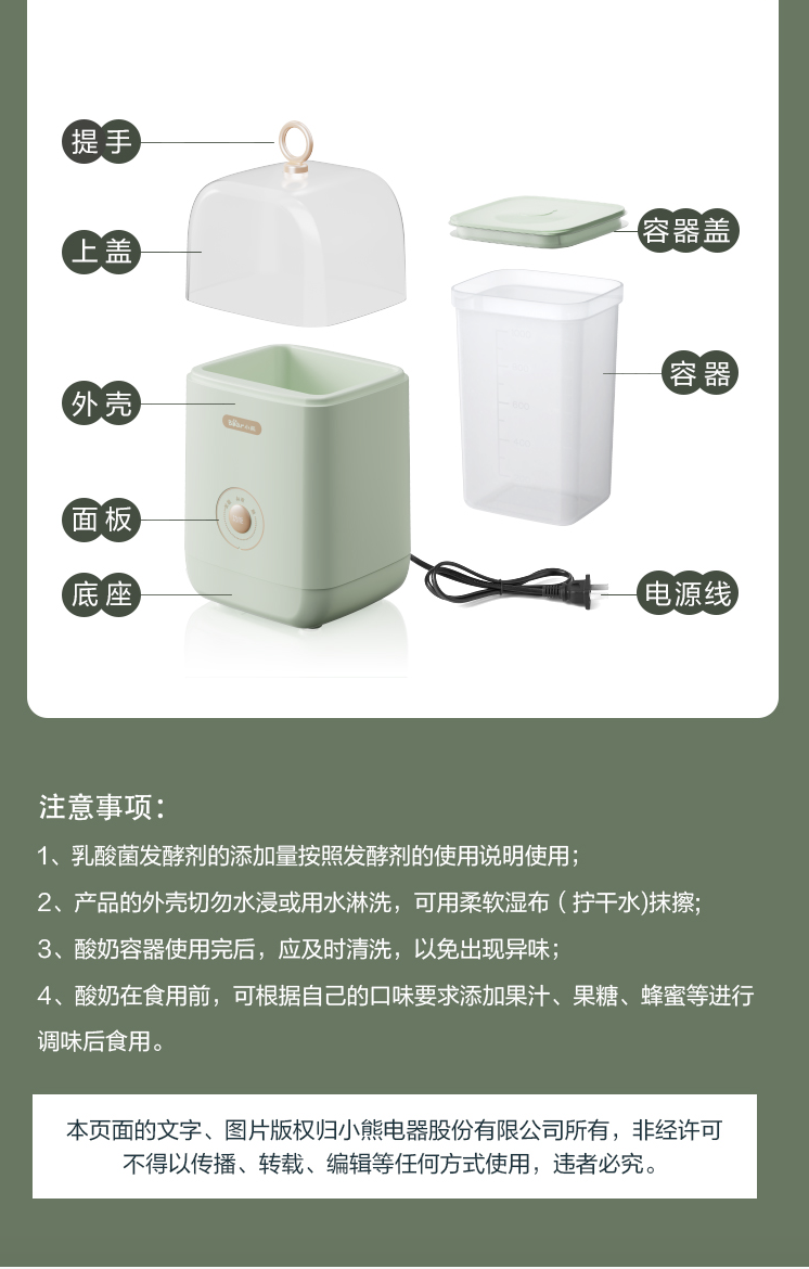 小熊(Bear) 酸奶机 家用全自动便携式酸度可调恒温发热酸奶发酵机 SNJ-C12S3
