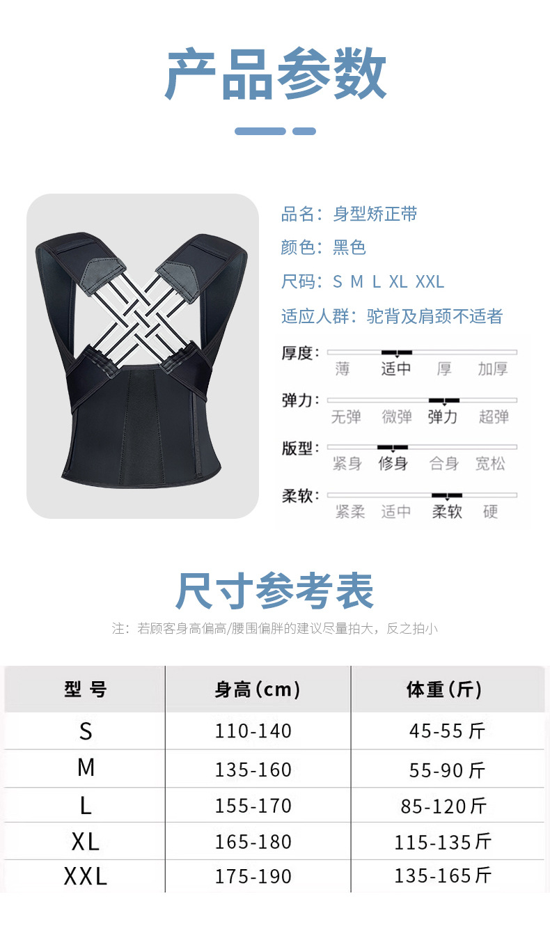 专业防护姿势矫正带背部矫姿带防低头纠正成人背部支撑矫正神器
