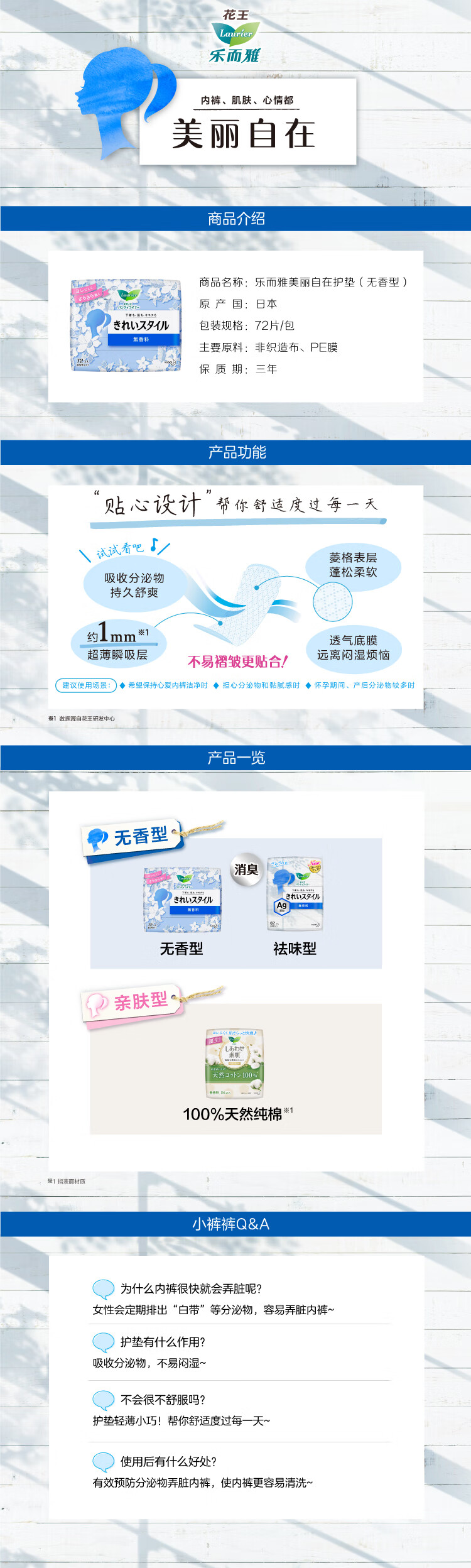 乐而雅美丽自护垫14cm 72片(无香)/包