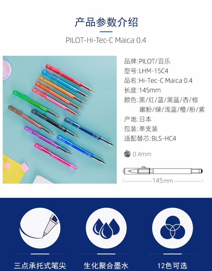 PILOT/百乐 LHM-15C4中性笔0.4mm针管式中性笔学生用手账可用