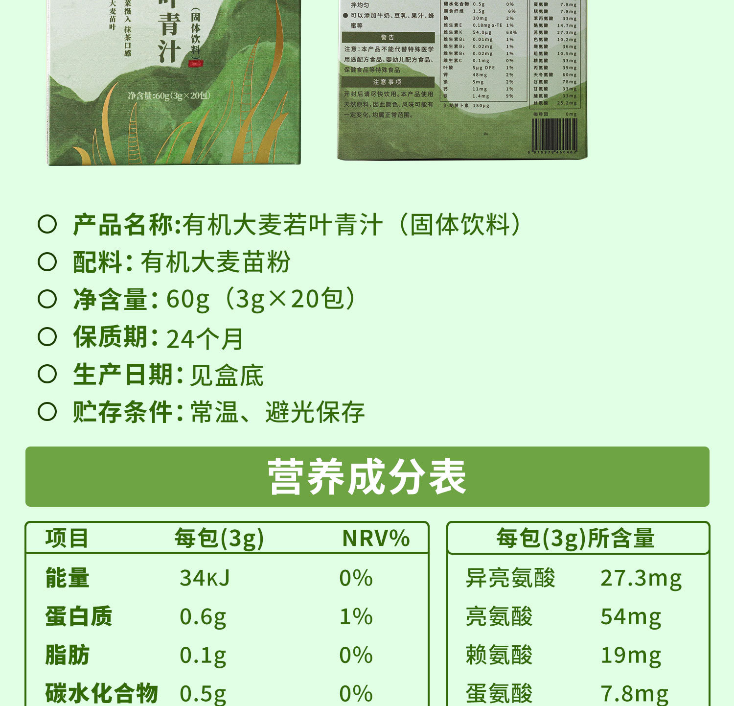 有机大麦若叶青汁60g含20袋(固体饮料)26年6月到期 买三送二