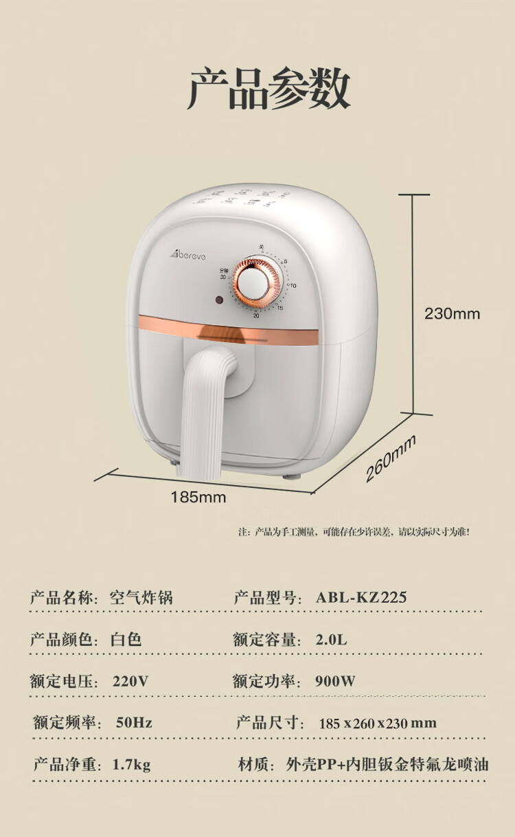【小家电】Abereve 空气炸锅ABL-KZ225 HF