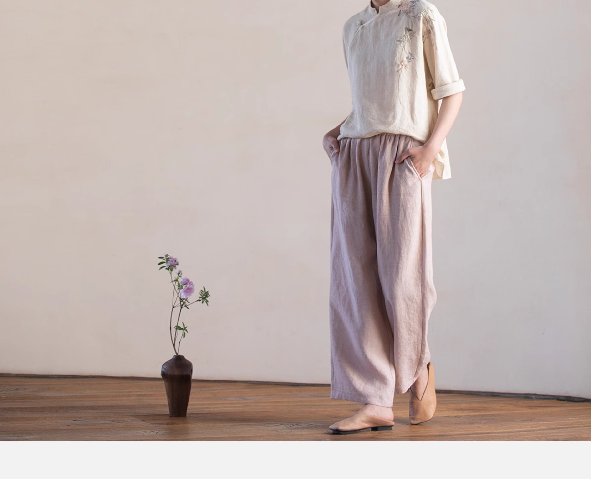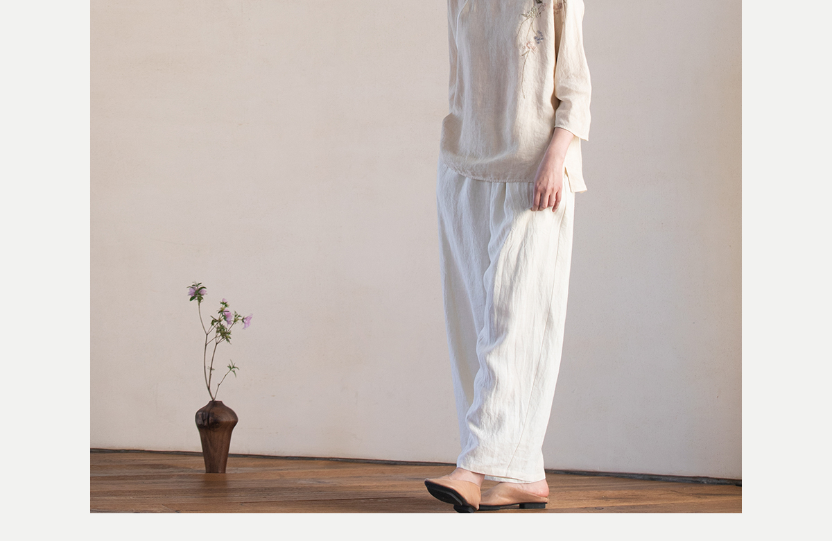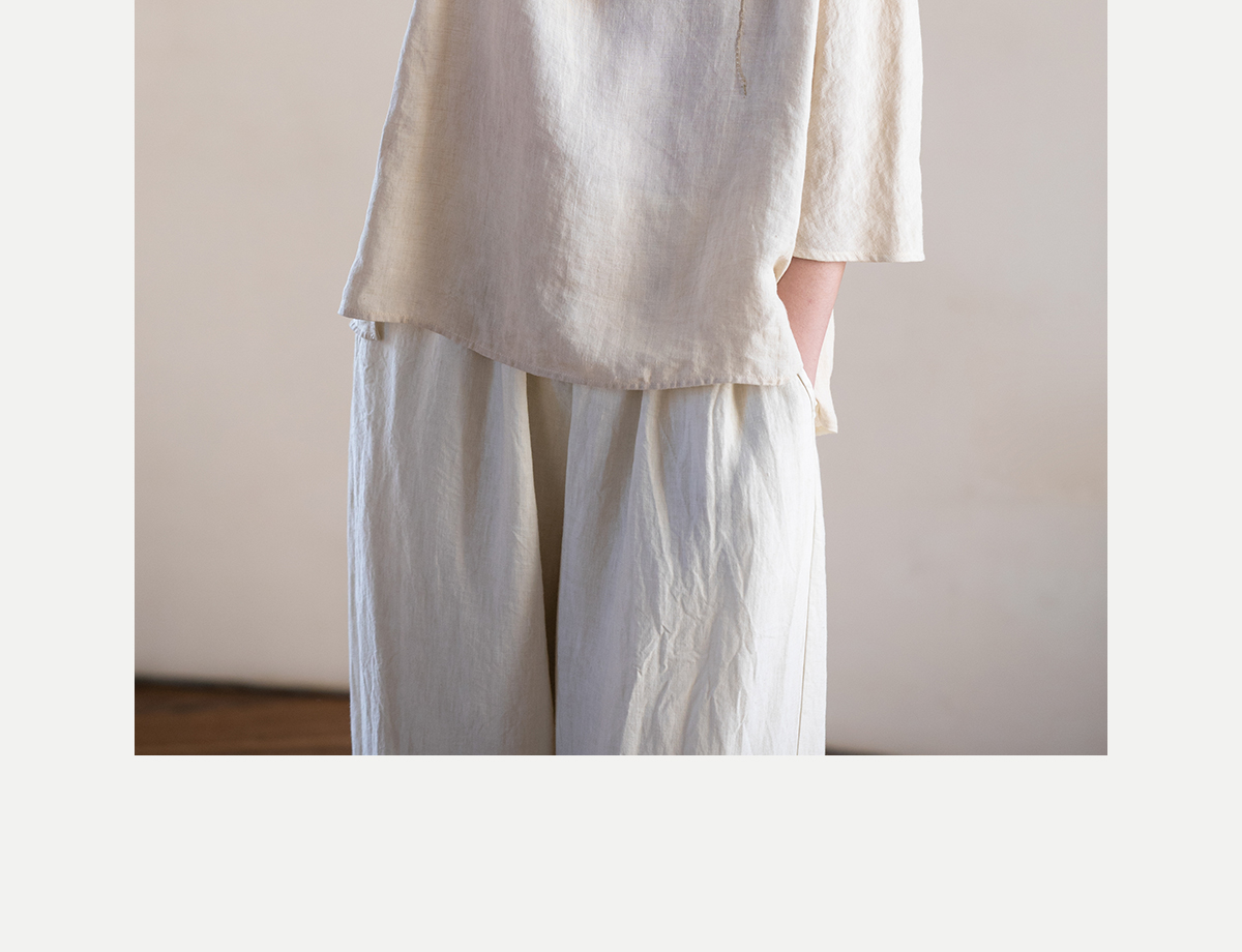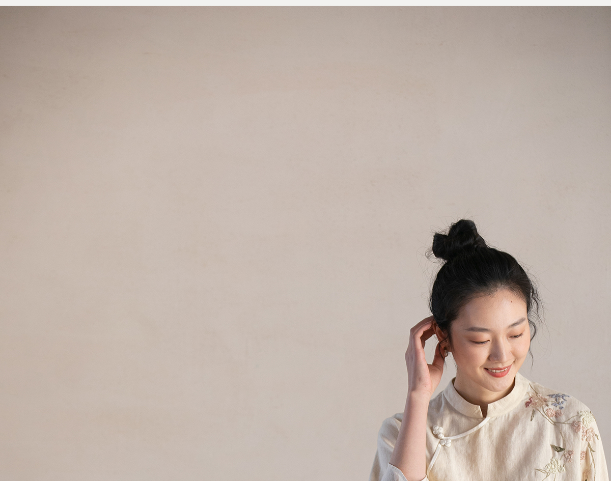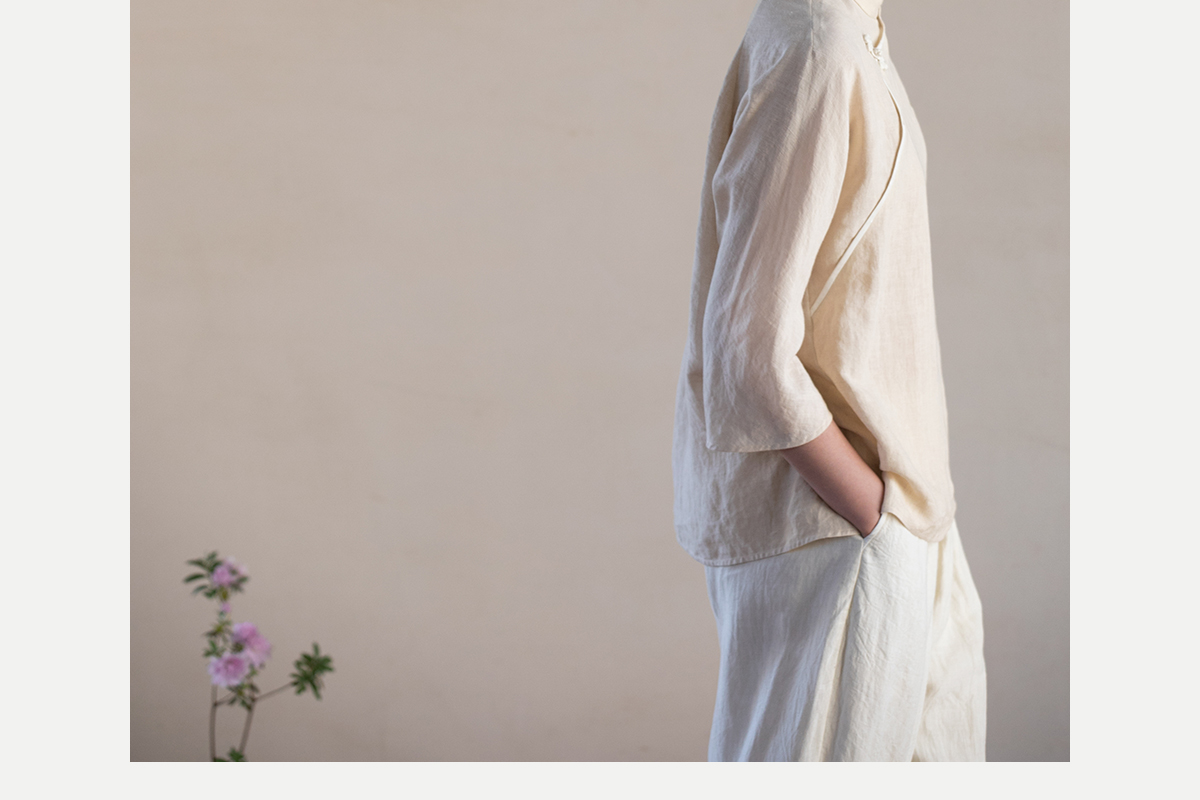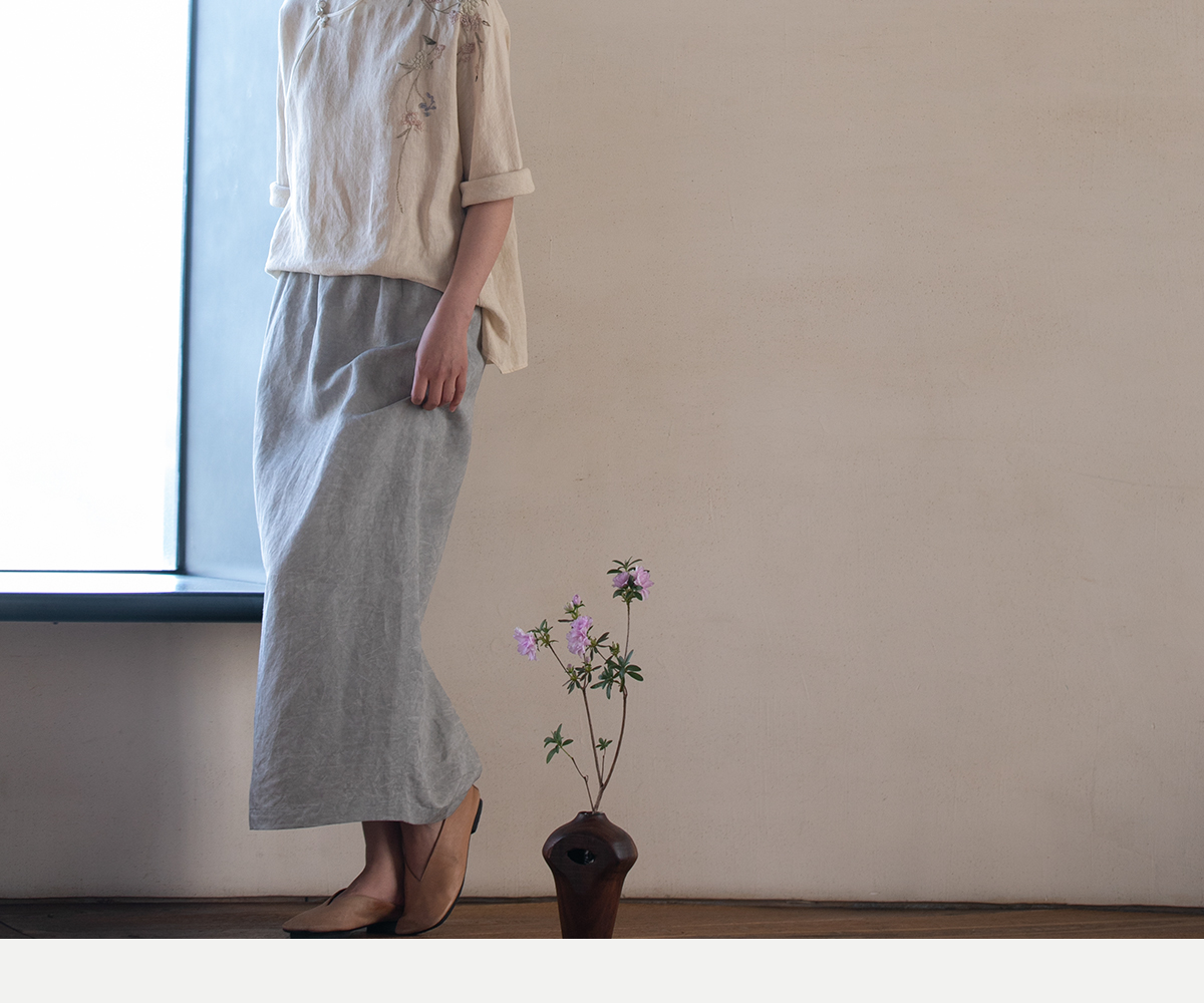 牧衣游原创 手工刺绣汉麻套头衫斜襟圆领七分袖中式上衣 初八弦