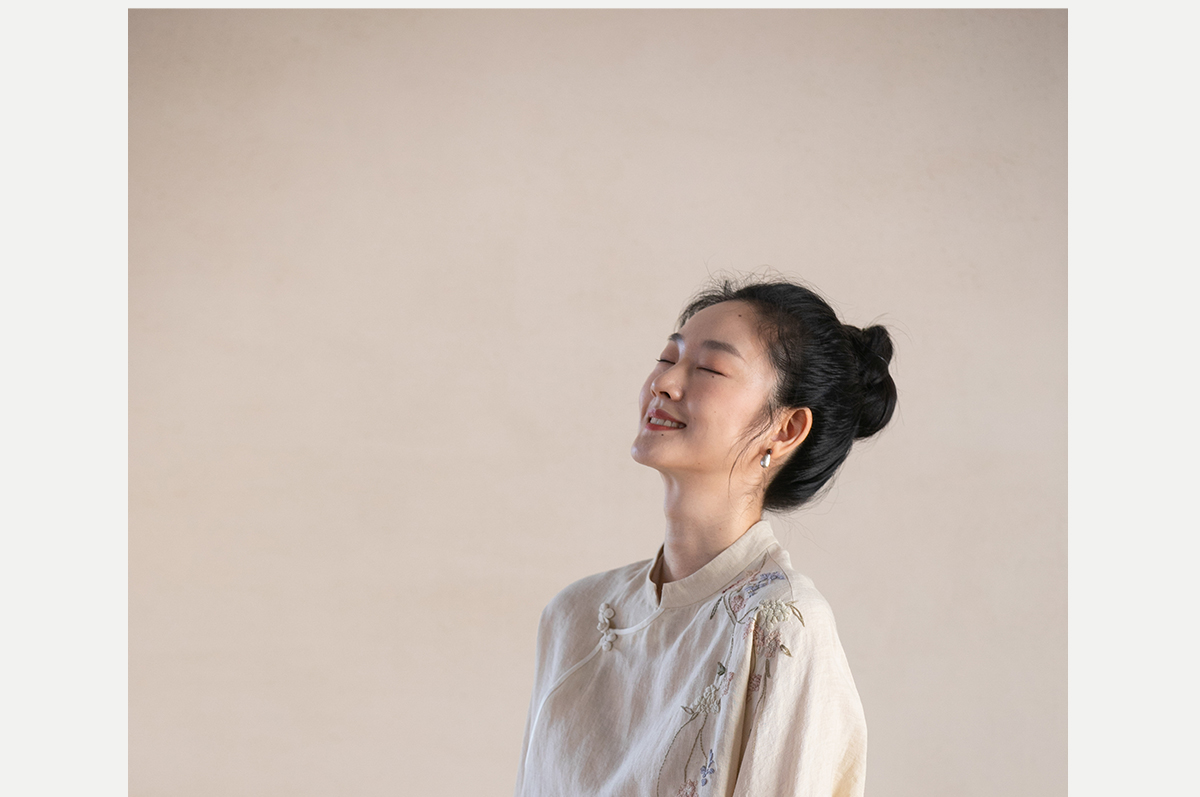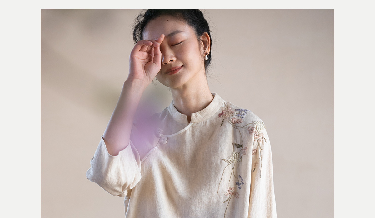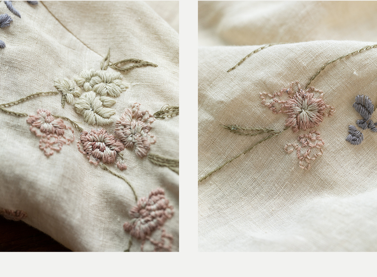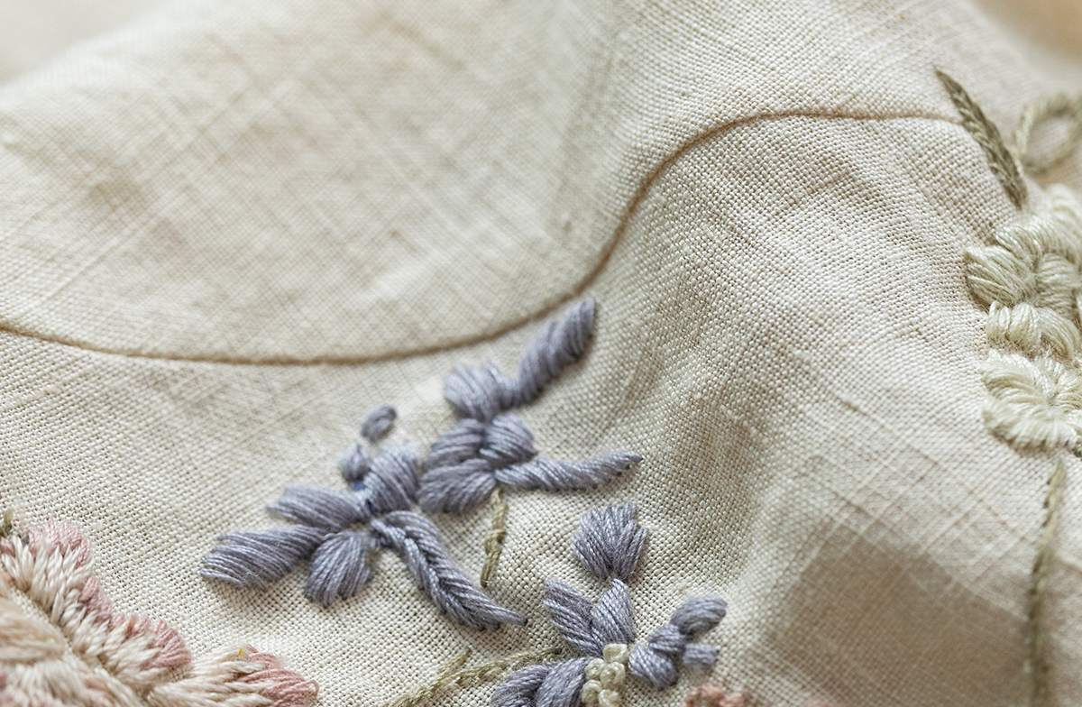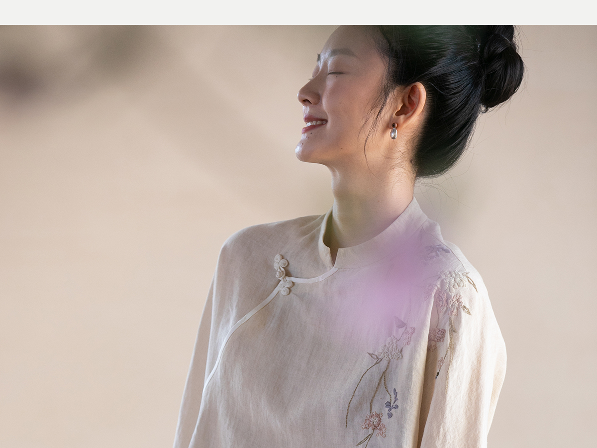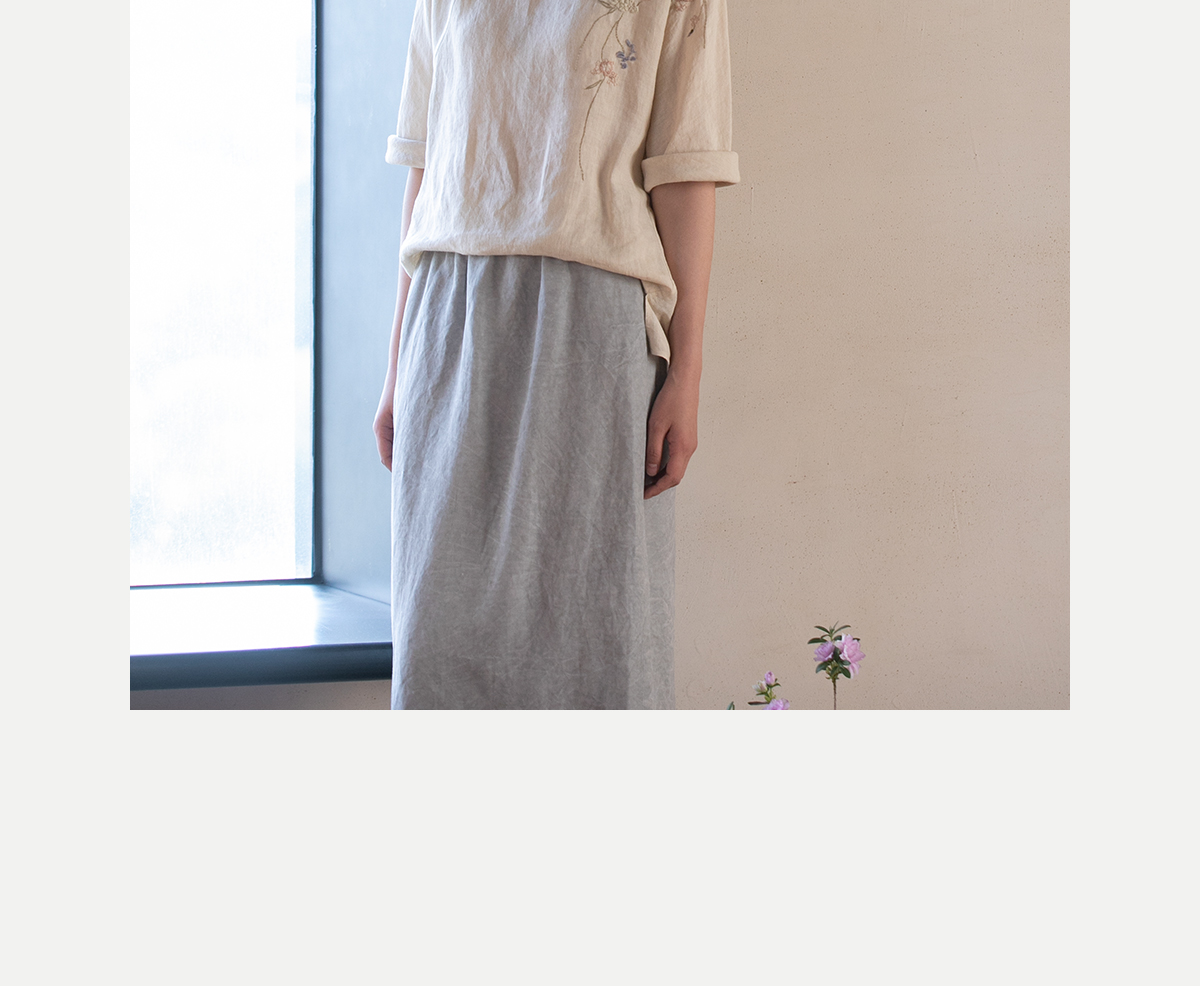 牧衣游原创 手工刺绣汉麻套头衫斜襟圆领七分袖中式上衣 初八弦