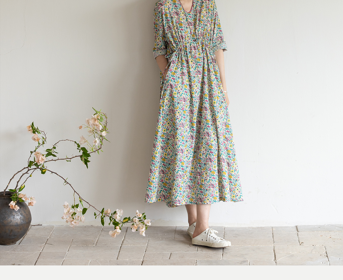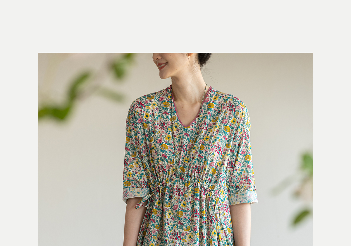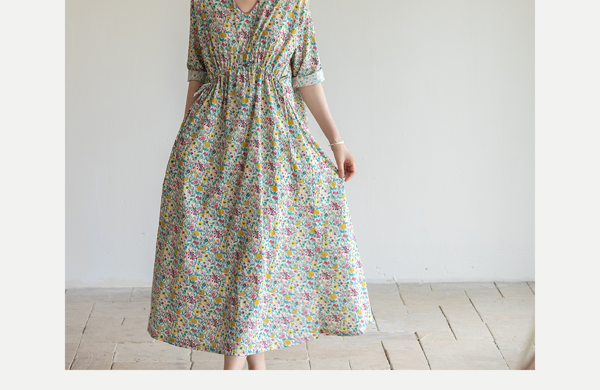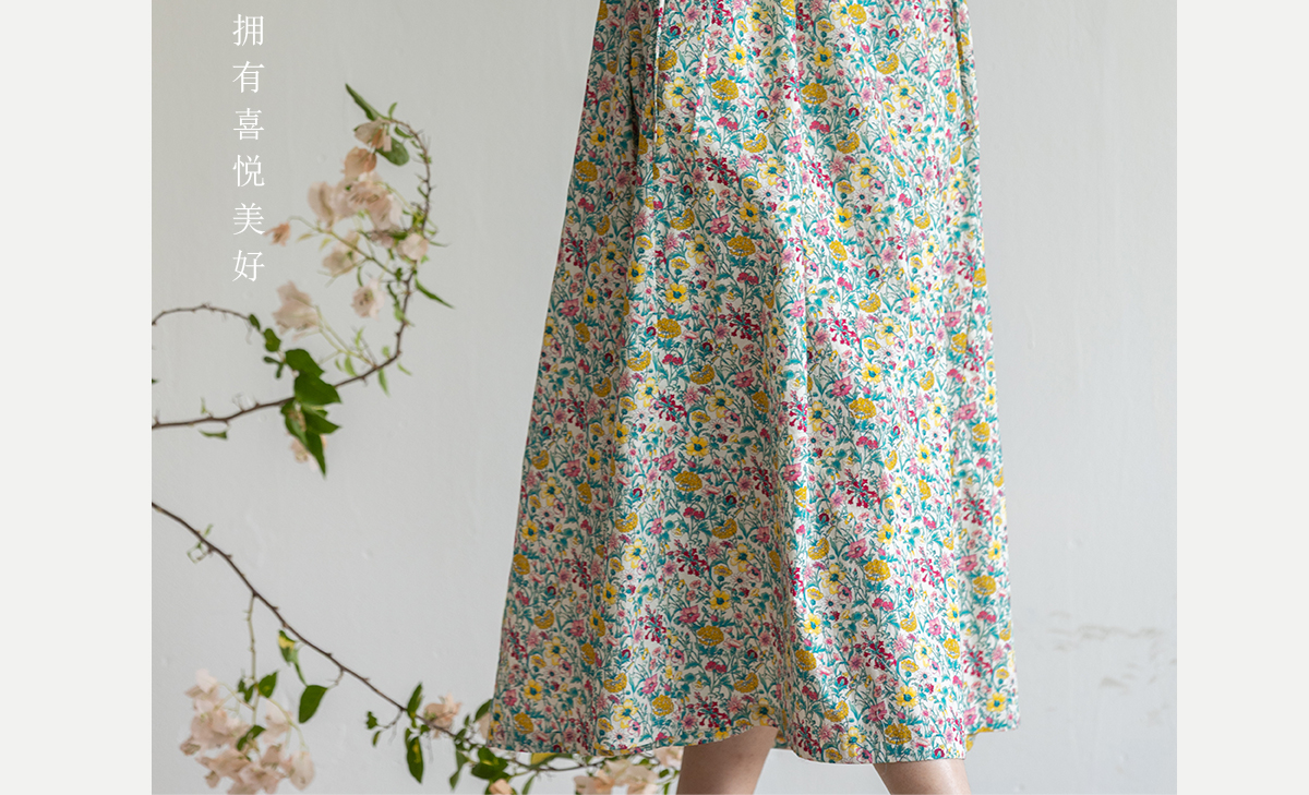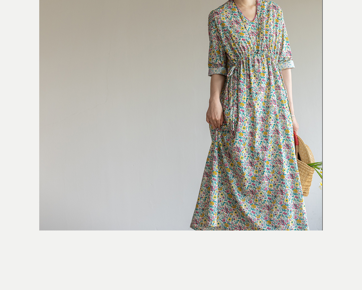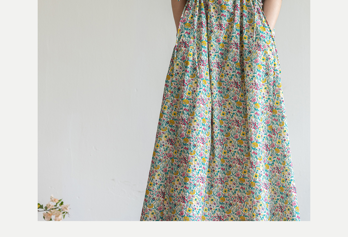 牧衣游原创 小碎花纯棉连衣裙夏日轻薄设计感文艺气质碎花裙 竹青