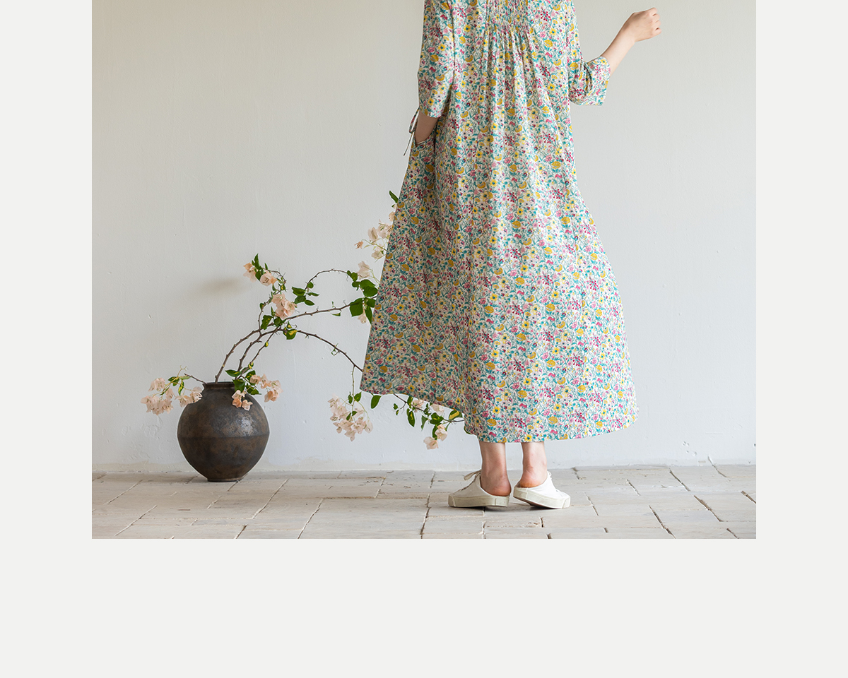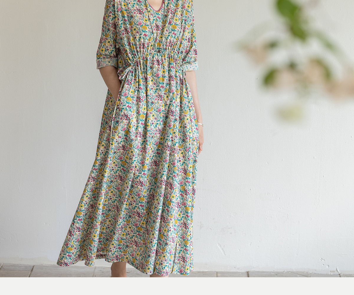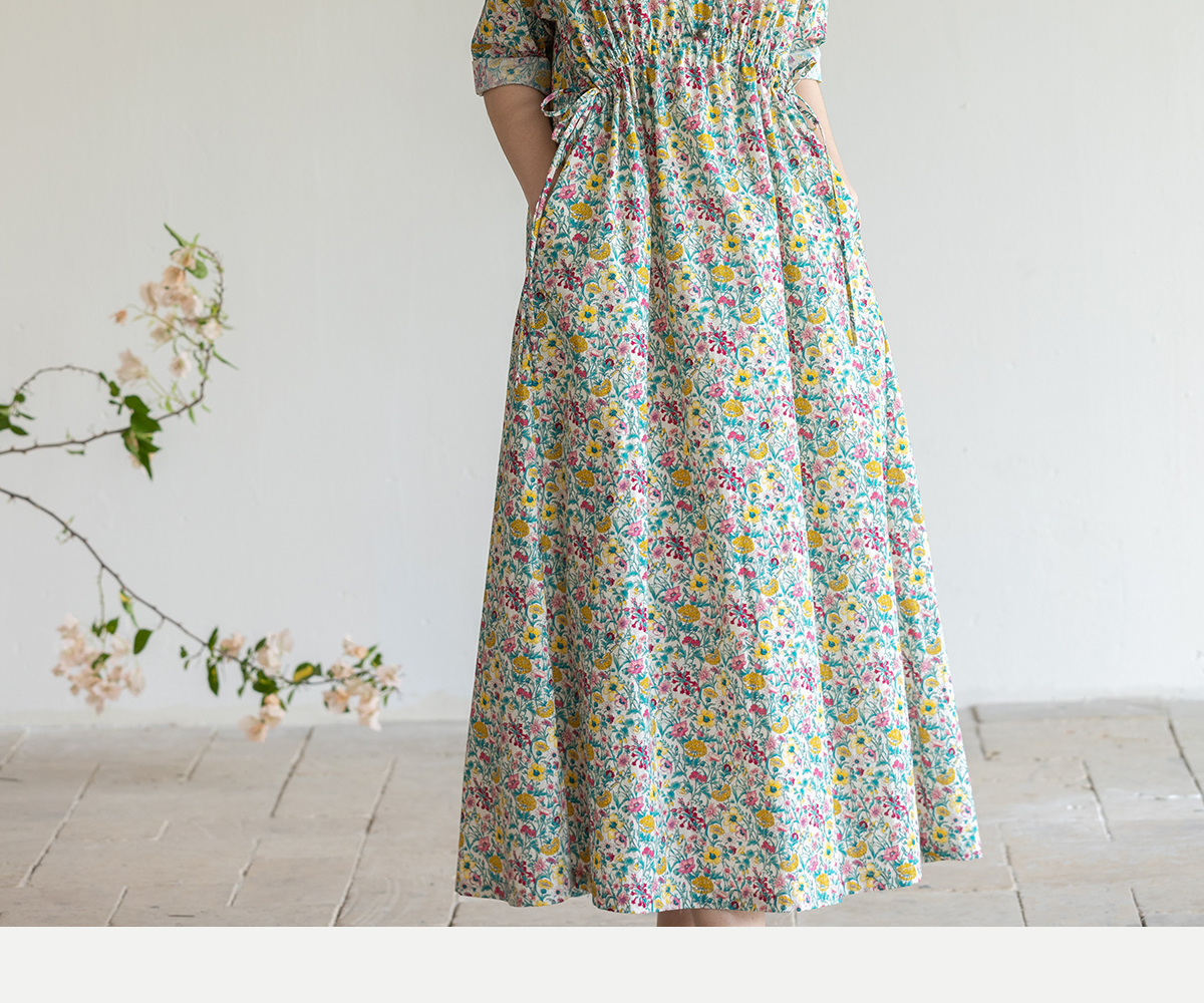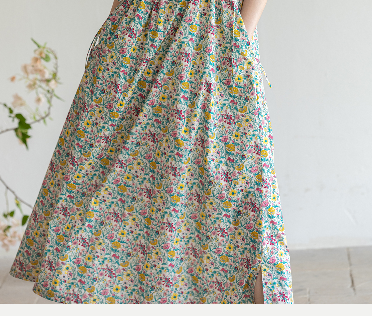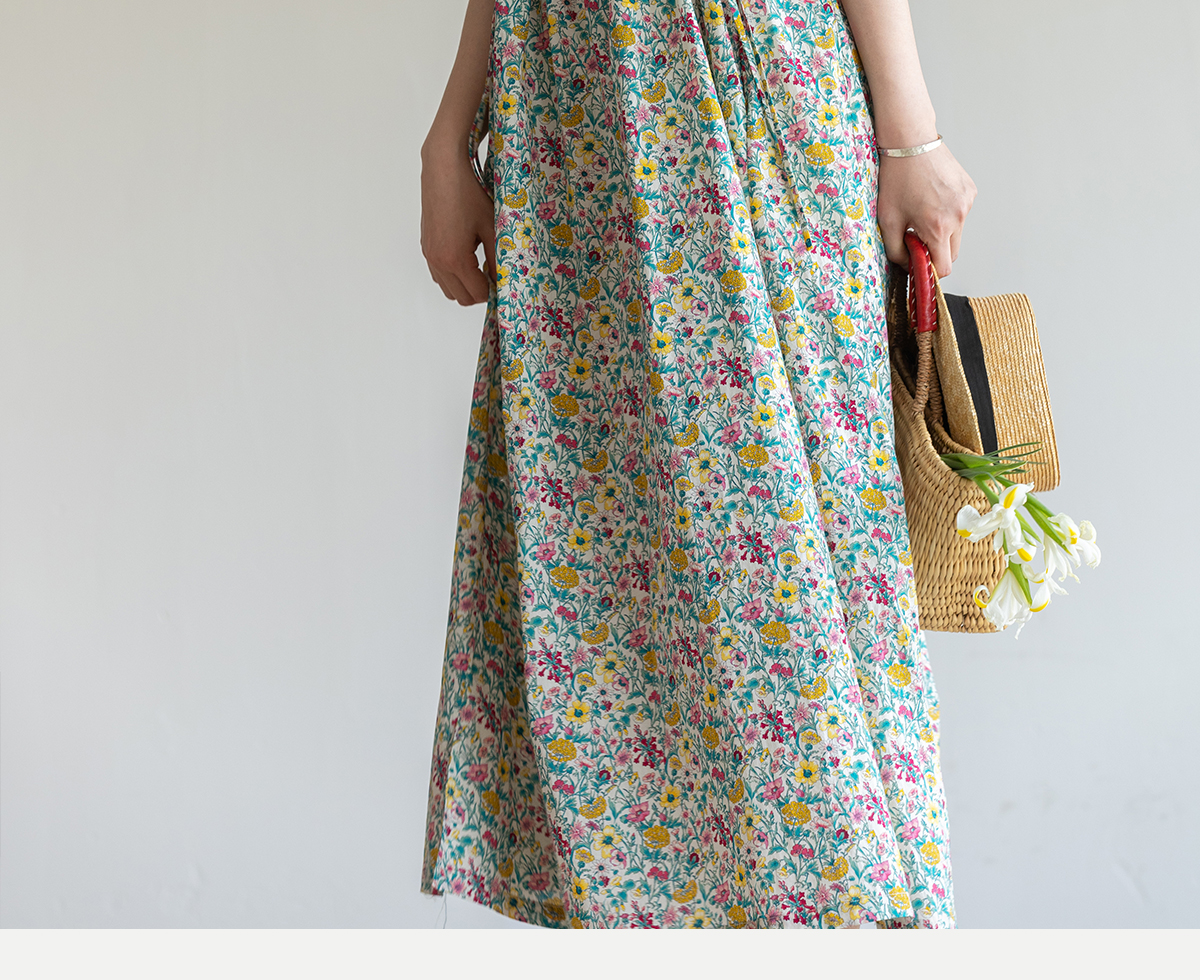 牧衣游原创 小碎花纯棉连衣裙夏日轻薄设计感文艺气质碎花裙 竹青