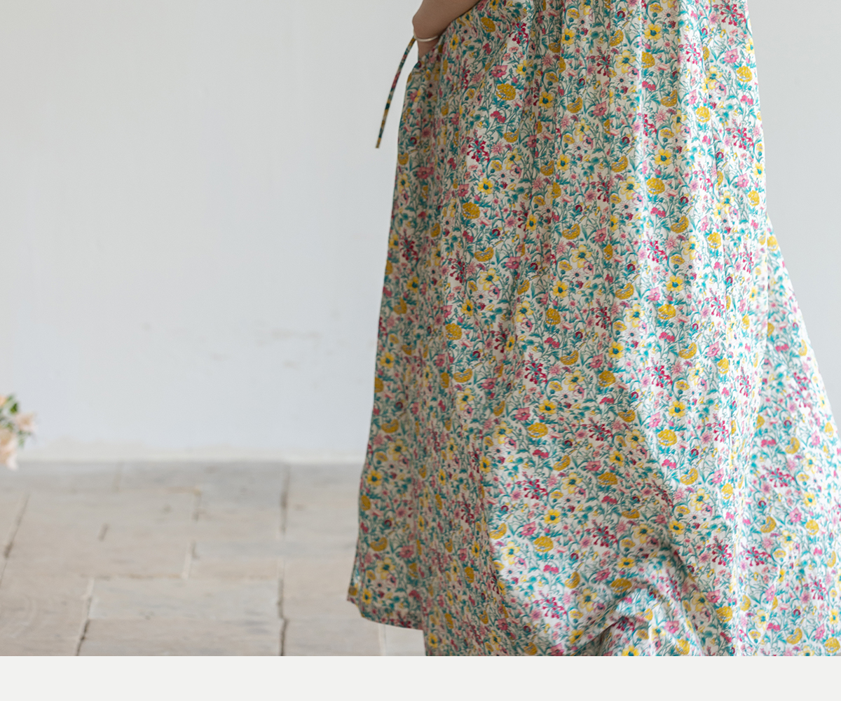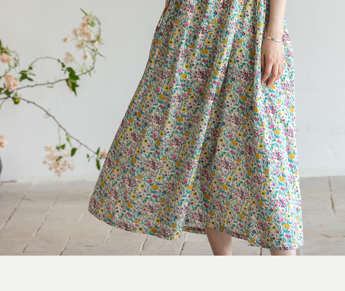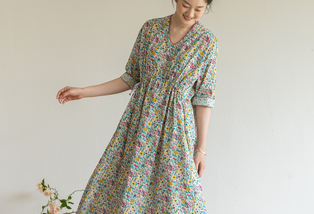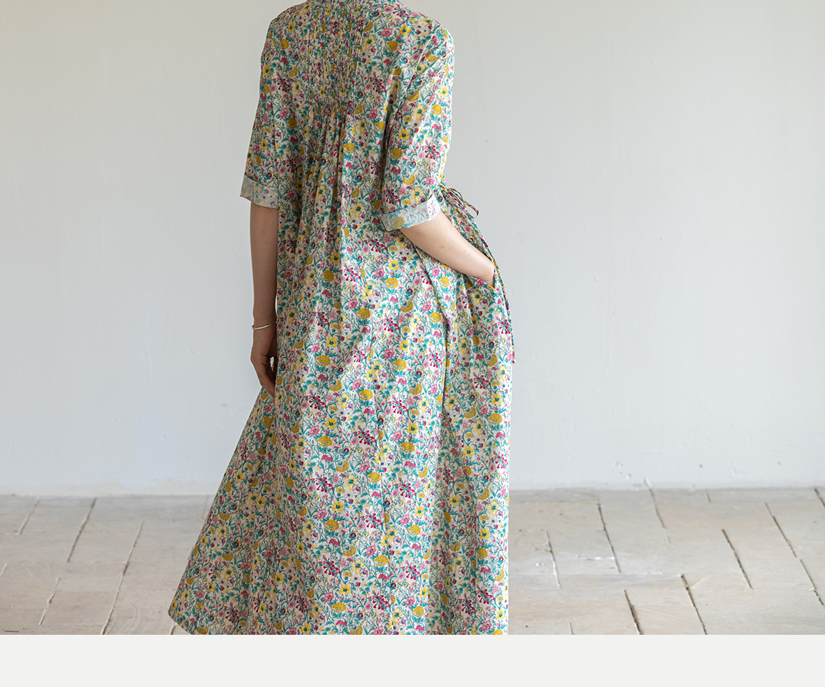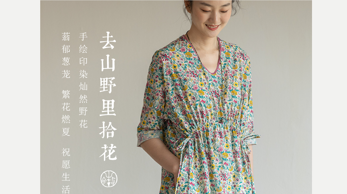牧衣游原创 小碎花纯棉连衣裙夏日轻薄设计感文艺气质碎花裙 竹青